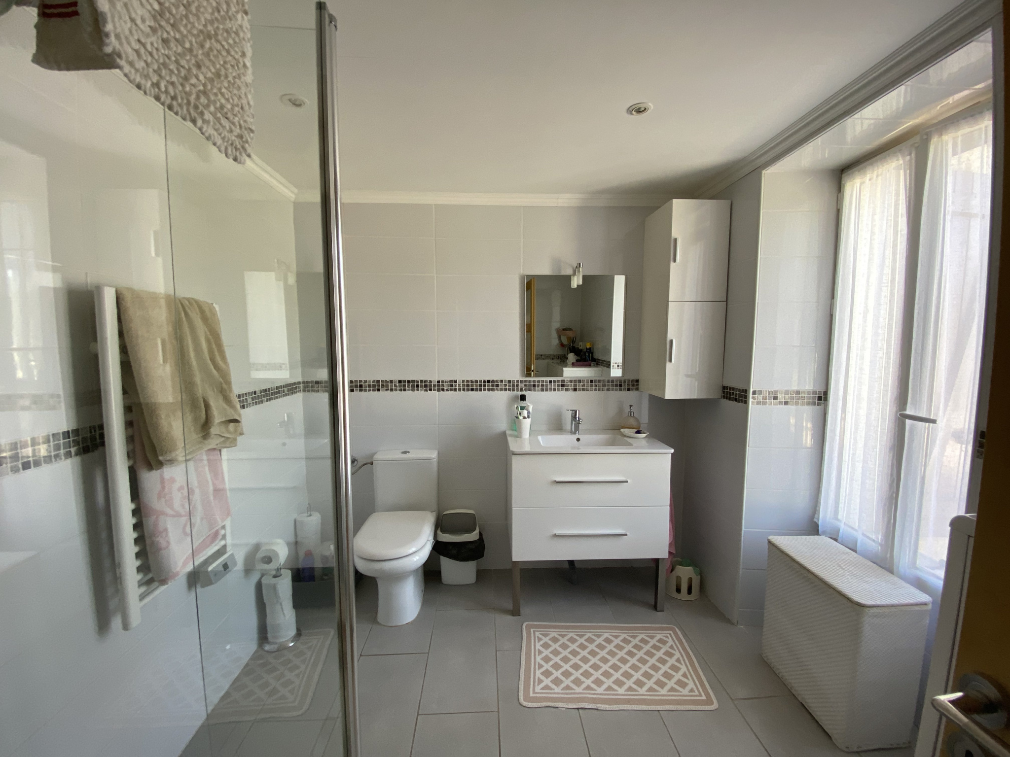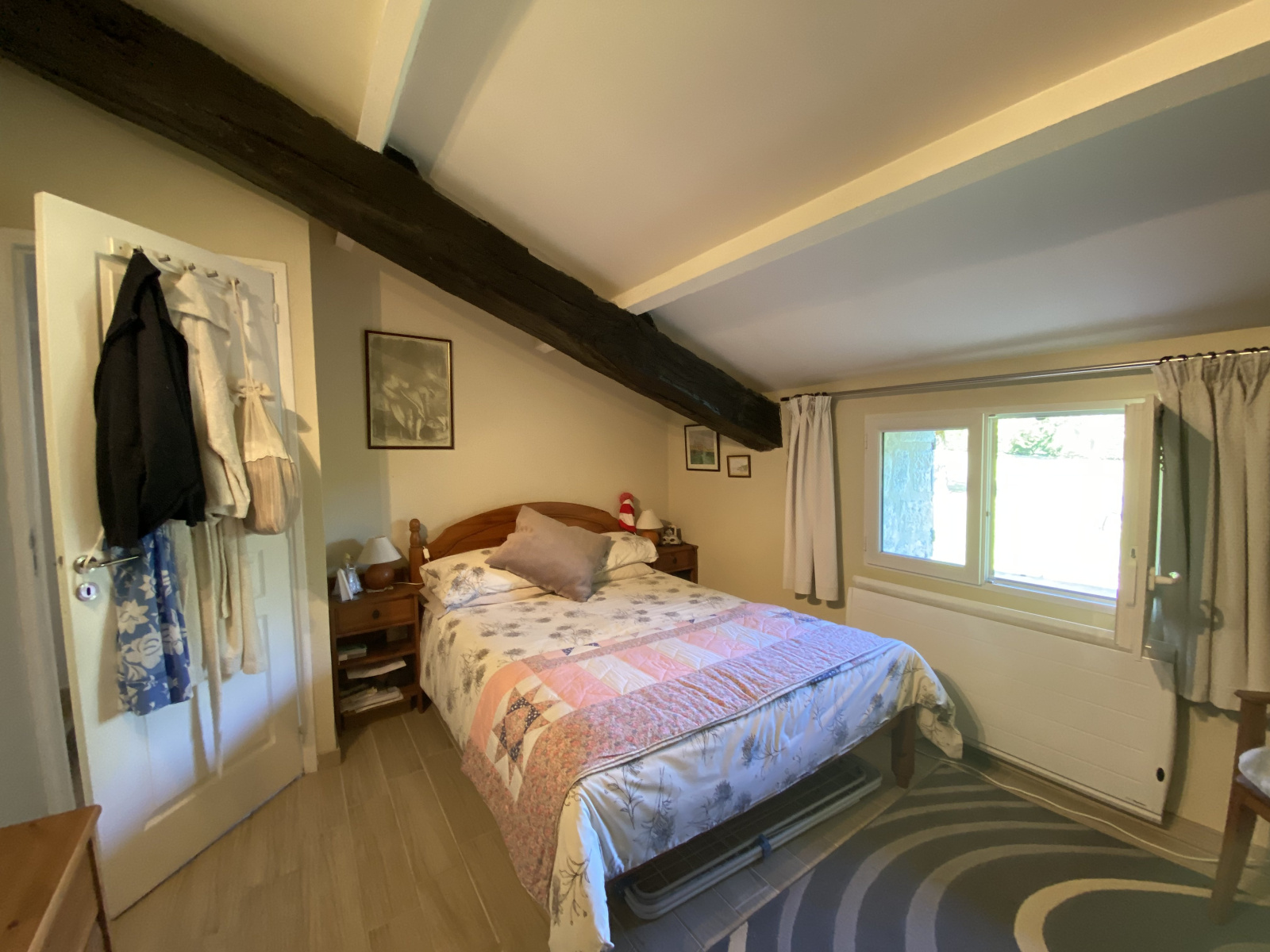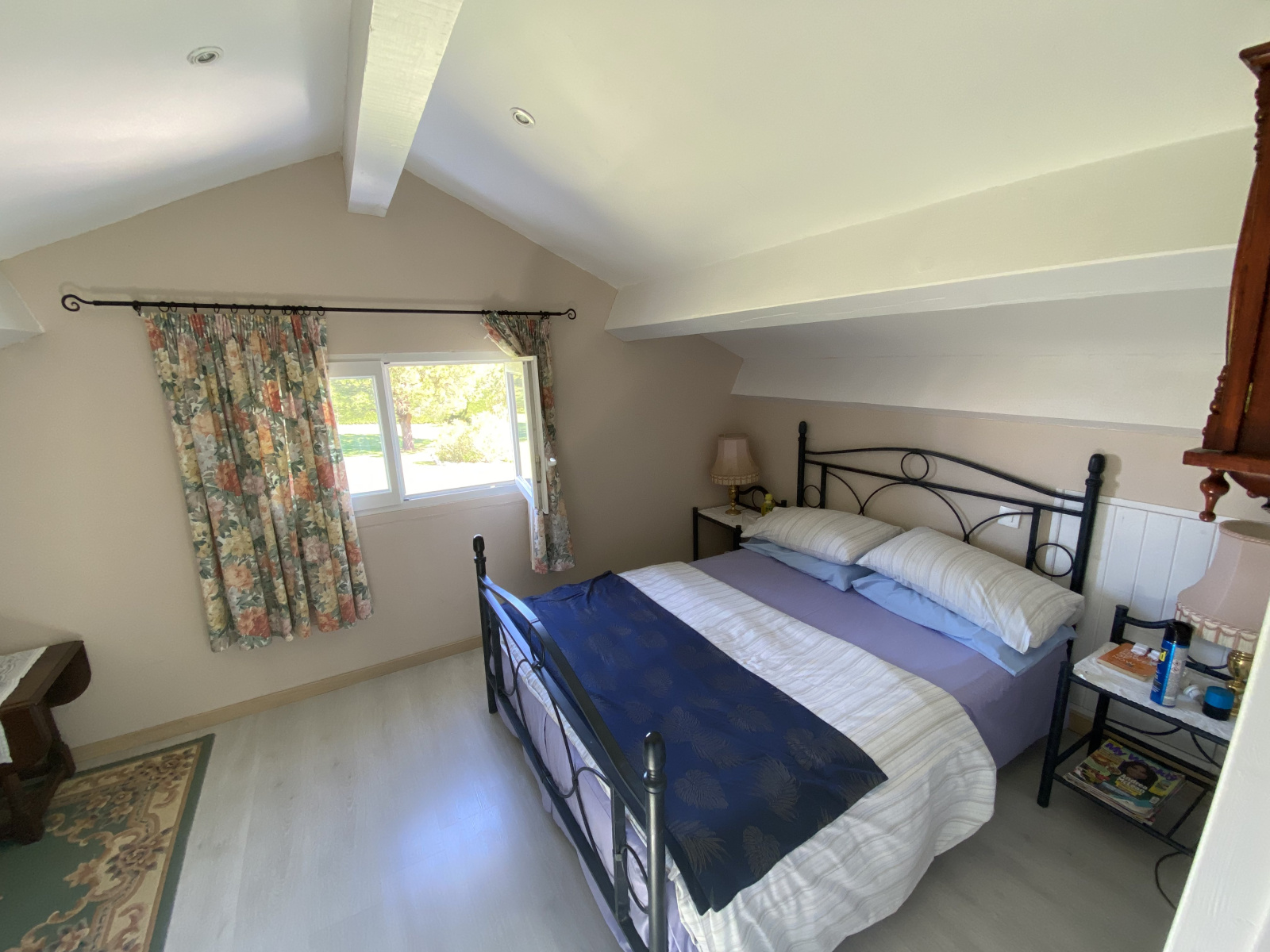 La chambre principale (14.15m2) avec salle d'eau avec lavabo et WC (6.19m2) fenêtre donne le jardin
