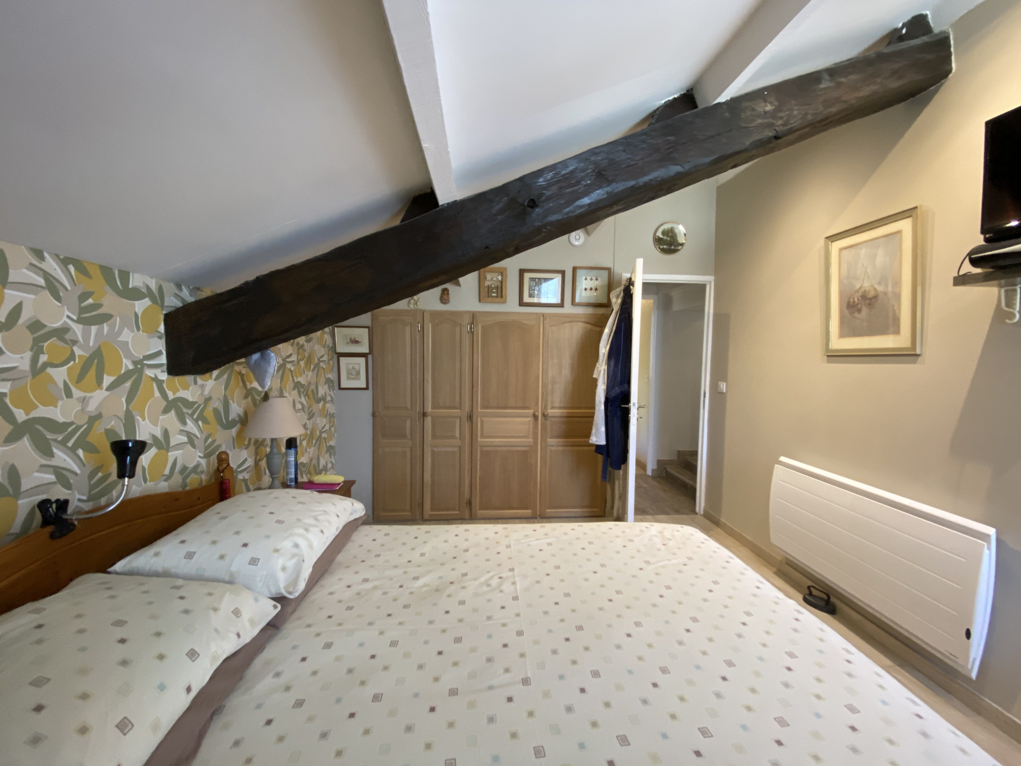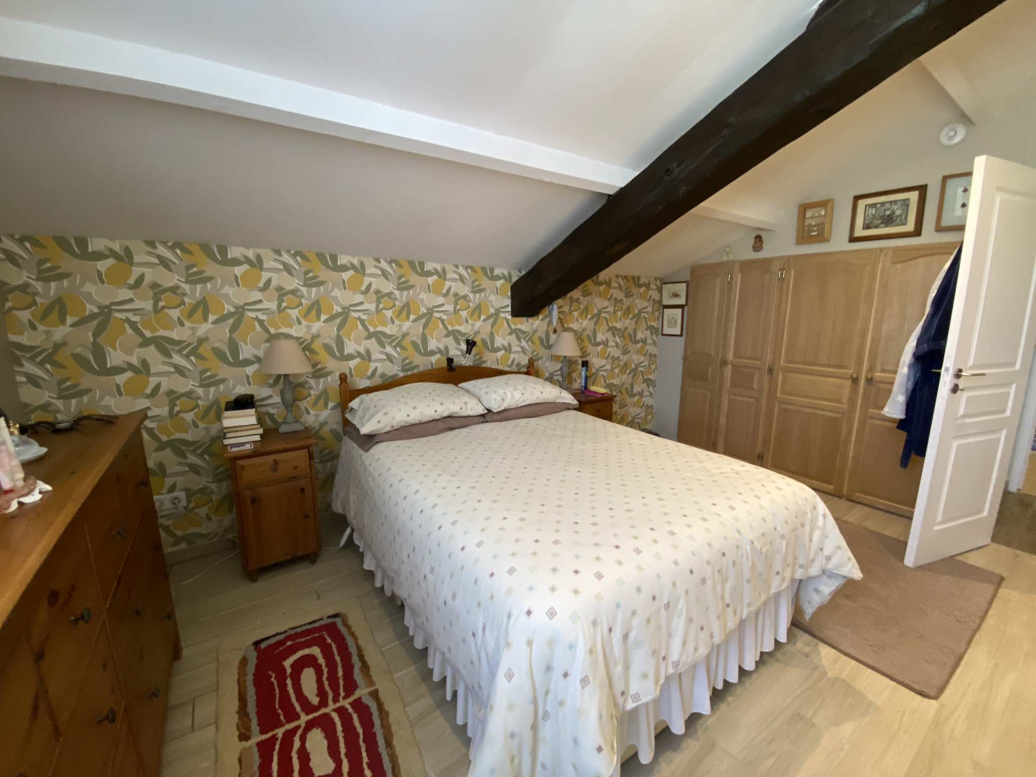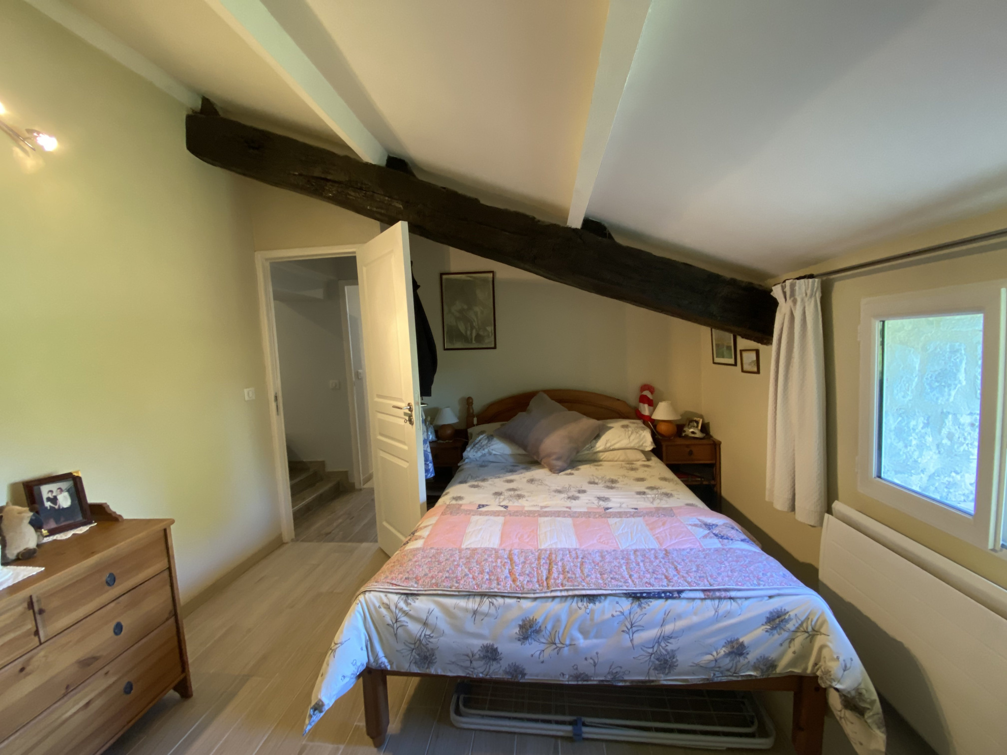 La chambre principale (14.15m2) avec salle d'eau avec lavabo et WC (6.19m2) fenêtre donne le jardin