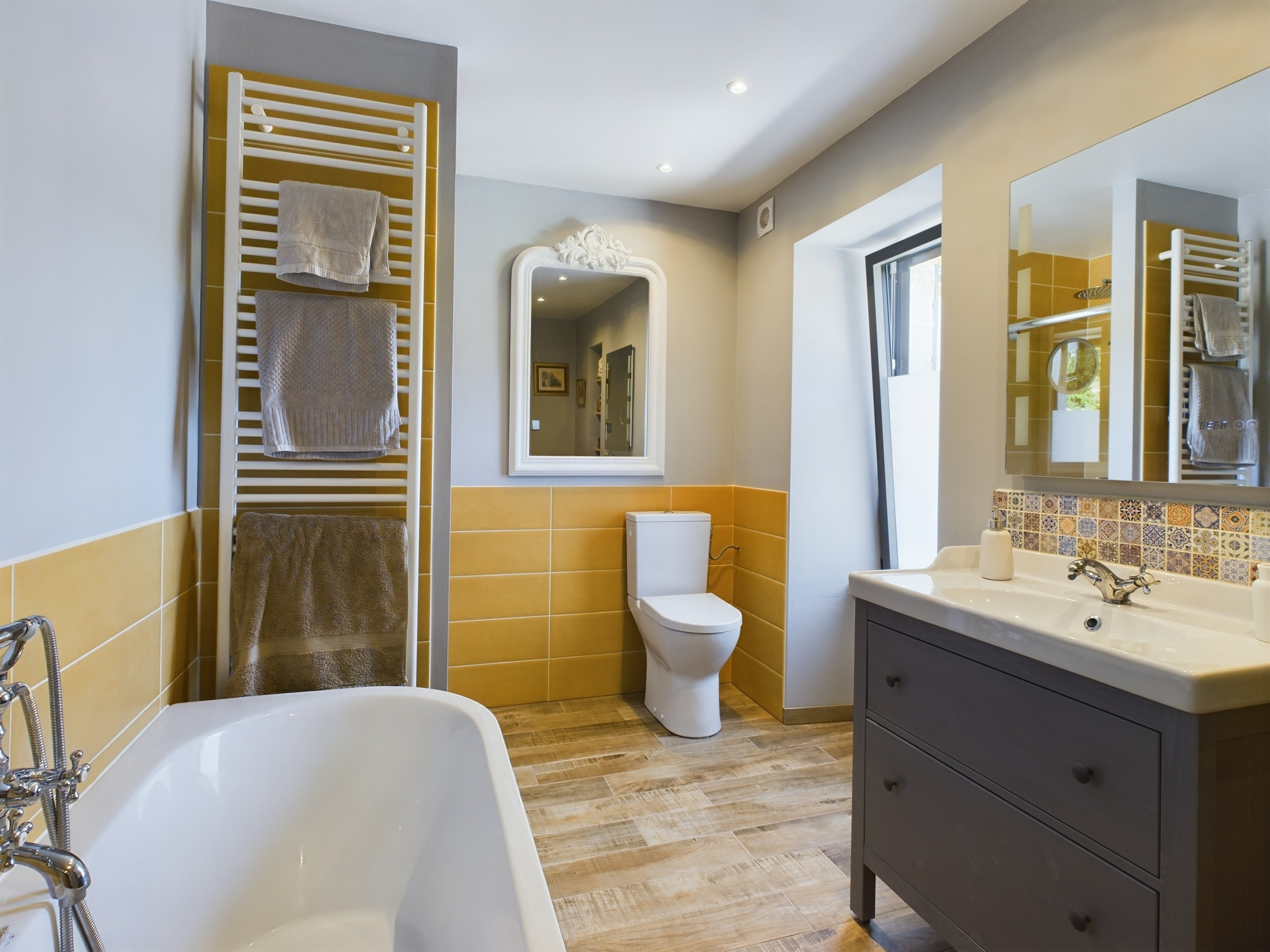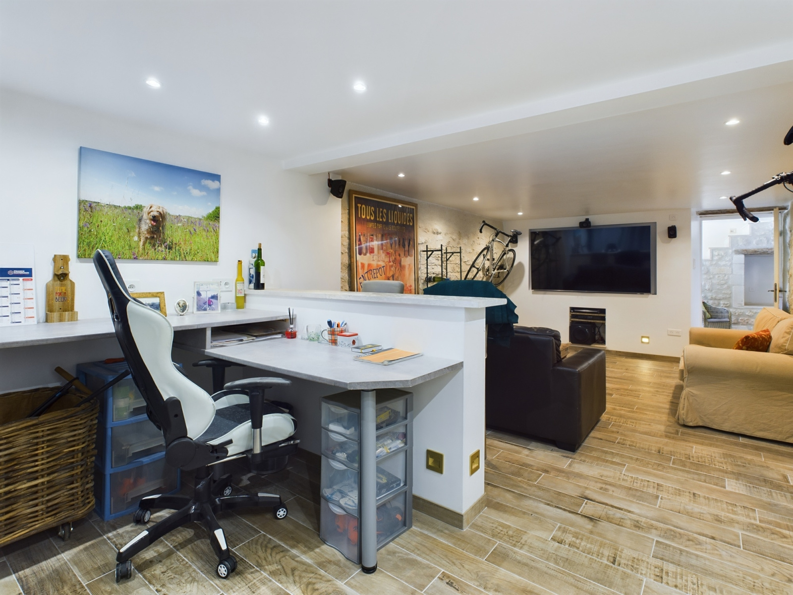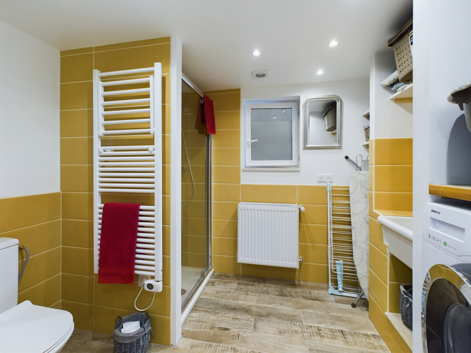 Il y a une grande buanderie/2ème cuisine, une salle de douche, un deuxième salon et une salle de télévision qui pourrait être une chambre, rendant cet espace très polyvalent et pouvant être loué ou utilisé pour accueillir une famille ou des invités de manière indépendante. Radiateurs reliés à l'échangeur de chaleur.