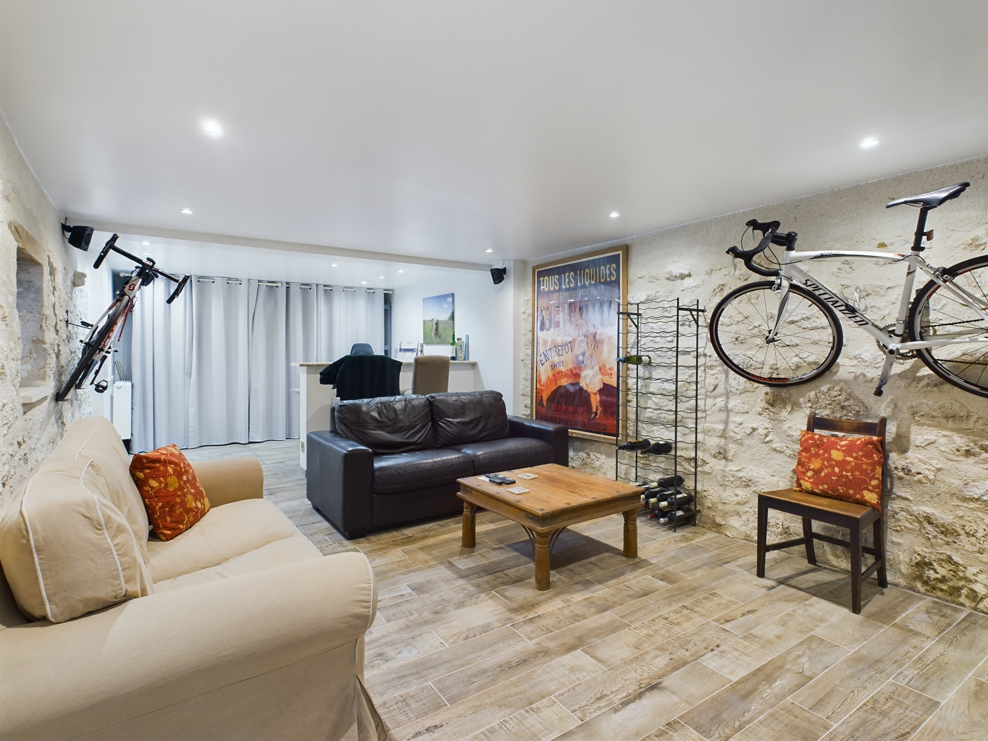 Ce niveau est doté d'un chauffage au sol alimenté par l'échangeur de chaleur. Il y a une porte donnant sur la petite rue derrière avec un parking, ce qui rend ce niveau accessible aux personnes à mobilité réduite.