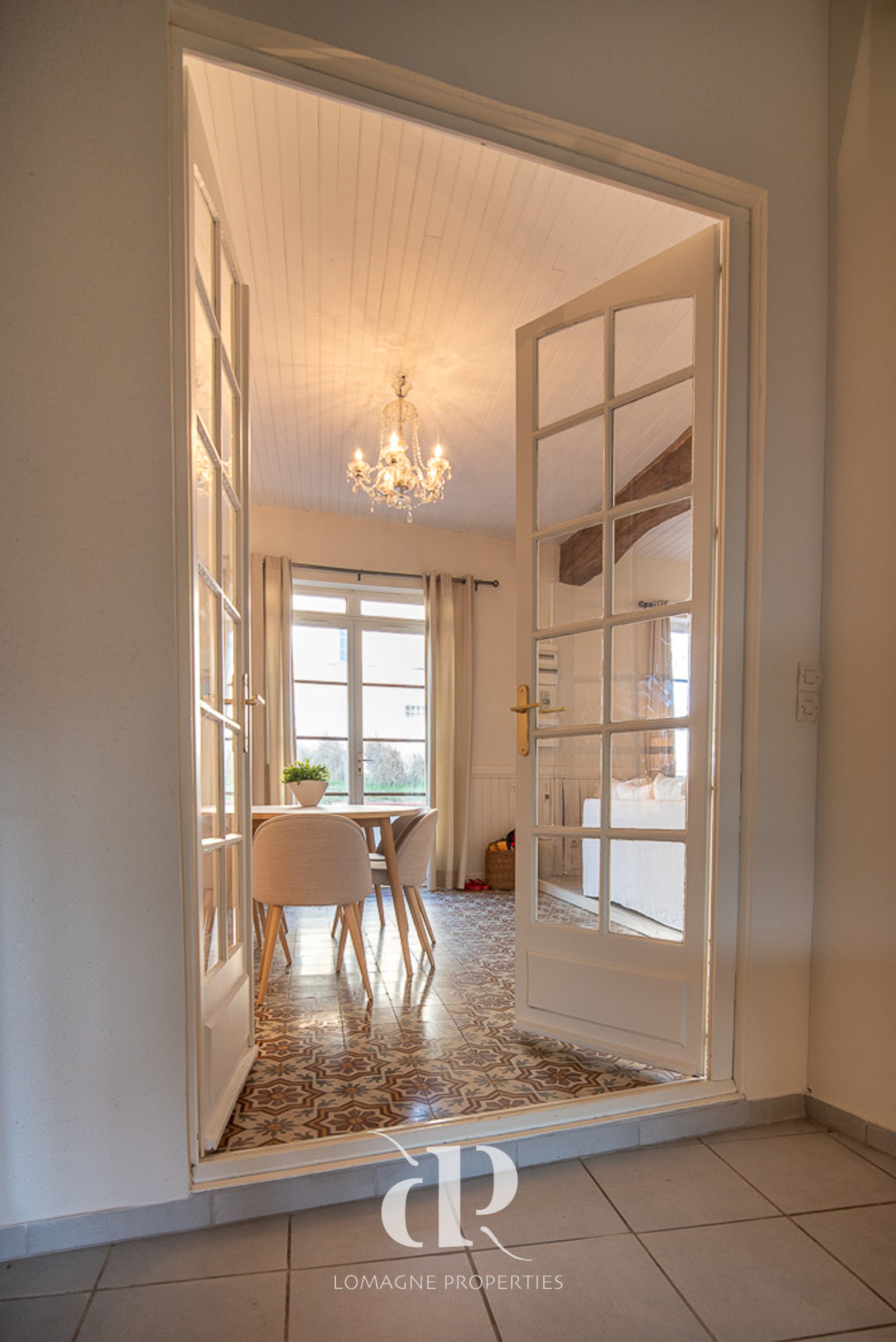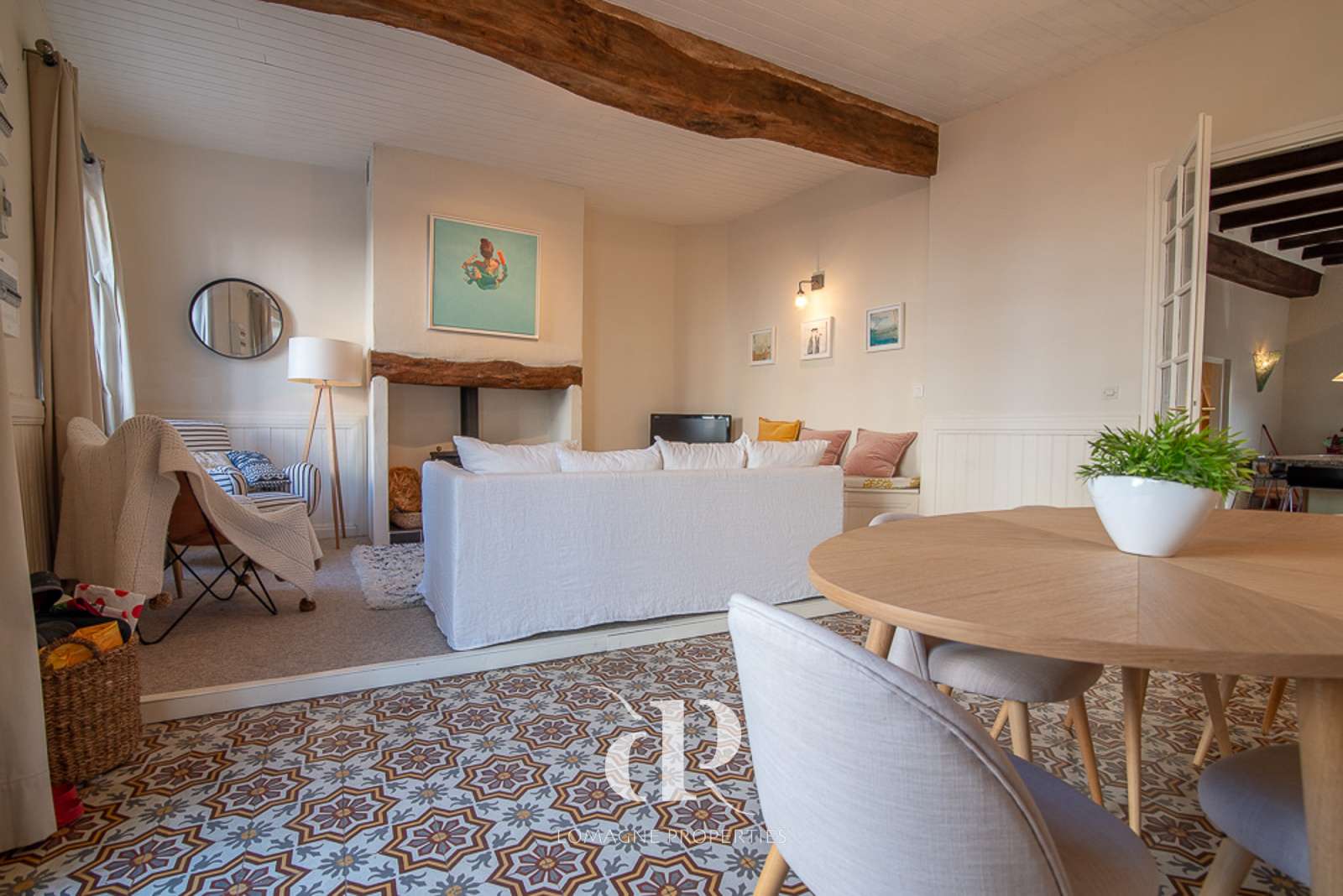- Salon/salle à manger - 30m2 - poêle à bois - partiellement carrelé avec des carreaux portugais d'origine