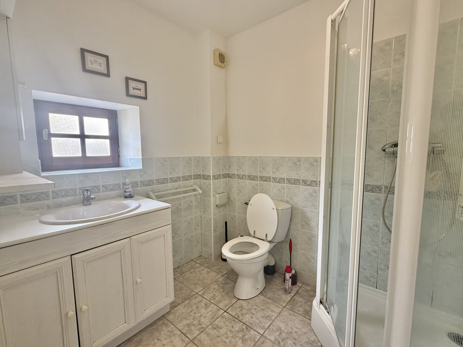 Buanderie avec chaudière et WC au rez-de-chaussée.