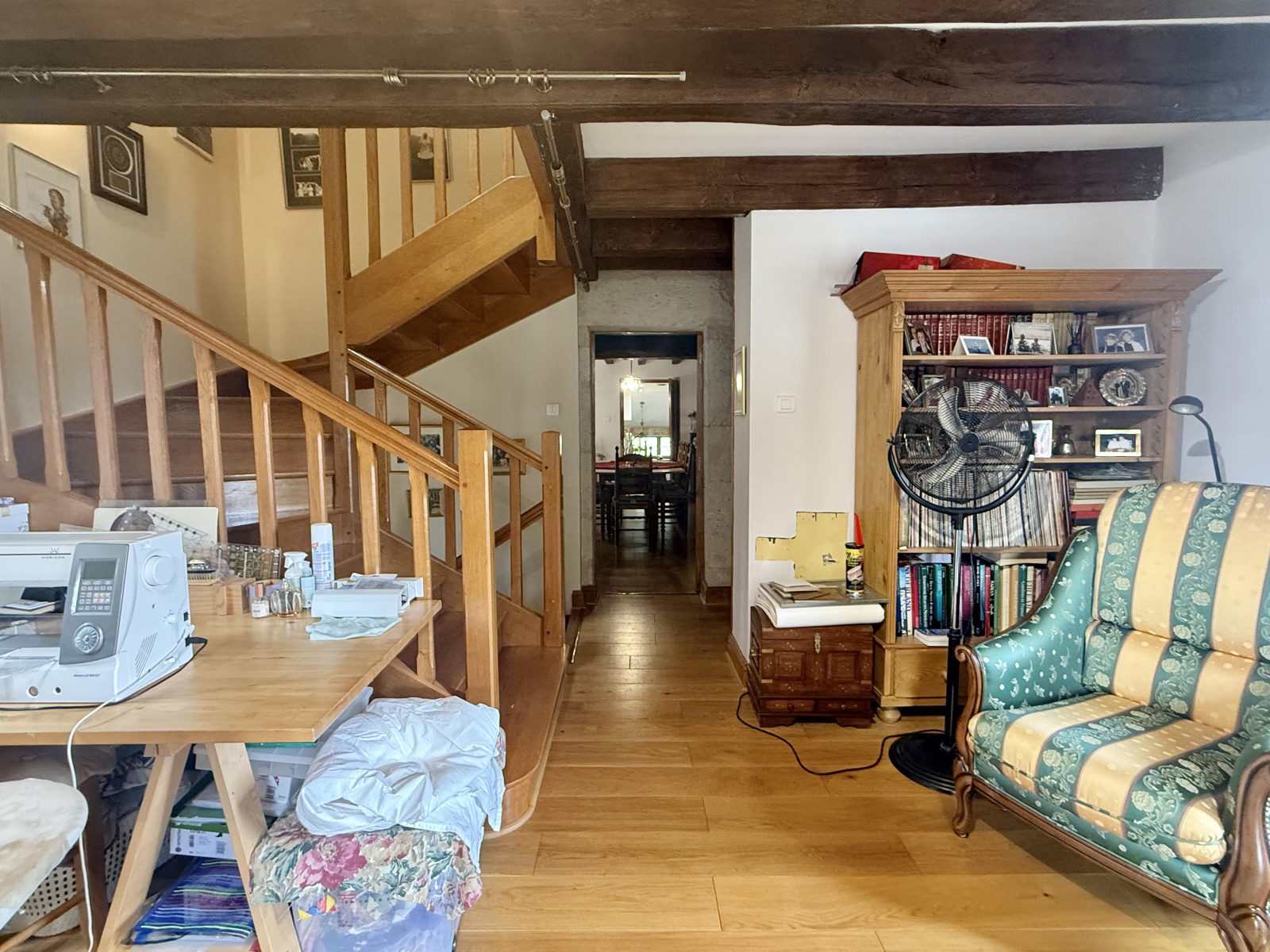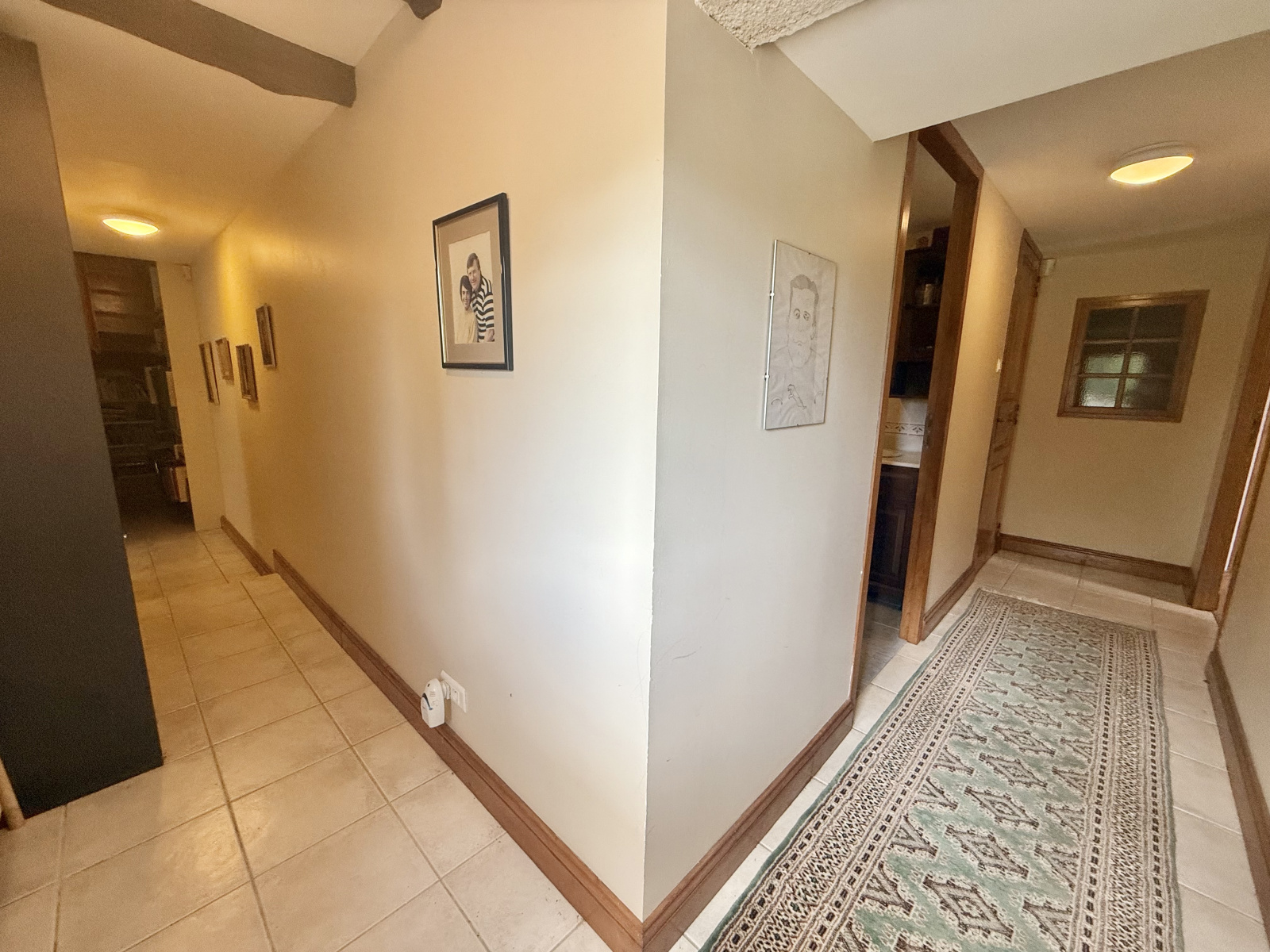 Dégagement via la porte d’entrée originale menant à un second salon ou salle de loisirs (17 m²).