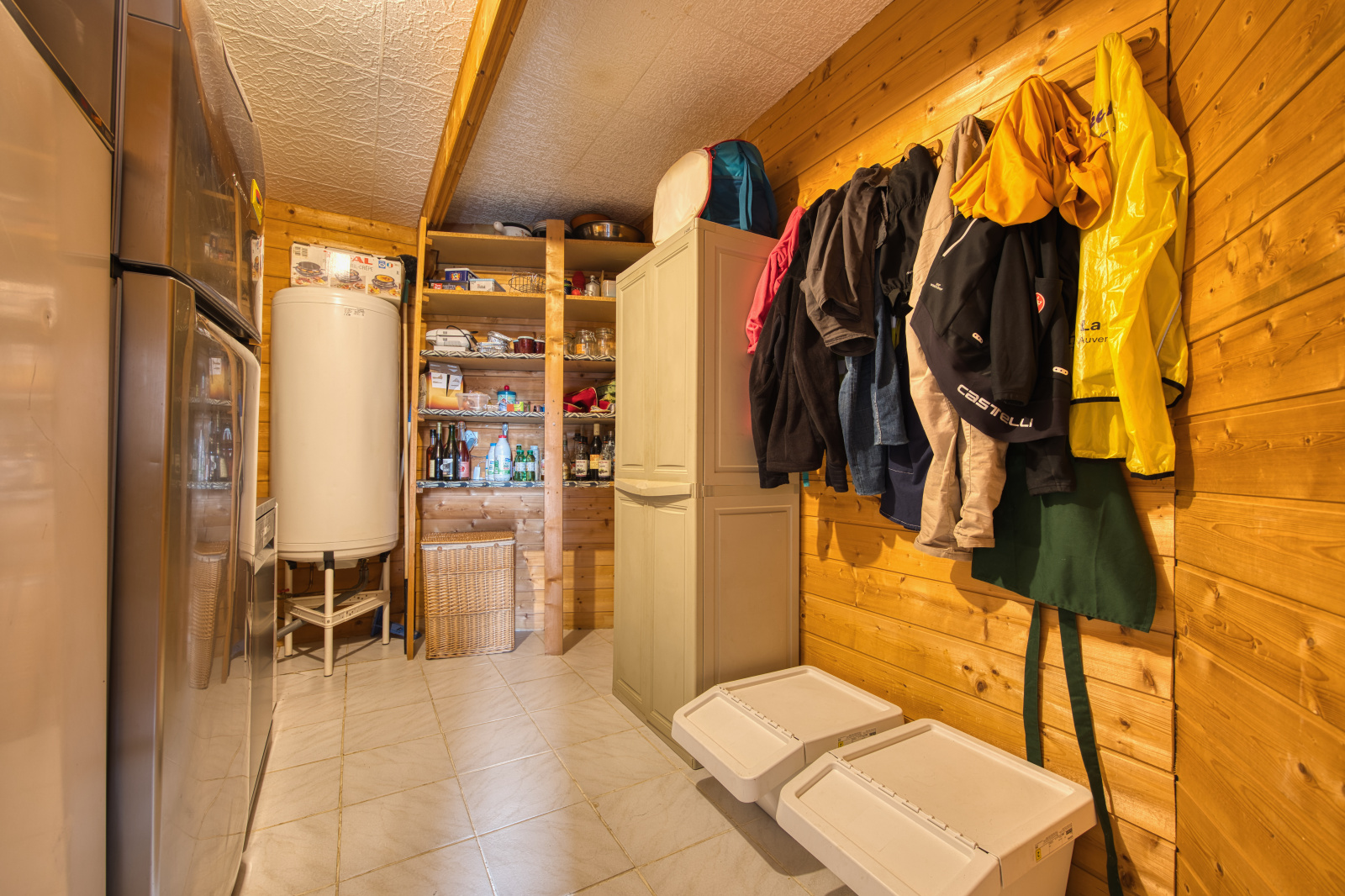 D'un hall d'entrée desservant un vaste et lumineux salon-salle à manger, doté d'un poêle à granulés et donnant accés direct à la terrasse, une cuisine américaine, donnant de même accés à la terrasse, un cellier, des toilettes.