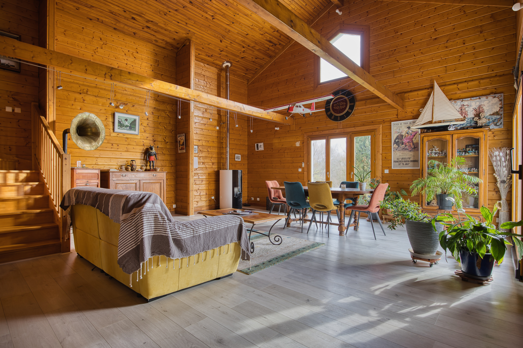 À 25 min de Mâcon et des accès autoroutiers A6 et A40, 15 min de Tournus et Pont de Vaux, située à 3 min du centre de Lugny, venez découvrir cette belle maison en bois, en très bon état, de 201 m² habitables, implantée sur un superbe parc clos et arboré de 5846 m².