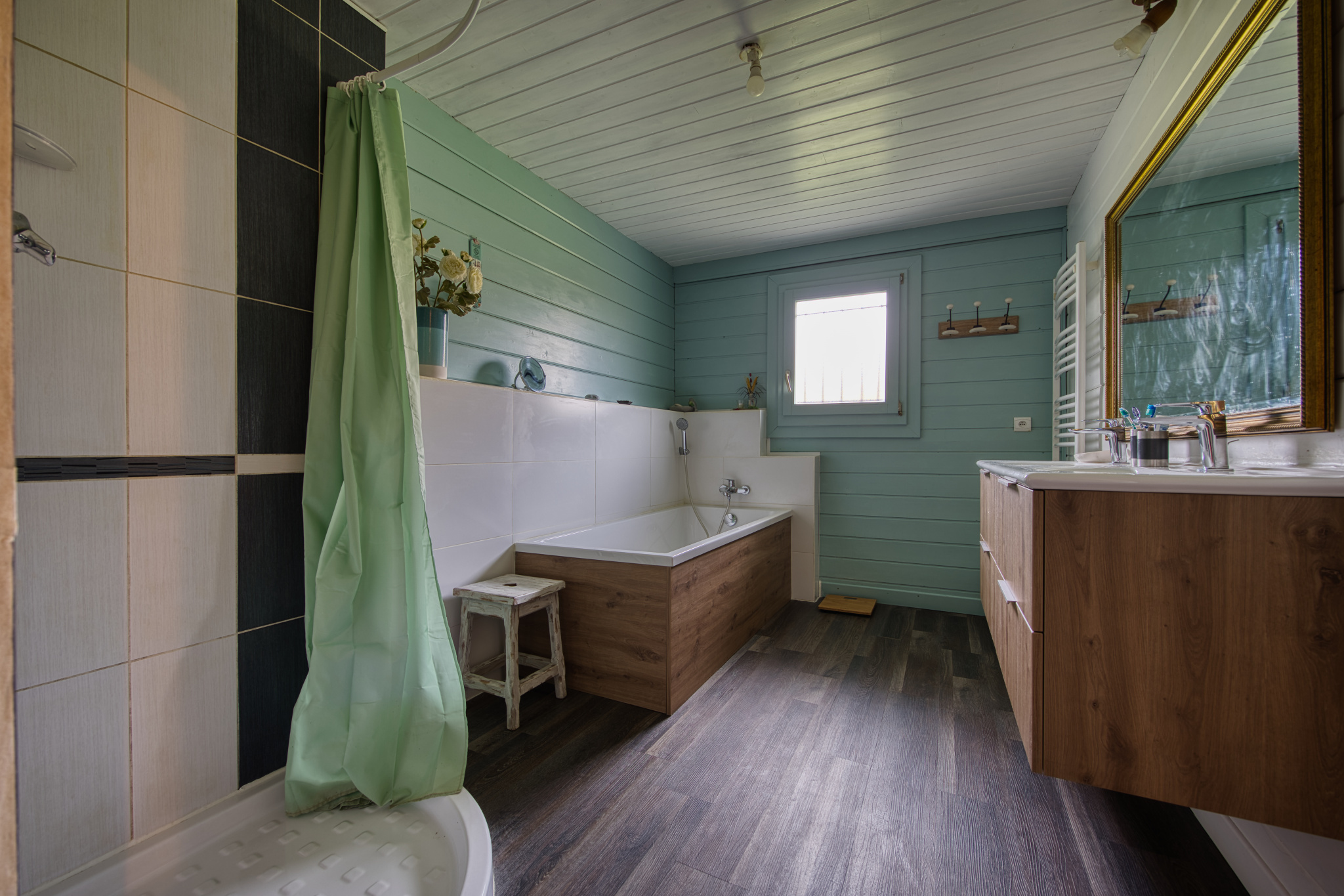 Côté nuit, cinq chambres spacieuses, une salle de bain et de douche et des toilettes séparées.