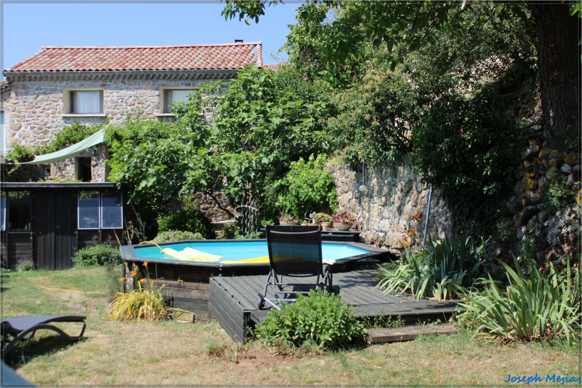 CALME ET NATURE : Charmante maison de hameau avec jardin, piscine hors-sol et une belle vue. Cette maison en pierre, répartie sur deux niveaux, est pleine de charme et offre un cadre de vie agréable.