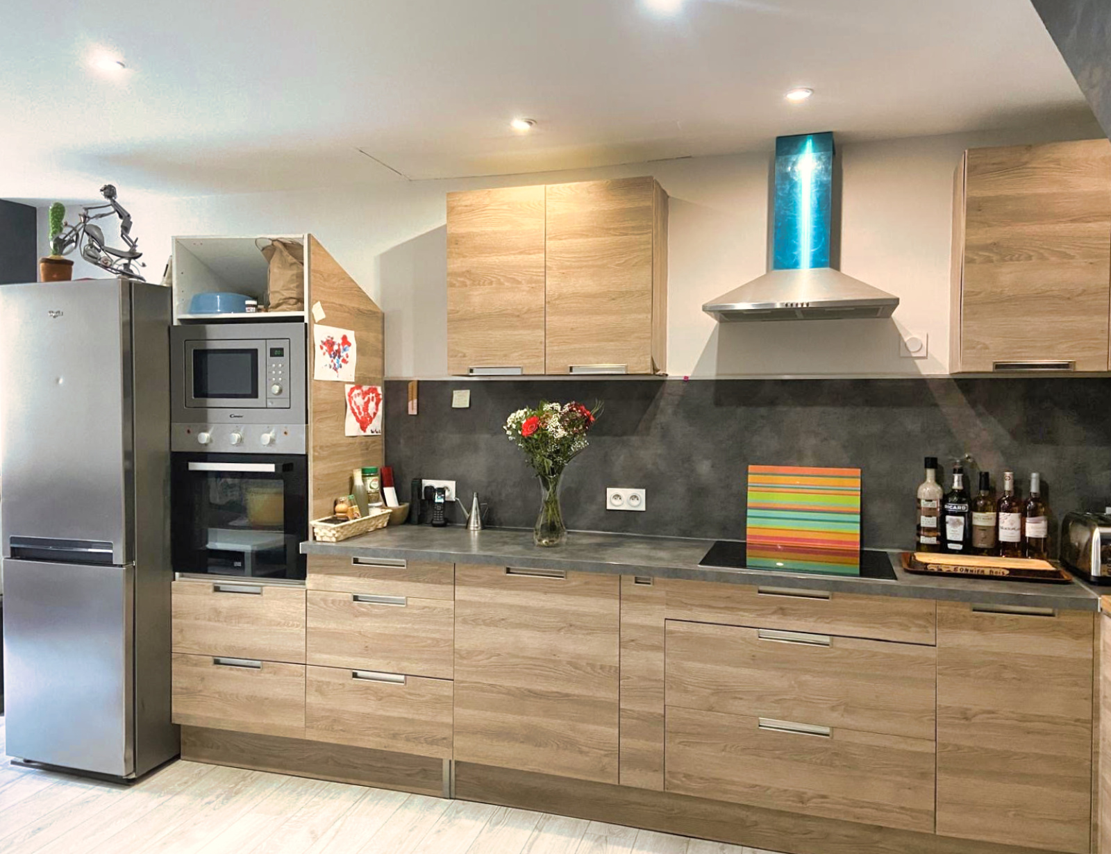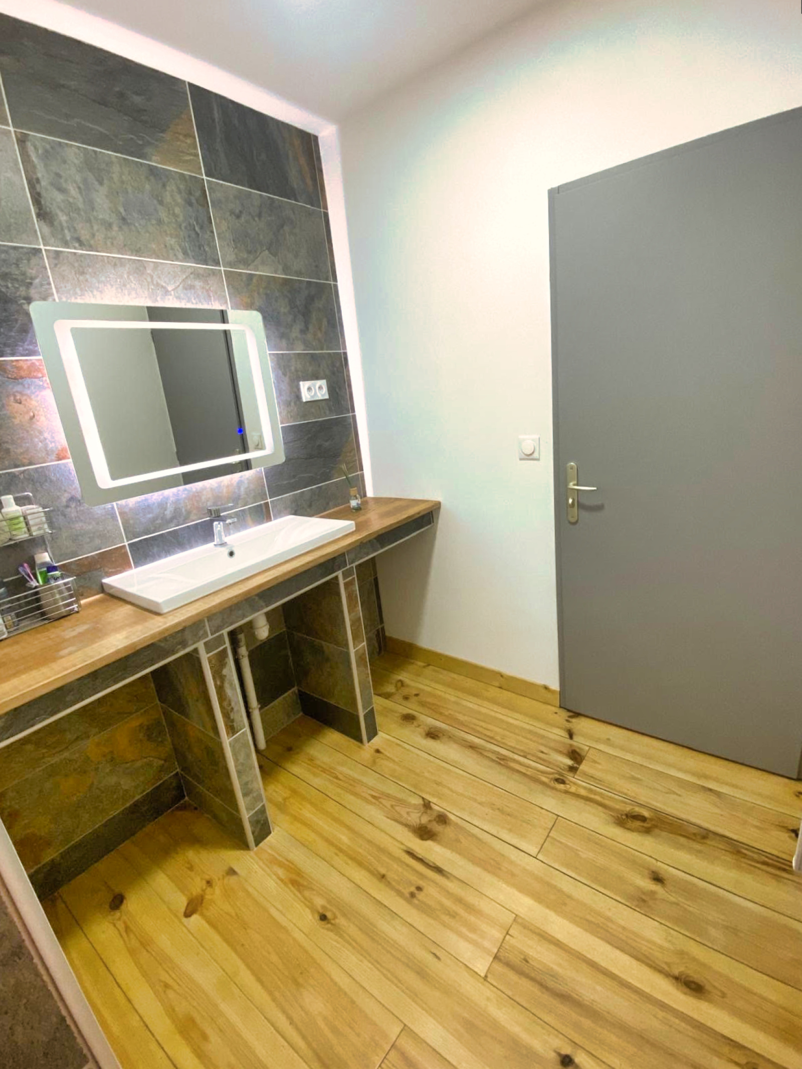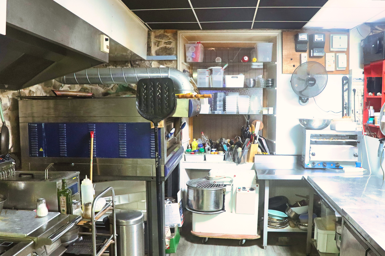 - D'autre part, au RDC, un espace de réception de 130 m². Actuellement une brasserie, restauration, épicerie et tabac. Avec cuisine professionnelle et bar, un système de vidéo surveillance récent et une Licence IV. Ainsi qu'une salle pour repas ou événementiel, un grand four à bois, des toilettes et une terrasse spacieuse côté nature.