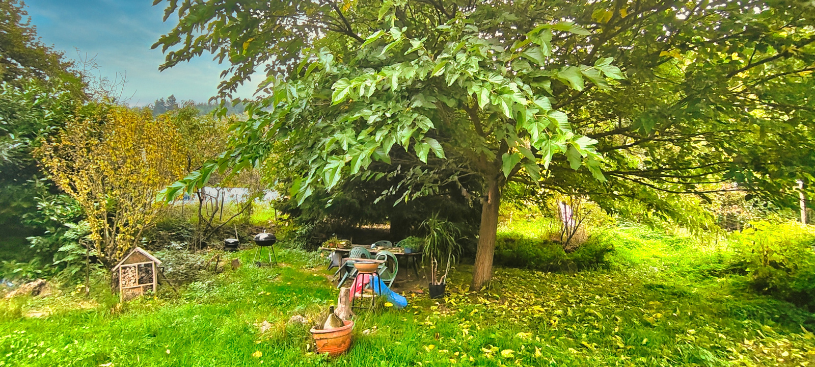 Un jardin arboré attenant de 1100 m² vient compléter le bâti.