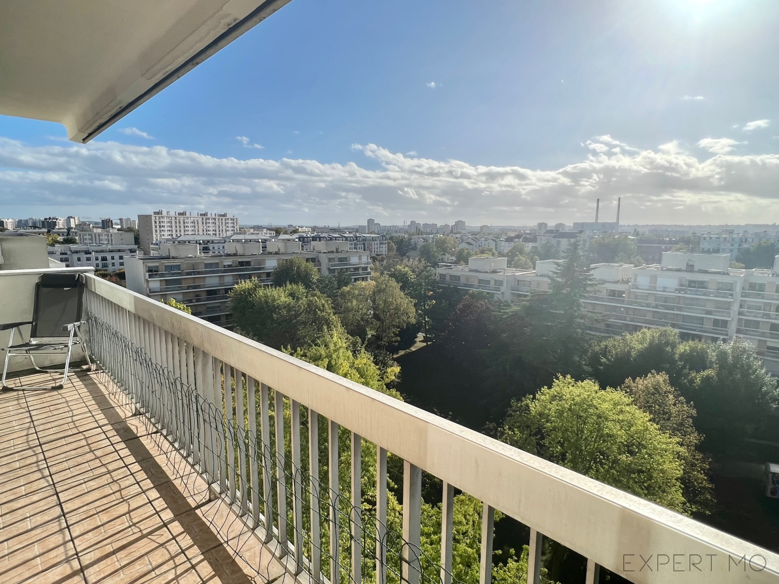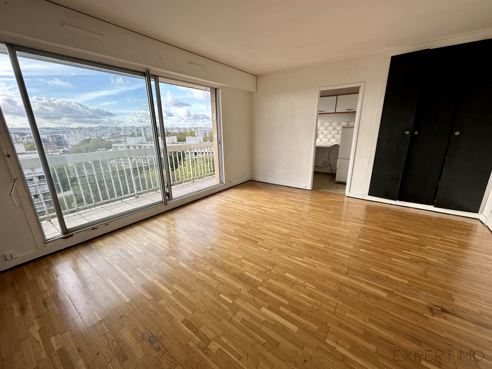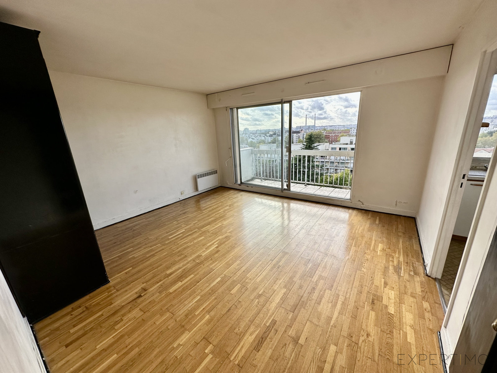Il comprend: une entrée avec placard, séjour avec placard, donnant sur un grand balcon de 6m2, avec vue sur le parc et sur PARIS, salle de bains avec toilettes, cuisine indépendante.