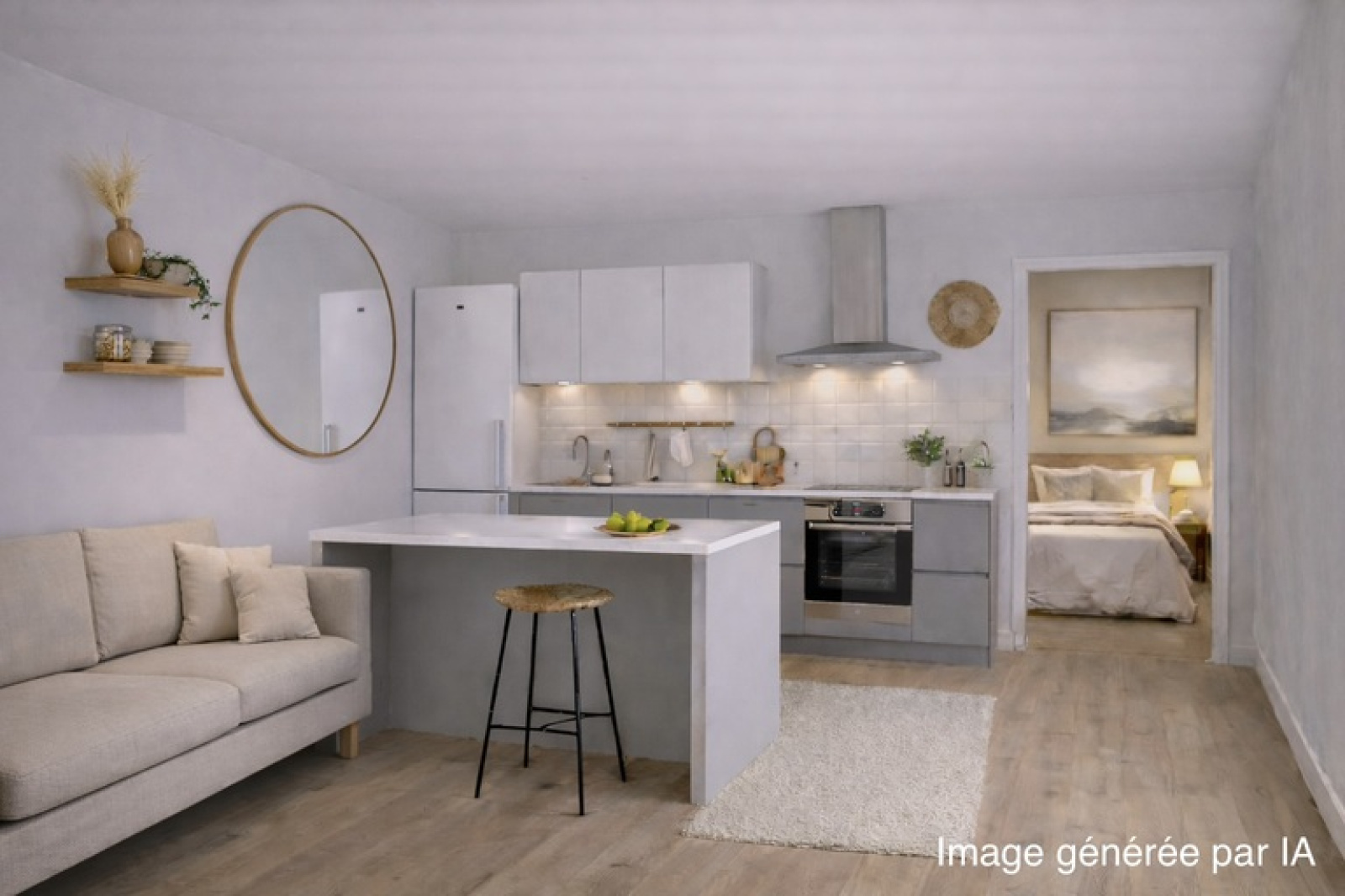 Travaux à prévoir : aménagement complet du plateau. L’avantage, c’est que vous maîtrisez le budget et le rendu final : un T2 actuel, bien pensé, avec extérieur, prêt à vivre ou prêt à louer.