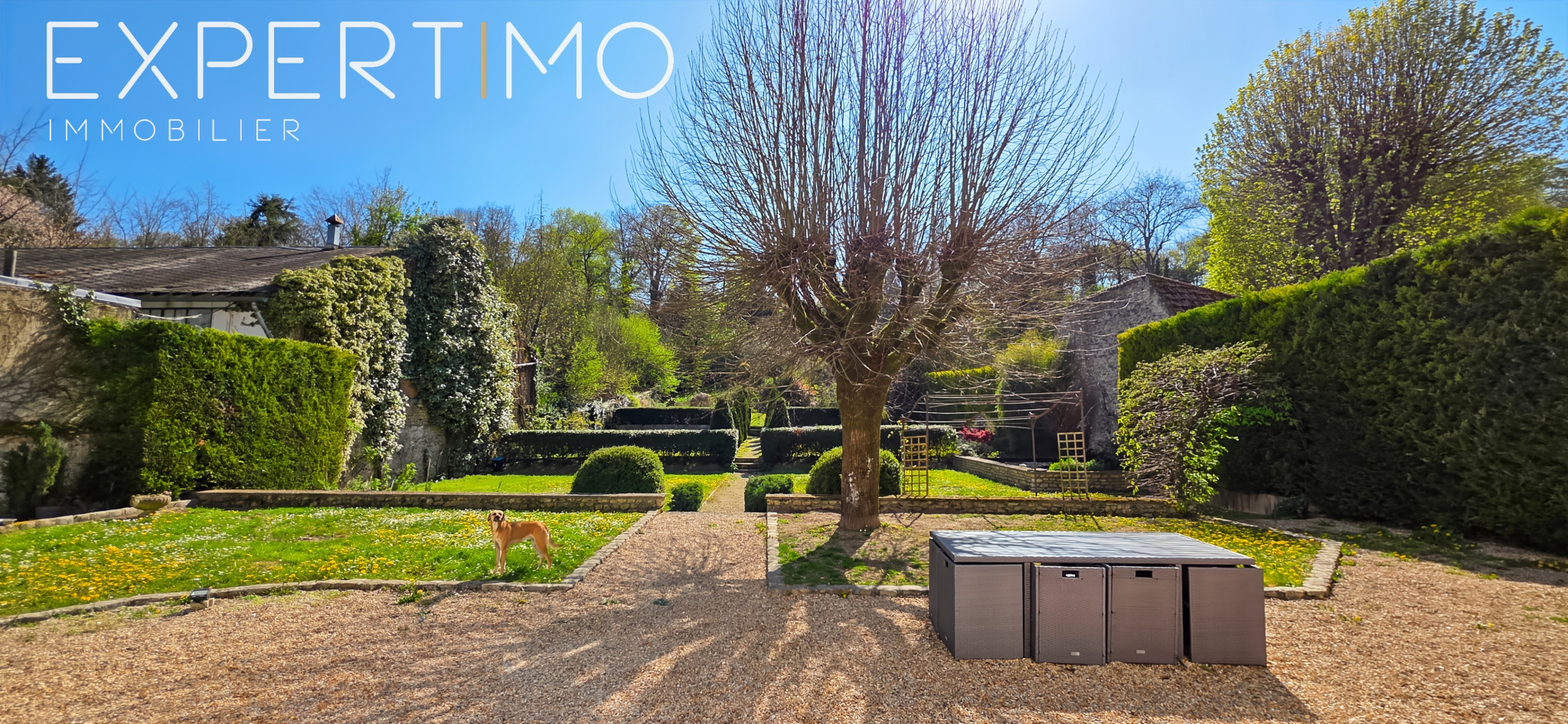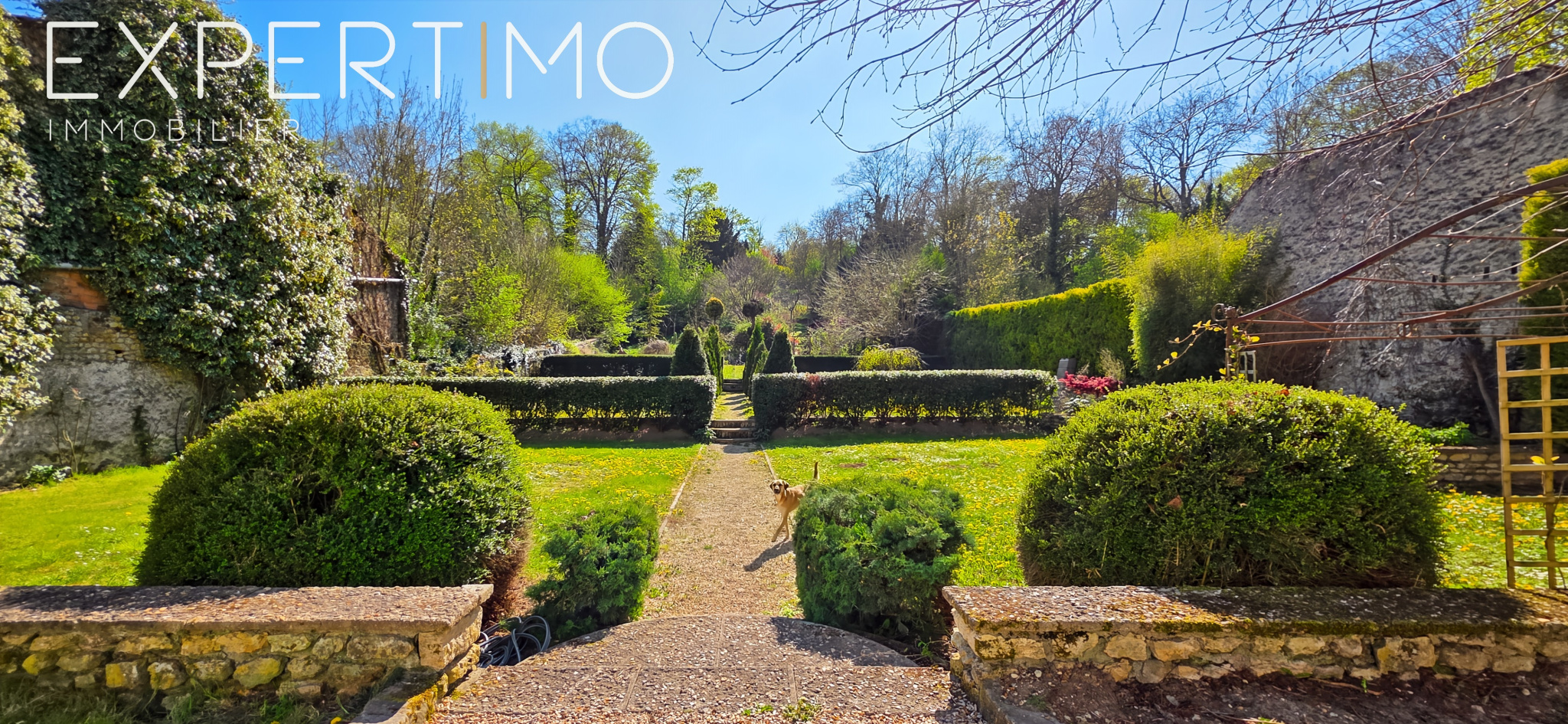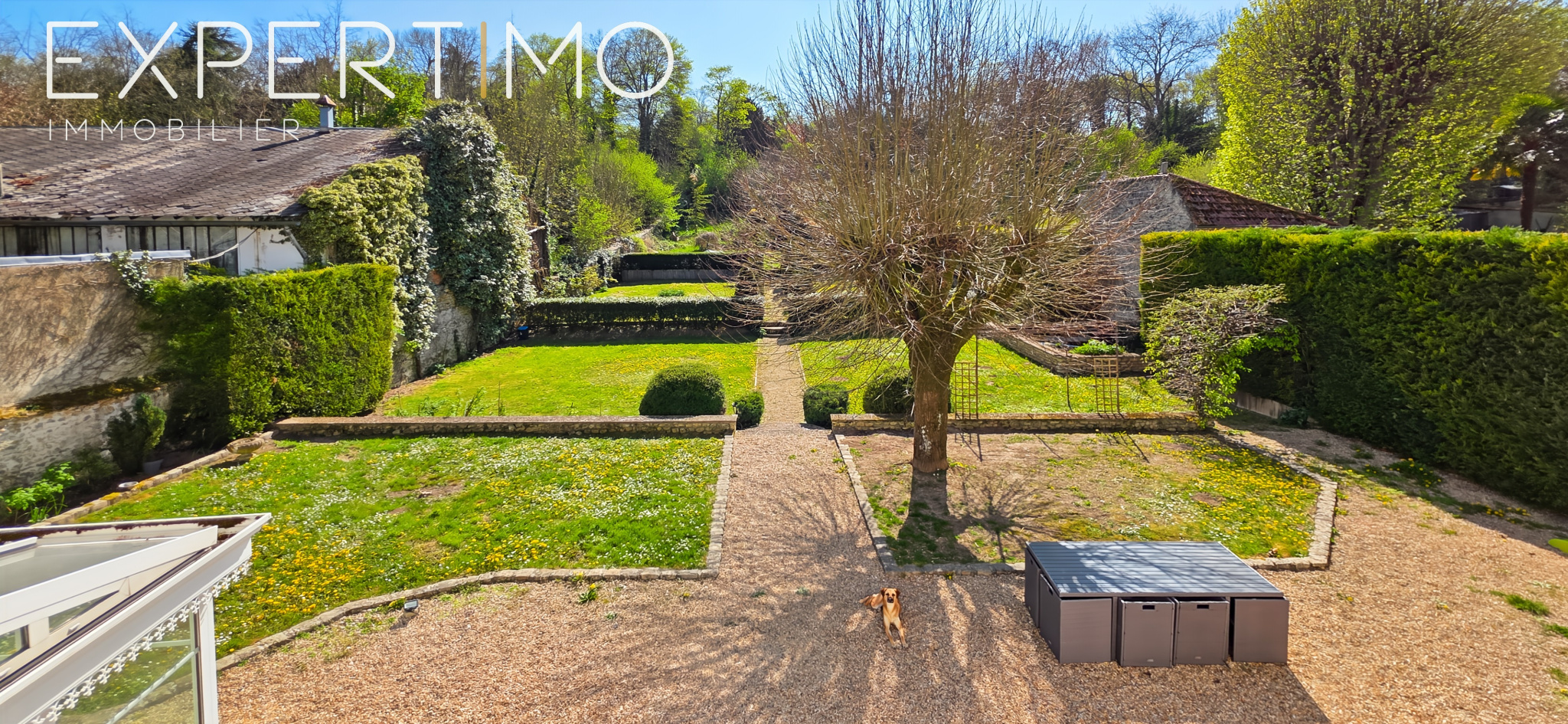 Un jardin d’inspiration versaillaise, finement paysagé, entoure la maison et crée une atmosphère hors du temps. Chaque recoin du parc évoque le calme, la sérénité, l’élégance.