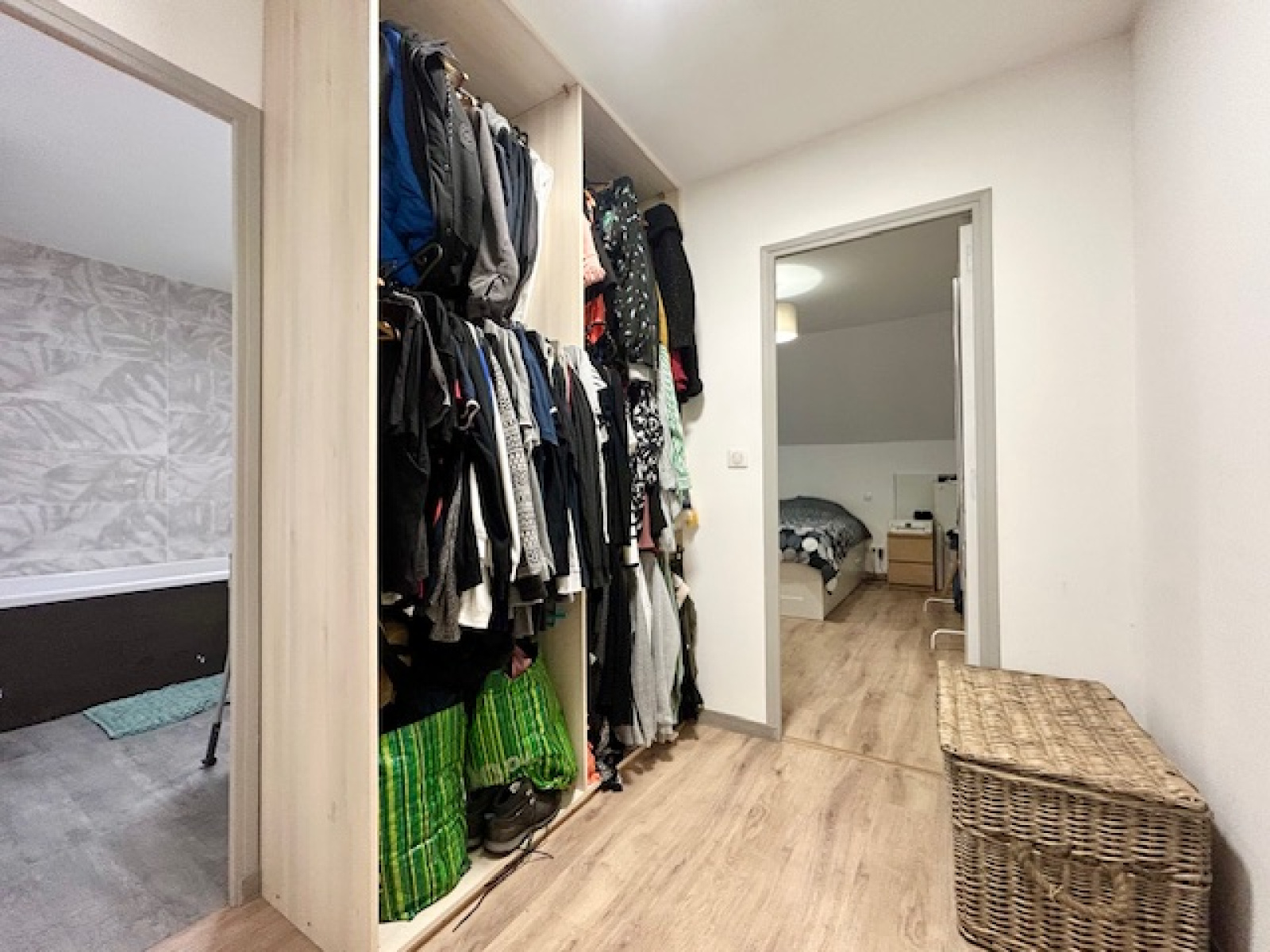 A l’étage, on trouve un palier, deux chambres en enfilade d’env. 9 m2 et 15 m2, et une suite parentale composée d’un dressing, d’une salle de bains avec WC et double vasque, et d’une troisième chambre d’env. 17 m2.