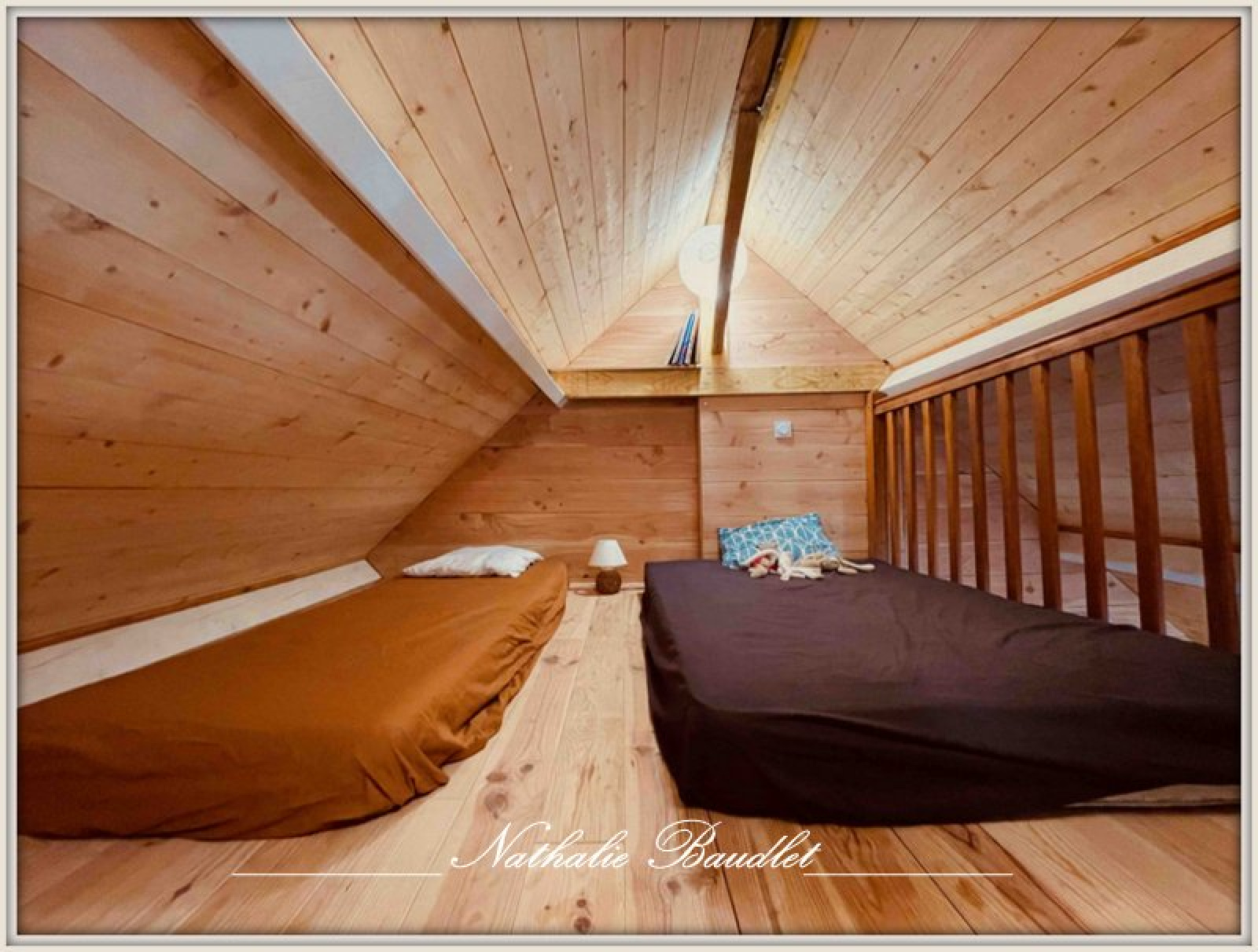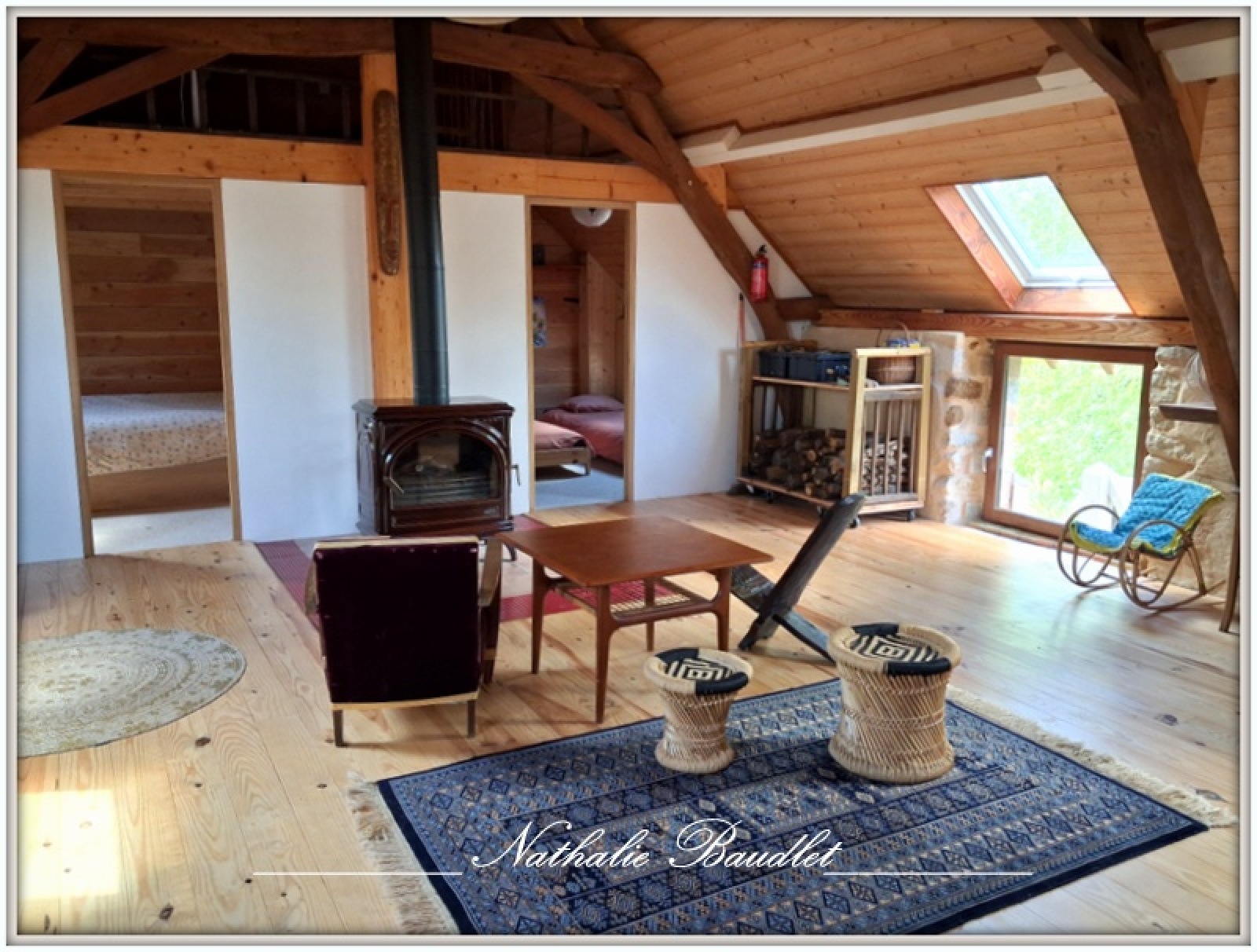 La seconde partie de la longère, actuellement utilisée pour une activité touristique, est également idéale pour recevoir sa famille et ses amis, car ce lieu très cosy accueille 6 personnes. Avec sa cuisine semi-ouverte sur le séjour, son salon avec poêle à bois, ses 2 chambres et sa mezzanine, ainsi que sa salle de bains, permettent à vos hôtes une indépendance tout en profitant du site.