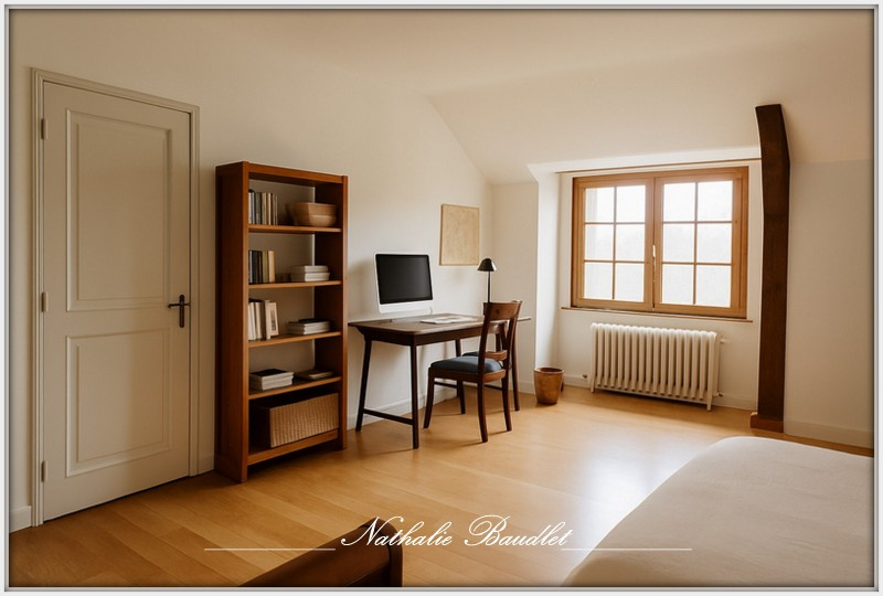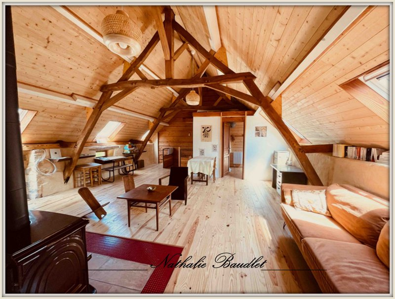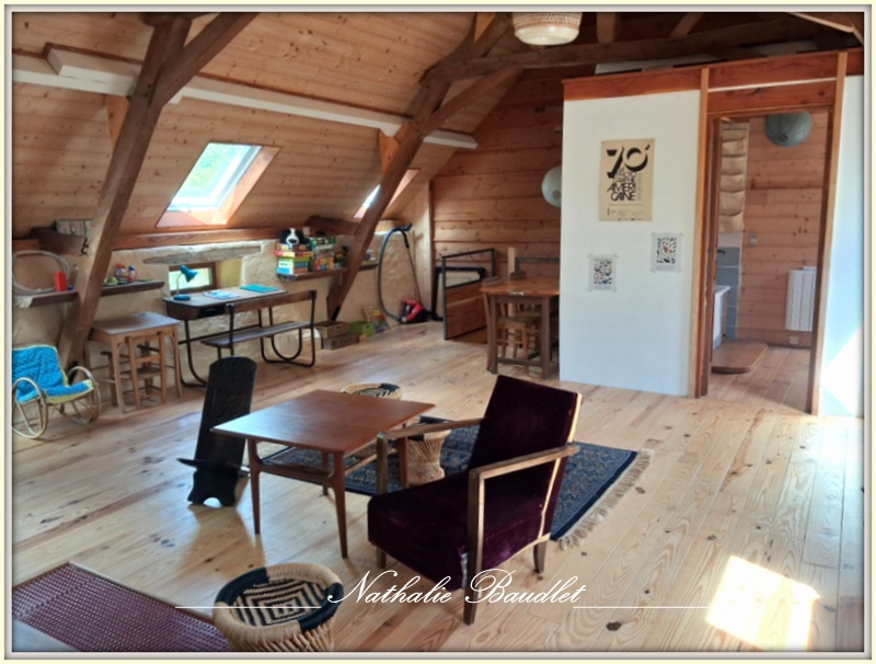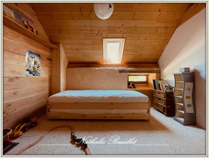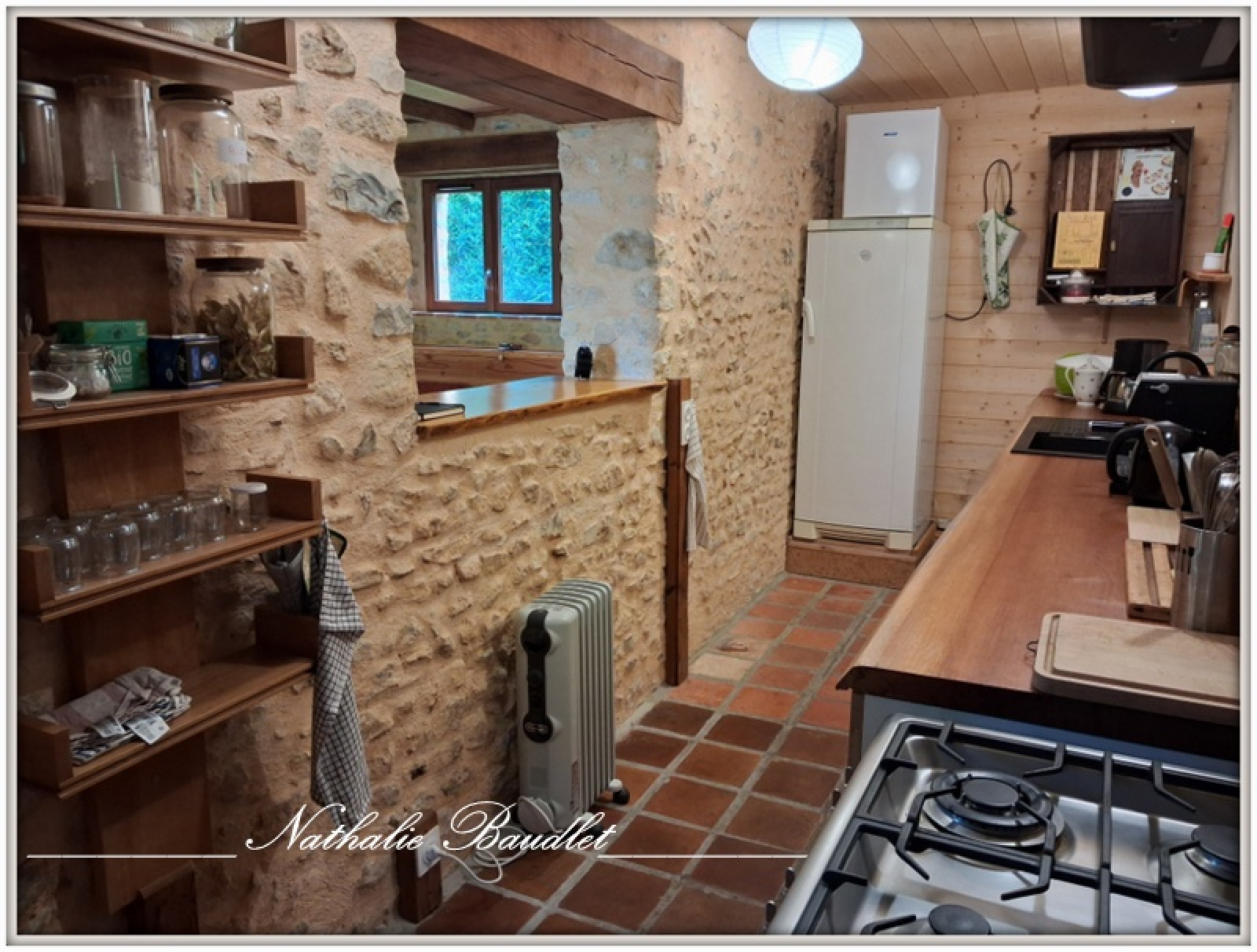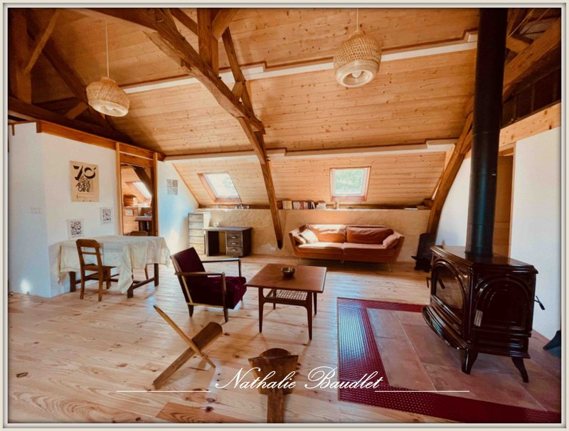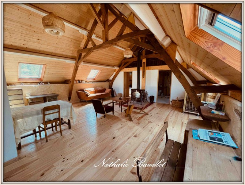 The second part of the farmhouse, currently used as a tourist accommodation business, is also perfect for welcoming family and friends. This warm and inviting space can accommodate up to 6 persons, and includes a semi-open kitchen leading to the living area, a lounge with a wood-burning stove, 2 bedrooms, a mezzanine, and a bathroom, offering guests independence while still enjoying the beauty of property.