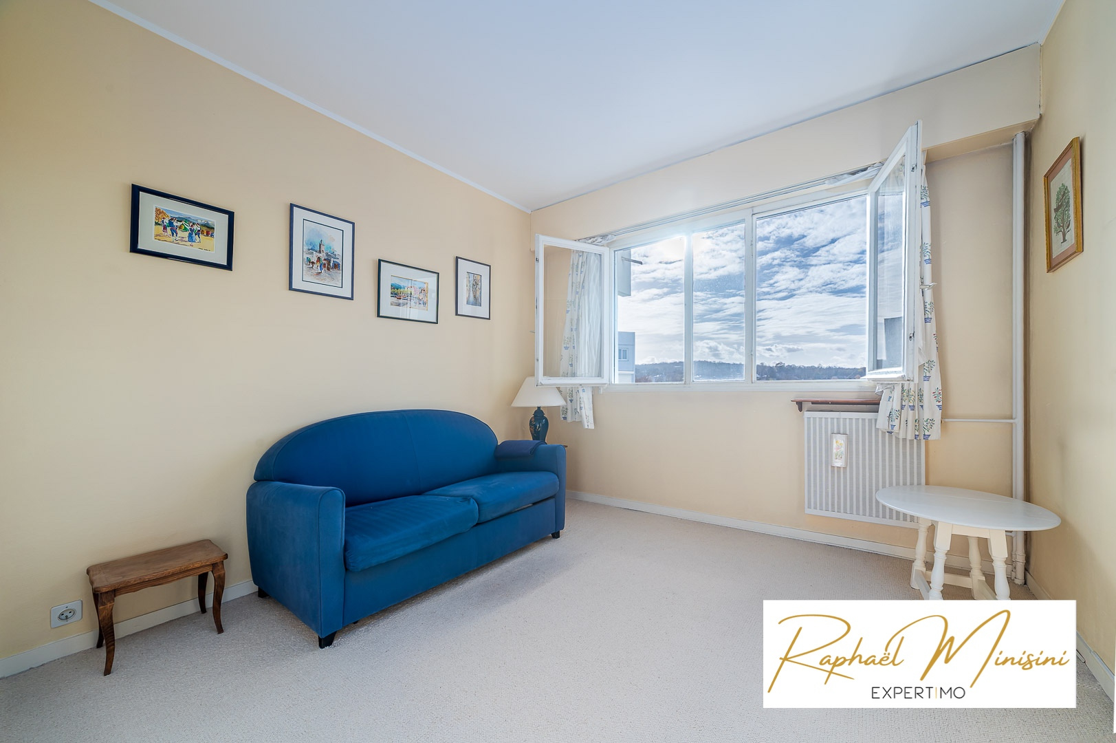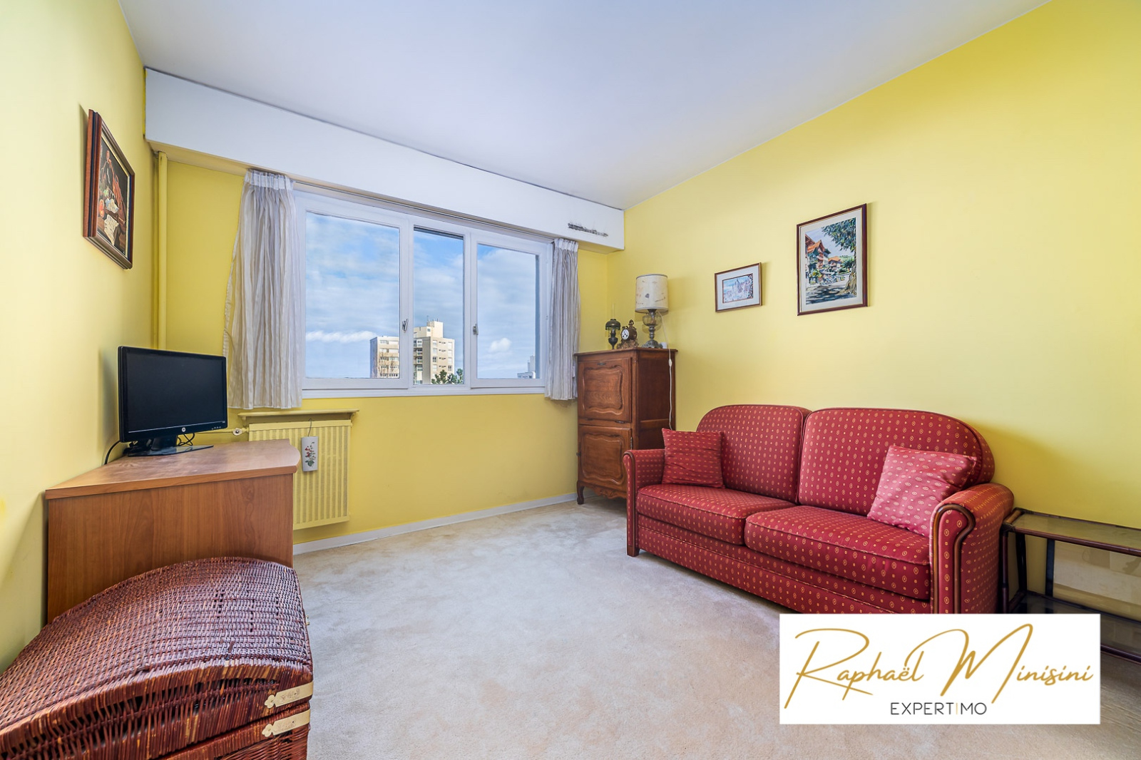 Il comprend une entrée avec placard desservant un séjour ouvert sur un balcon profond permettant d’installer une table et des chaises, ainsi qu’une cuisine indépendante aménagée avec cellier.