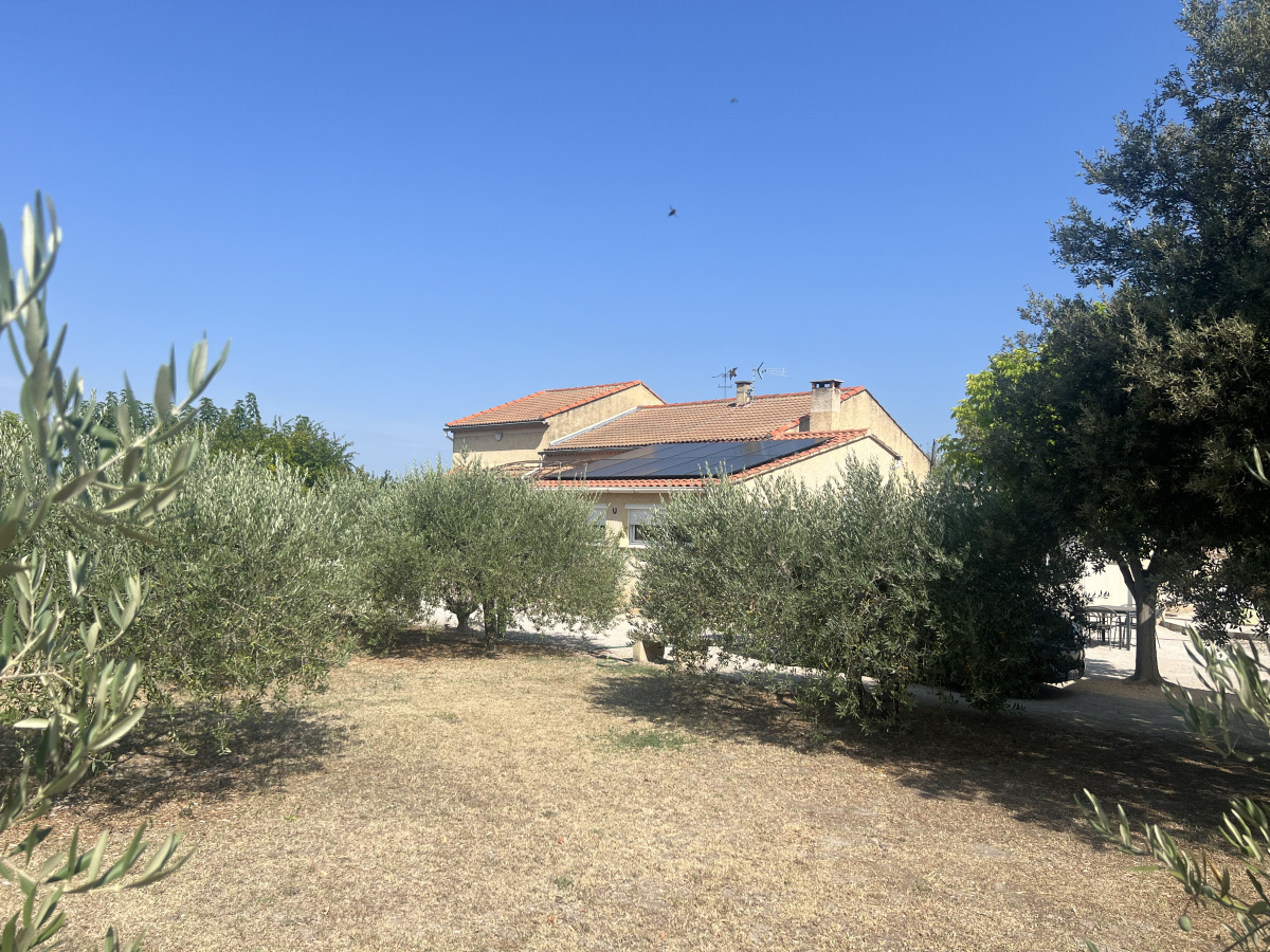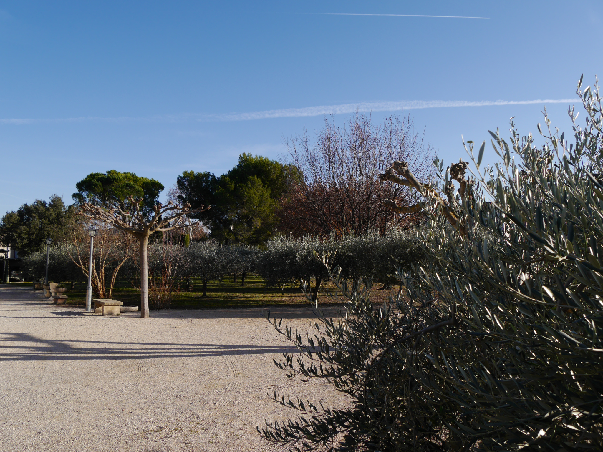 Grand jardin arboré de + de 2 500 m², cour accueillante, nombreux oliviers, garage de plus de 40 m².