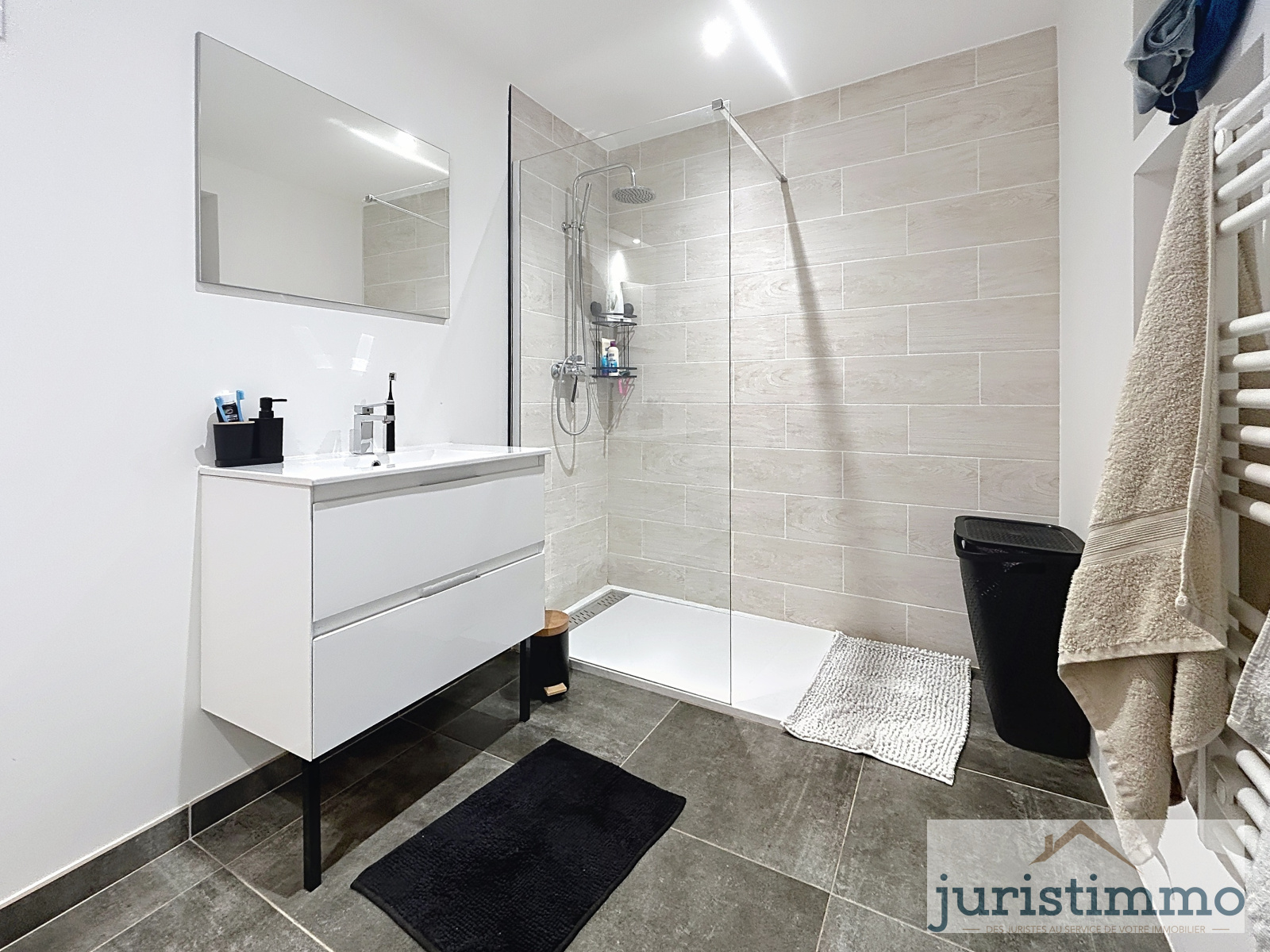 Un dégagement de 7,54 m² dessert une salle d’eau rénovée avec douche à l’italienne, sèche-serviettes, WC et VMC, une buanderie de 10,24 m², ainsi que deux chambres de 12,32 m² (parquet et placard) et 12,77 m².