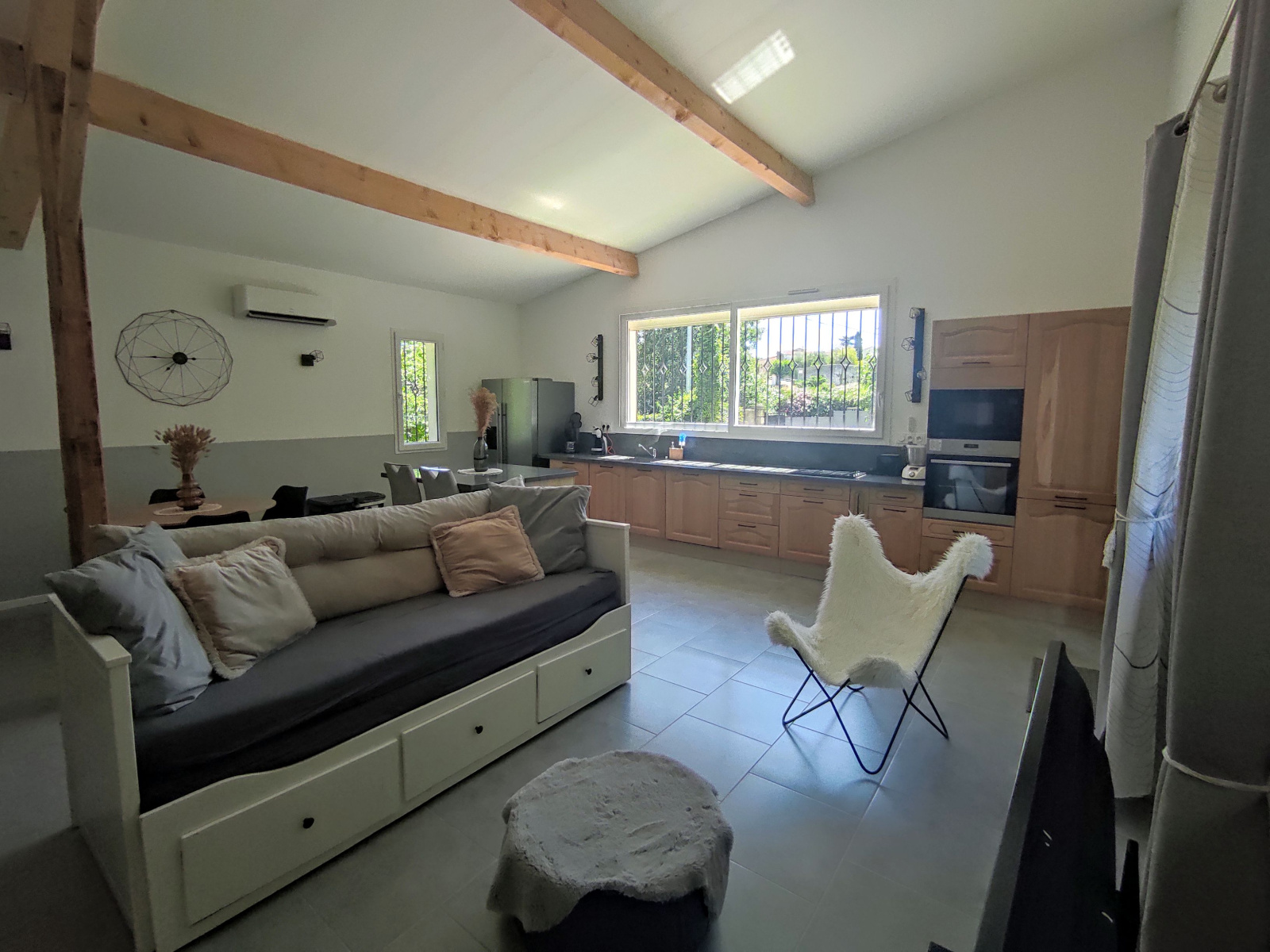 Prestations de confort : pompe à chaleur, climatisation réversible, panneaux photovoltaïques, double vitrage, nombreux rangements, portail automatique.