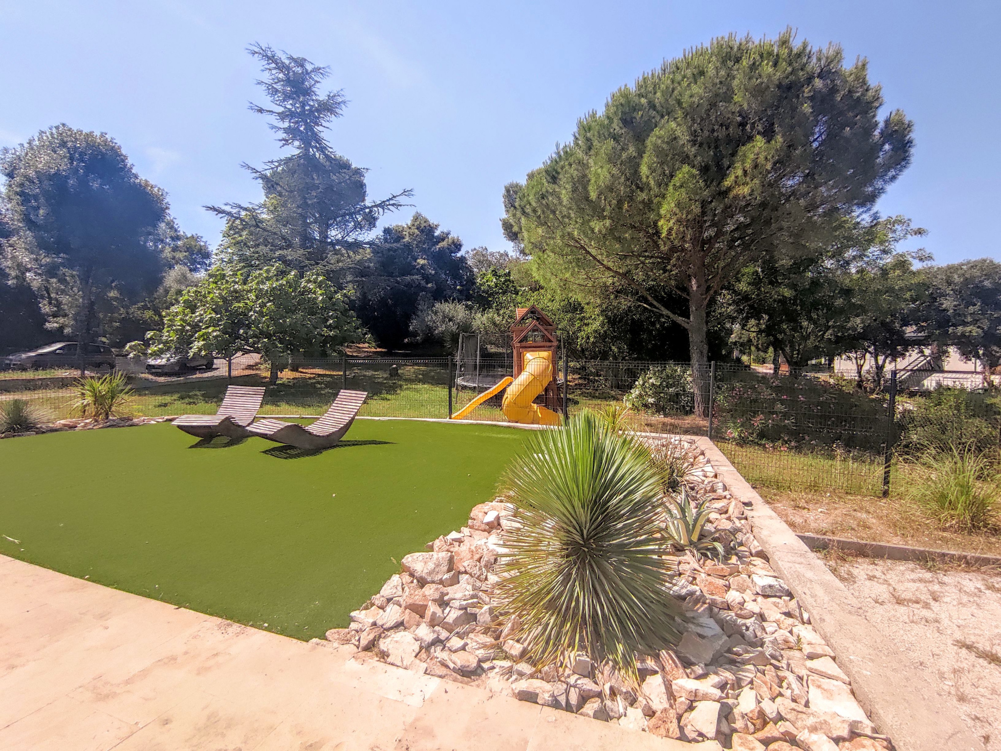 Sur un parc paysagé d’environ 3 350 m², orné d’oliviers, d’arbres fruitiers et d’essences méditerranéennes, une majestueuse fontaine trône au cœur du jardin, apportant charme et fraîcheur à l’ensemble. Un boulodrome complète ce cadre convivial et authentique, idéal pour les moments de partage entre amis ou en famille. Ce véritable havre de paix conjugue espace, confort et potentiel. L’ensemble est situé en zone constructible (sous réserve des autorisations d’urbanisme).