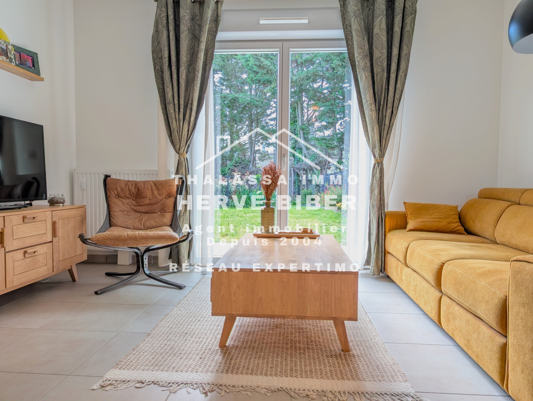 À l’extérieur, un jardin agréable avec terrasse, et deux places de stationnement privatives complètent le bien.