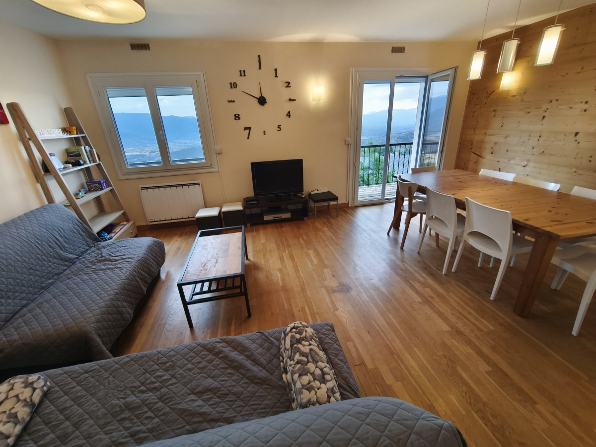 Grand balcon exposé Sud avec une magnifique vue panoramique et de superbes couchers de soleil!
