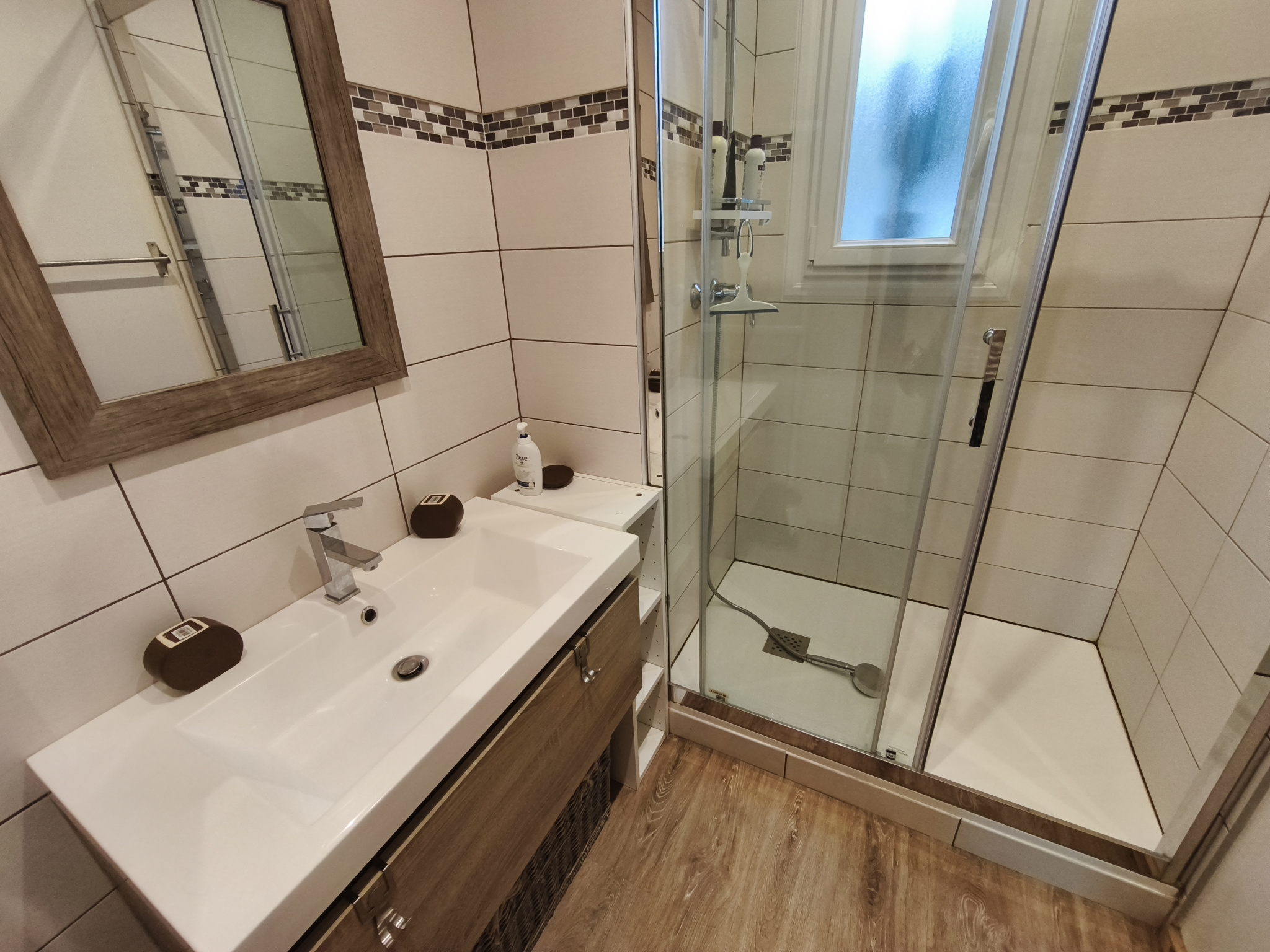 Il bénéficie d'une salle d'eau et une salle de bains, 2 toilettes et une grandes cave.