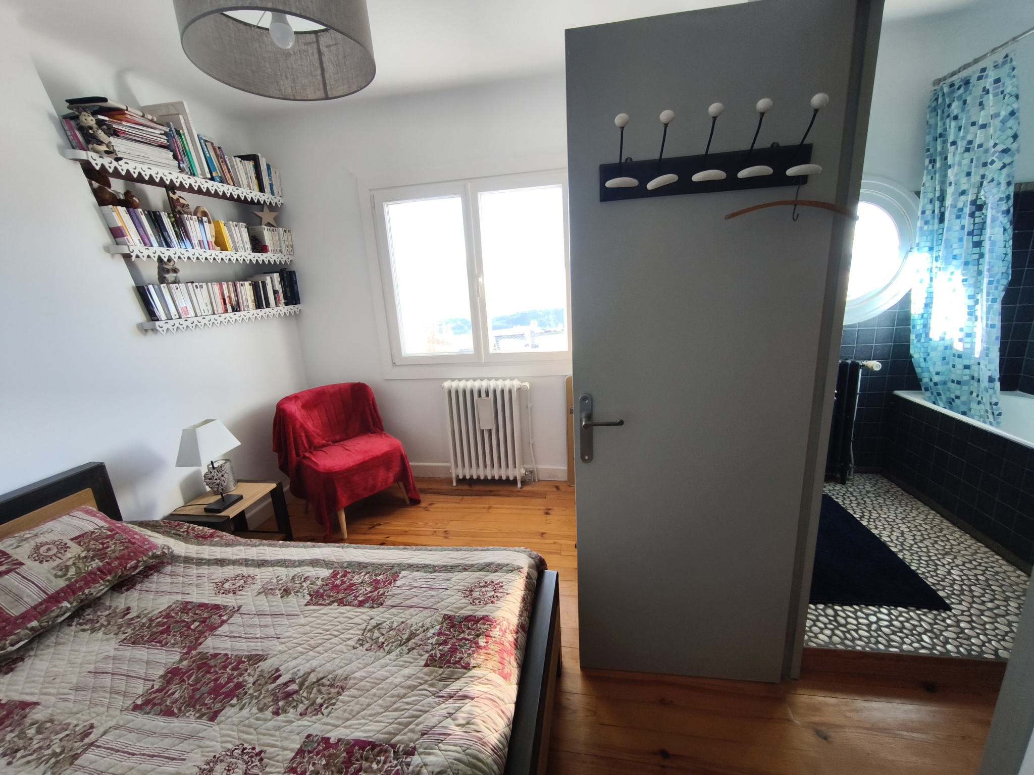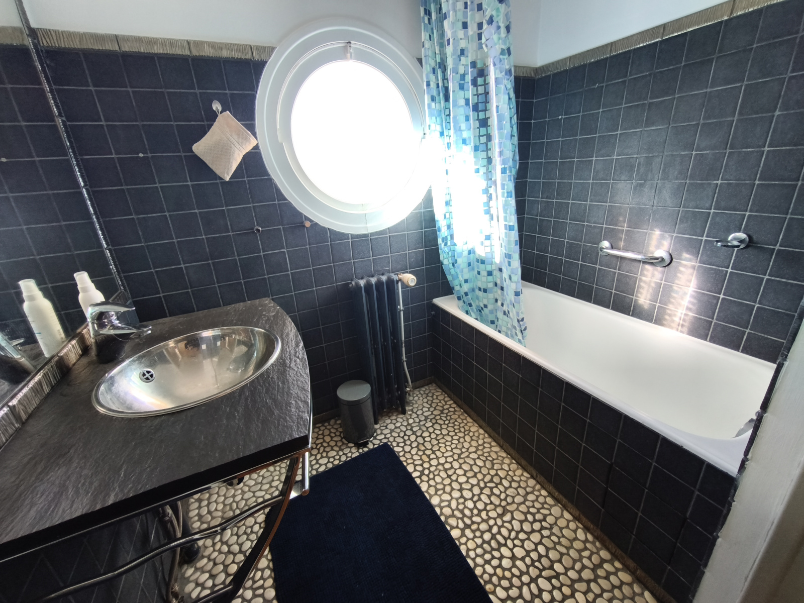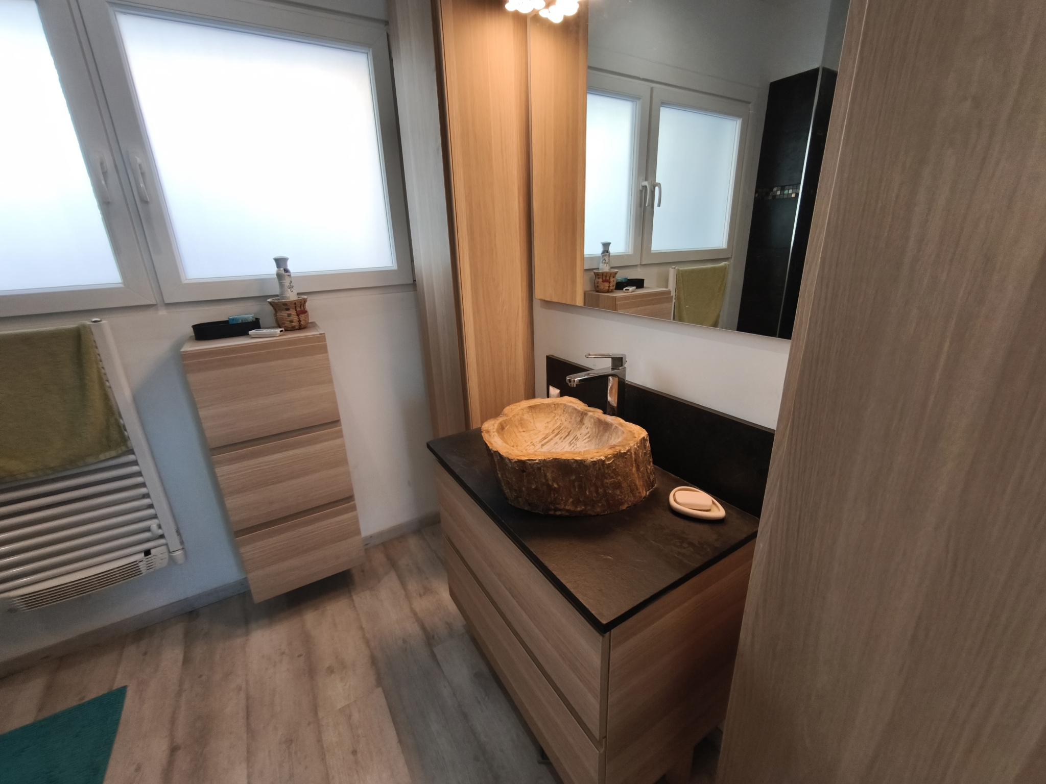 Elle dispose de 3 chambres + un bureau , une salle d'eau , une salle de bain. et une place de parking couverte à 2 pas de la maison.
