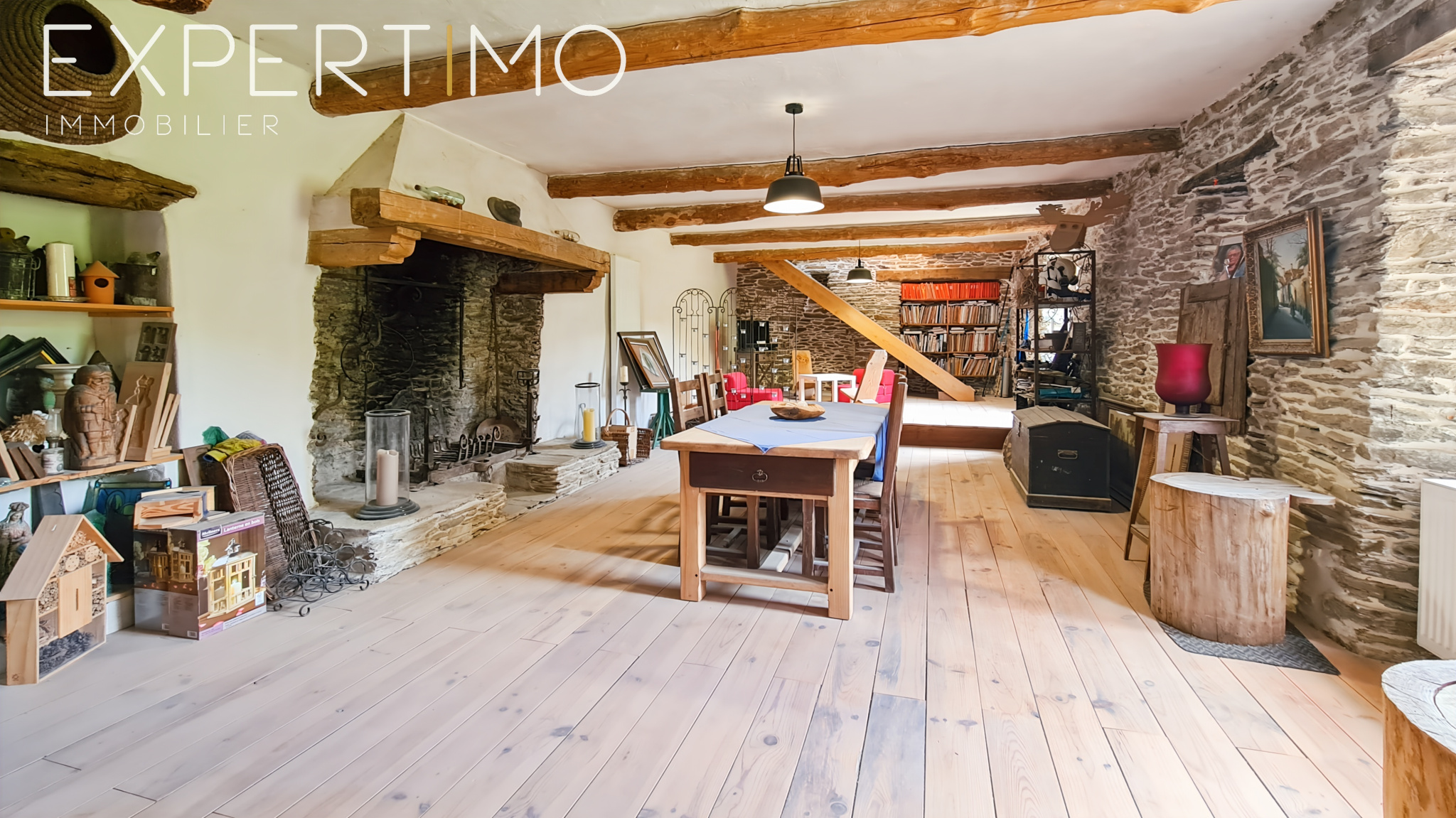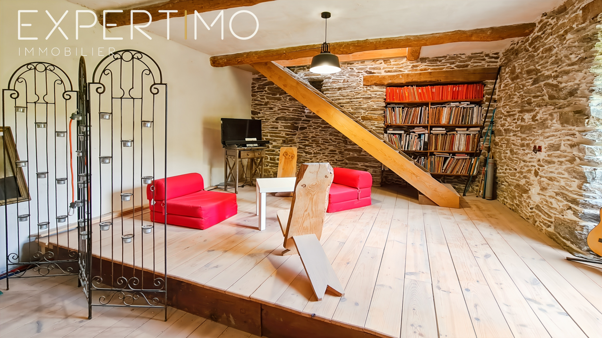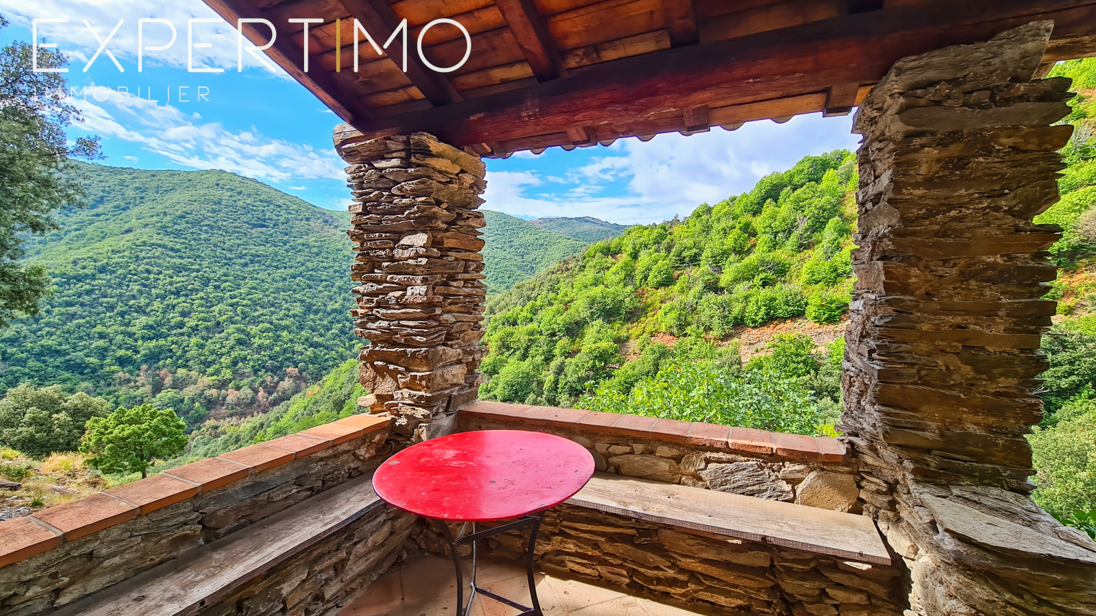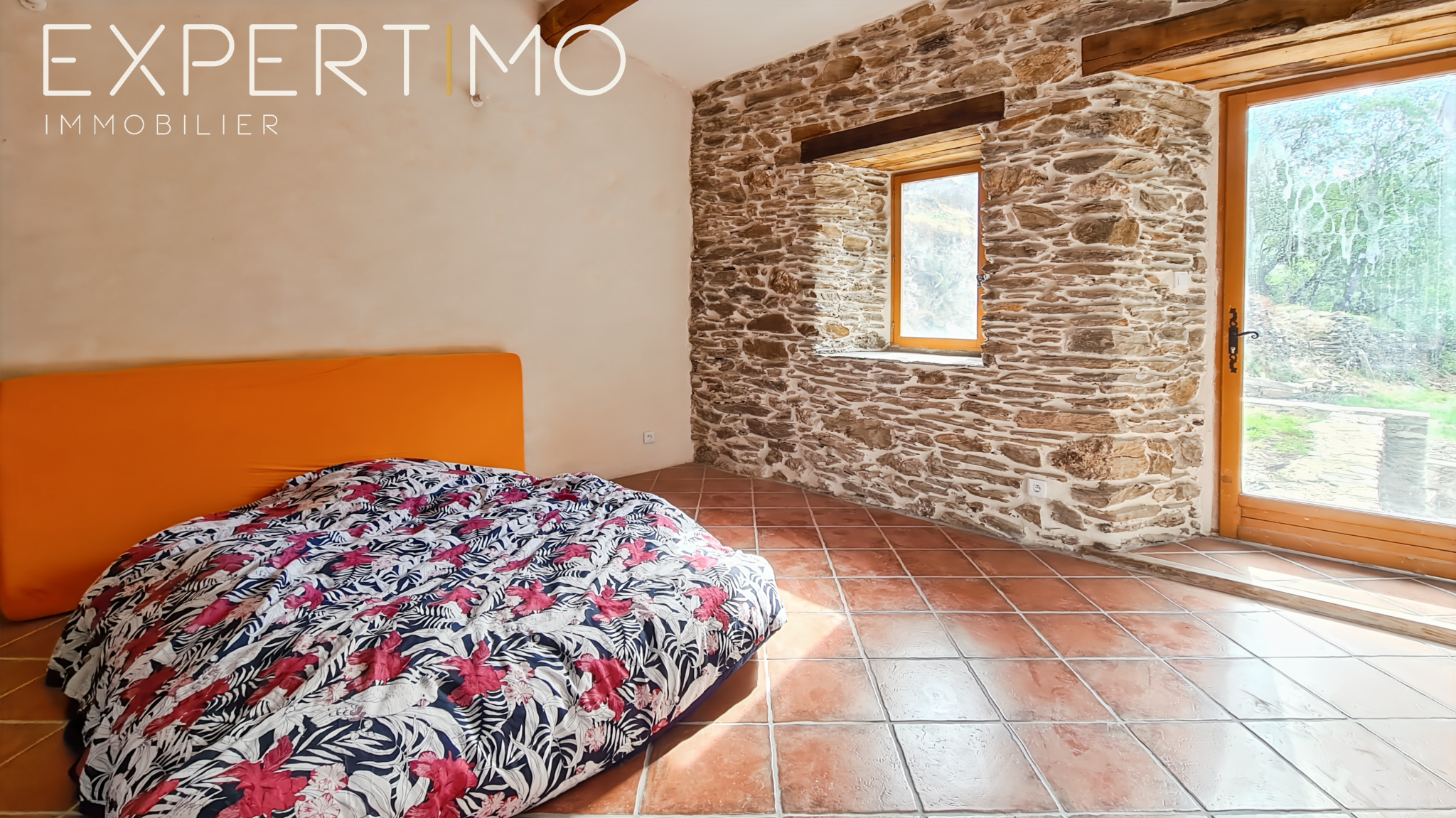 Habitation comprenant une terrasse couverte (32 m²) avec vue imprenable sur la vallée, donnant sur la cuisine (20 m²), puis sur le salon / salle à manger (53 m²) avec cheminée. A l'étage se trouvent deux chambres dont une avec salle d'eau, un wc, une grande pièce de 50 m² à aménager (possibilité de créer deux chambres supplémentaires et une salle de bains).