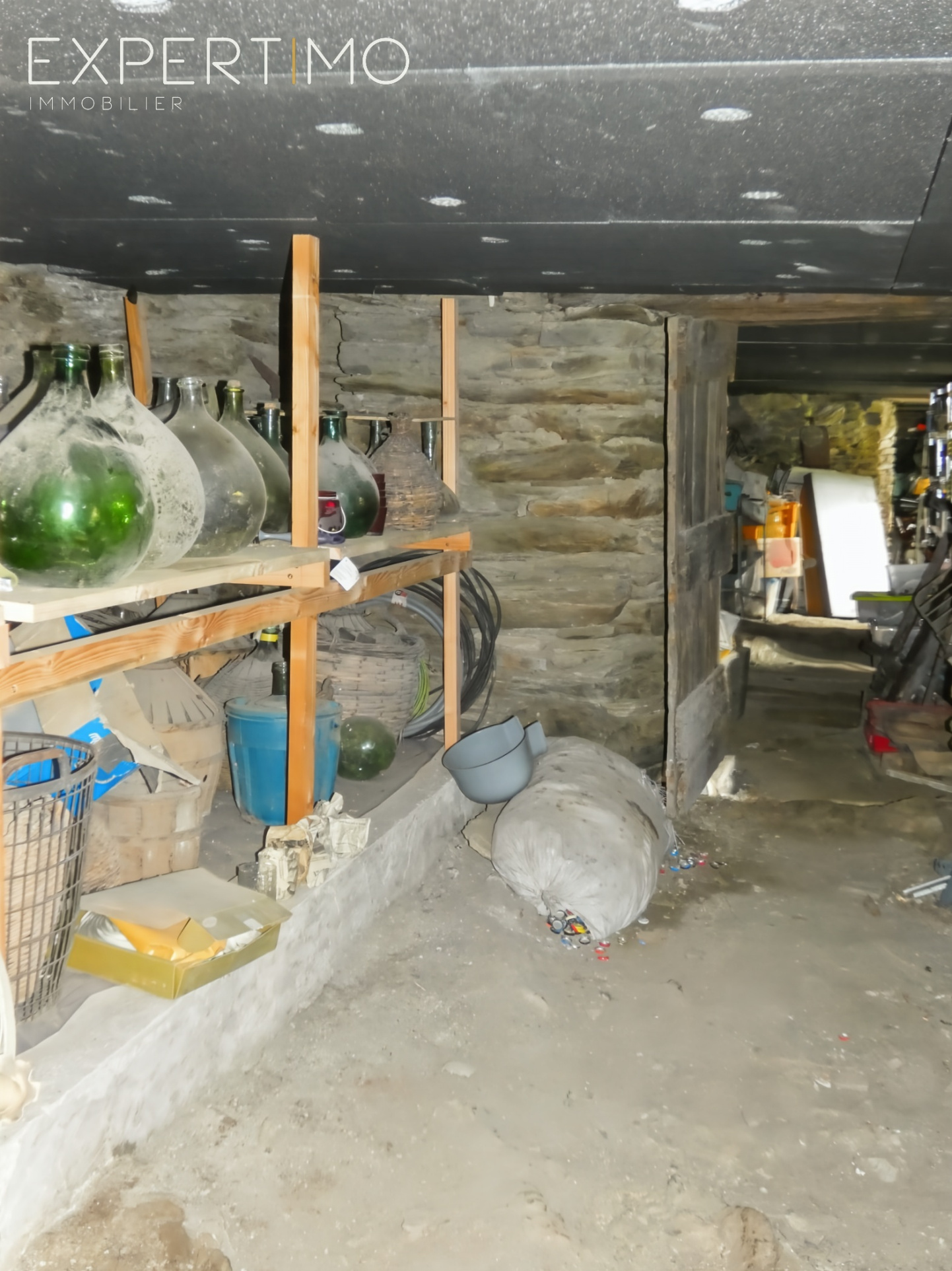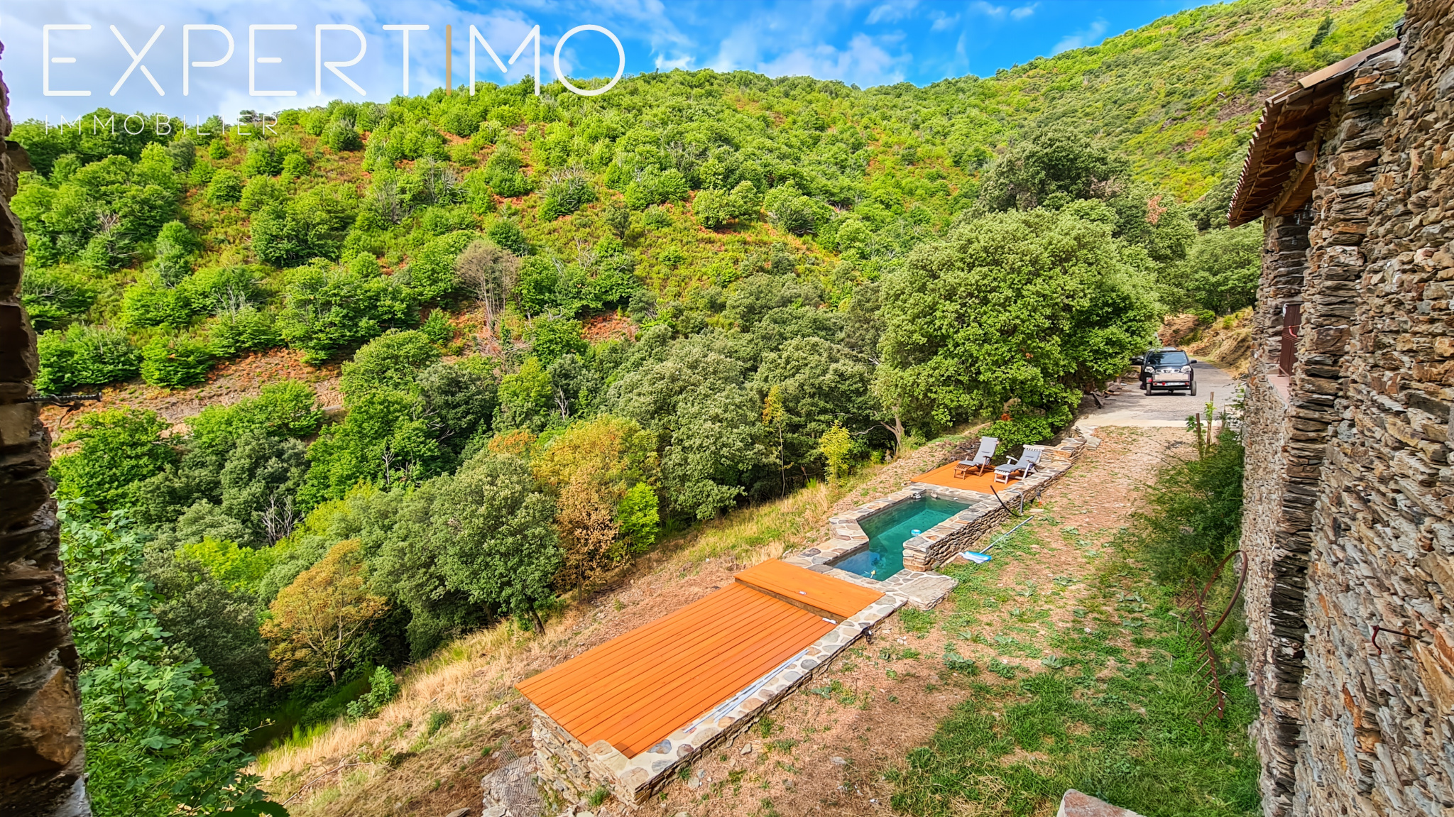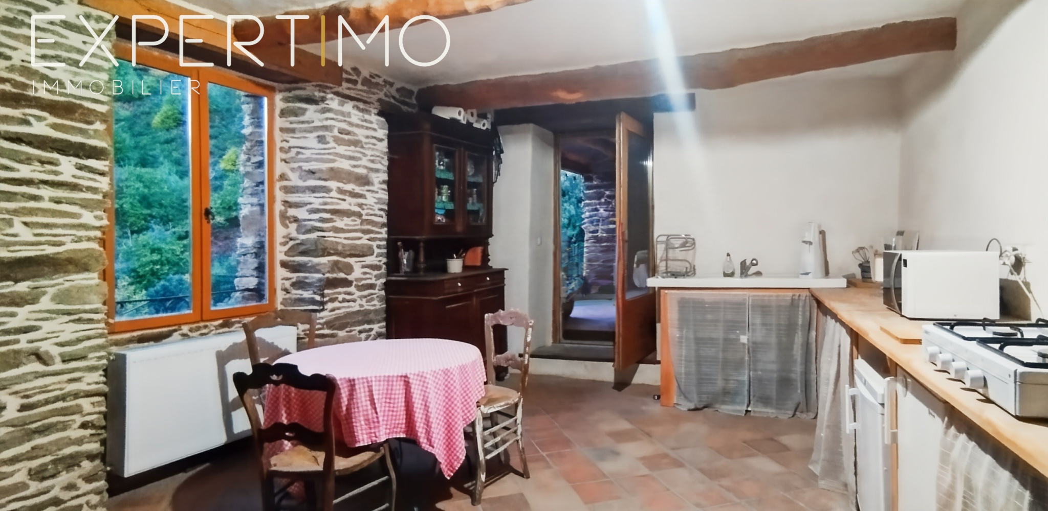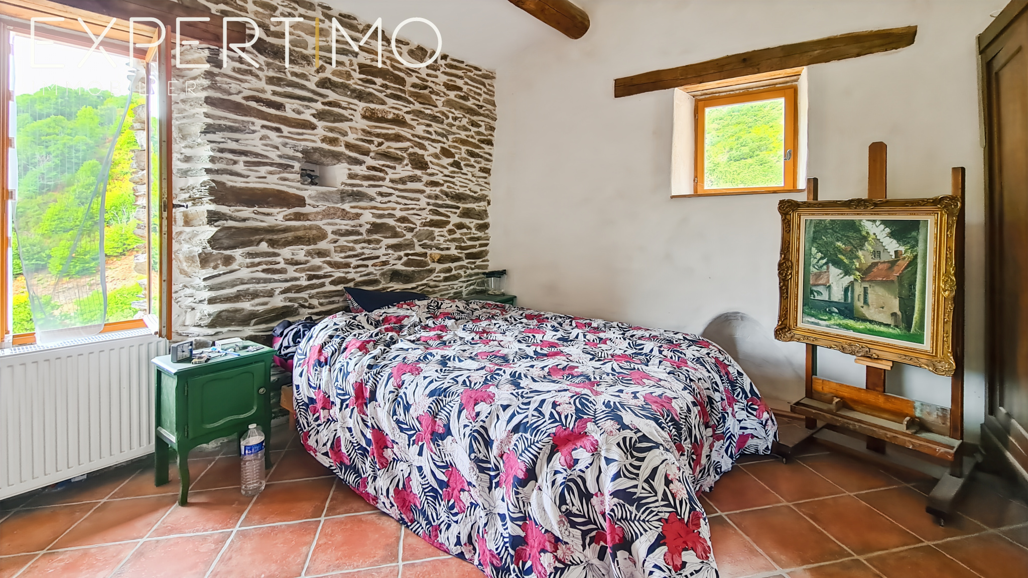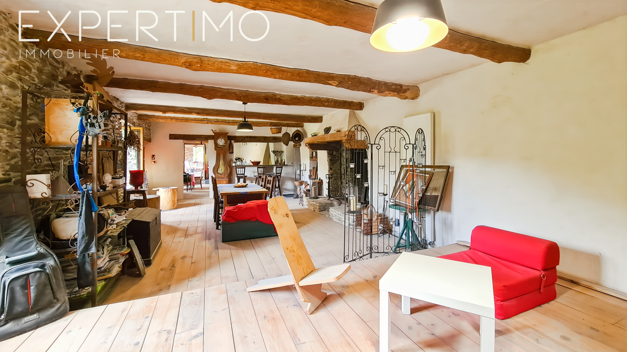 Habitation comprenant une terrasse couverte (32 m²) avec vue imprenable sur la vallée, donnant sur la cuisine (20 m²), puis sur le salon / salle à manger (53 m²) avec cheminée. A l'étage se trouvent deux chambres dont une avec salle d'eau, un wc, une grande pièce de 50 m² à aménager (possibilité de créer deux chambres supplémentaires et une salle de bains).