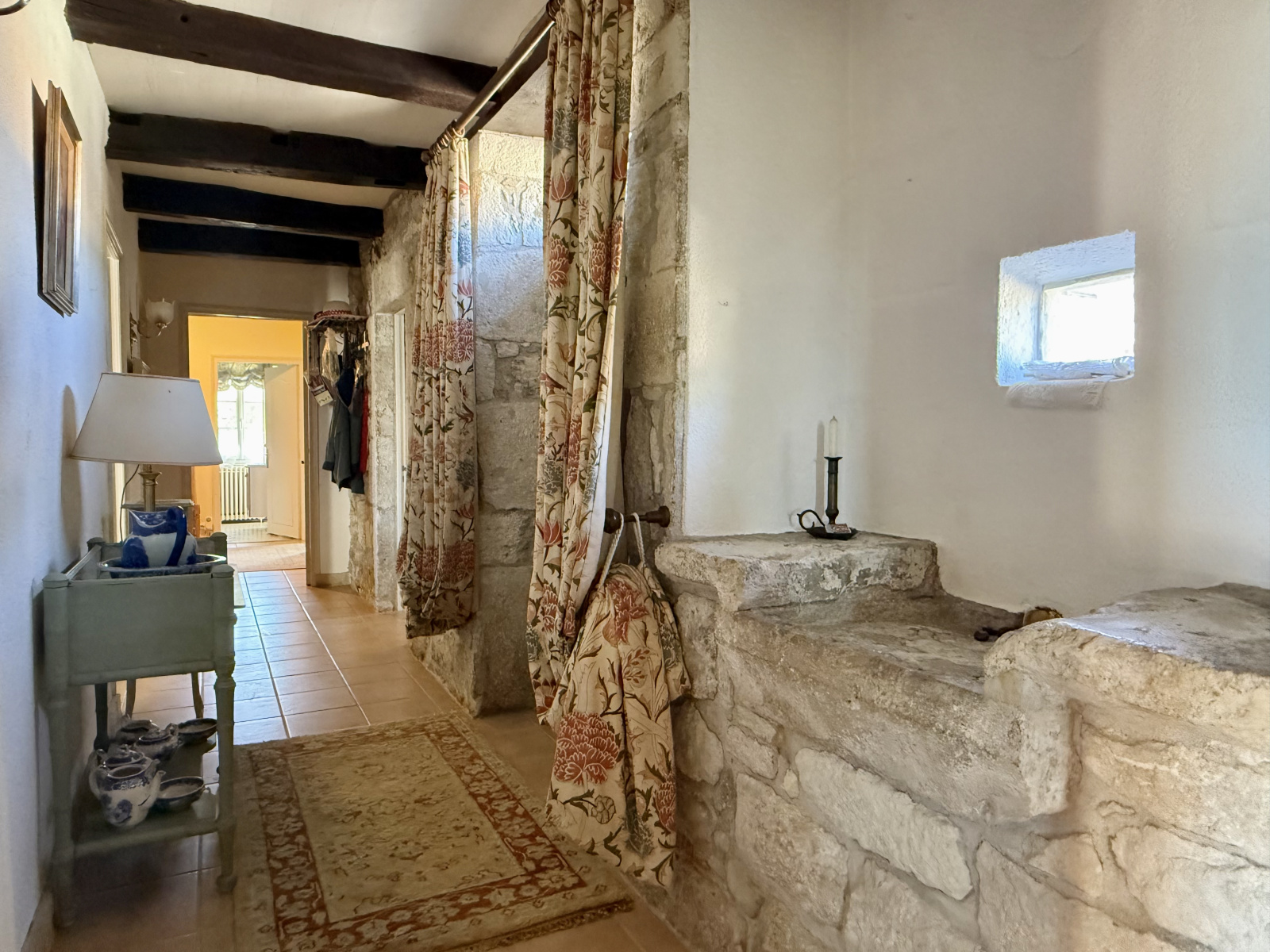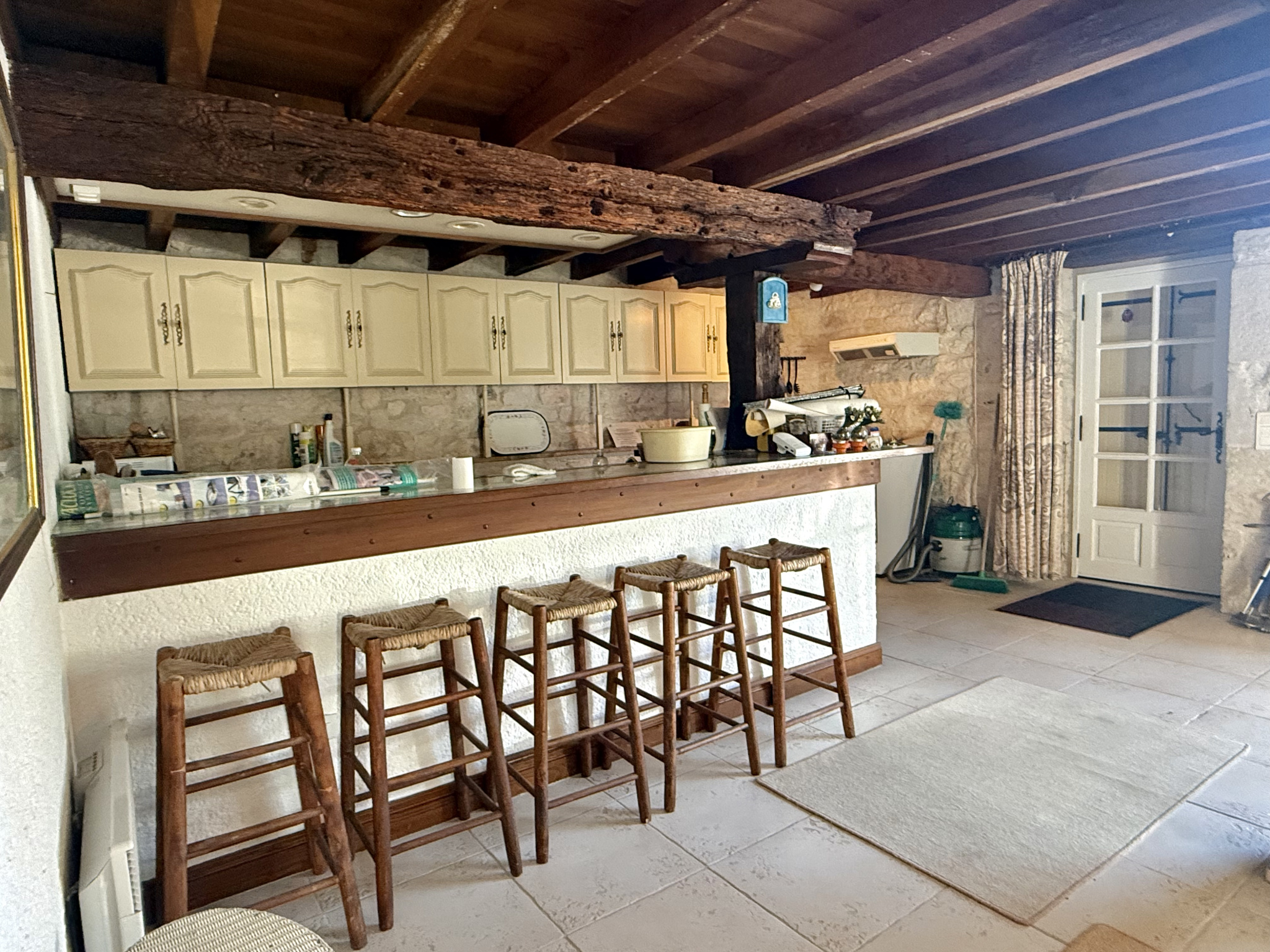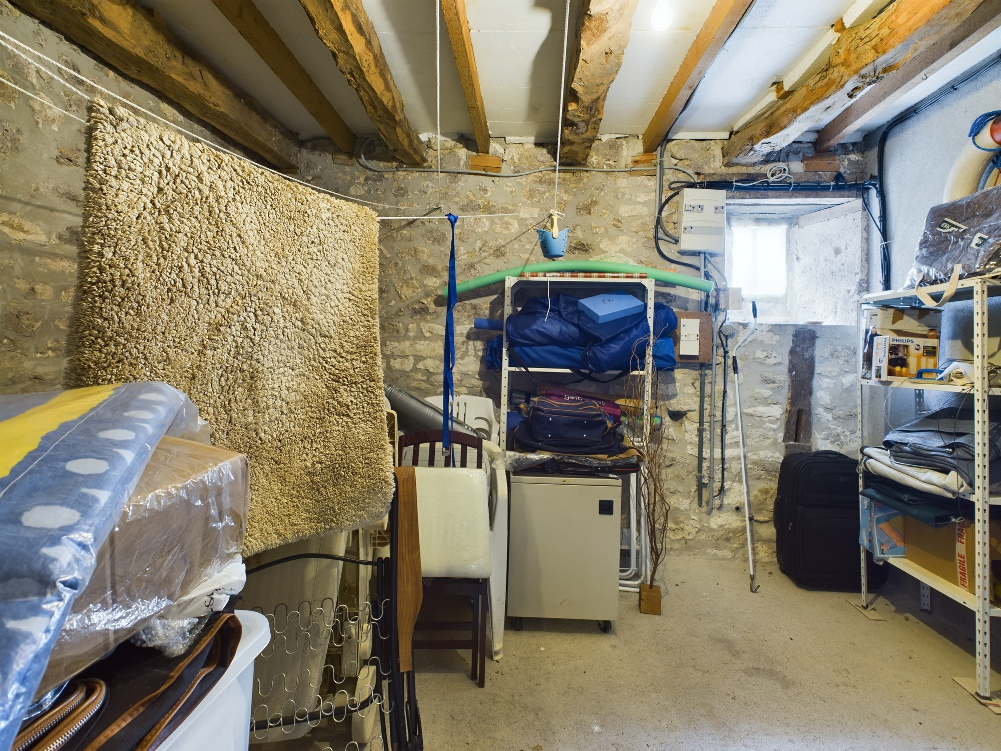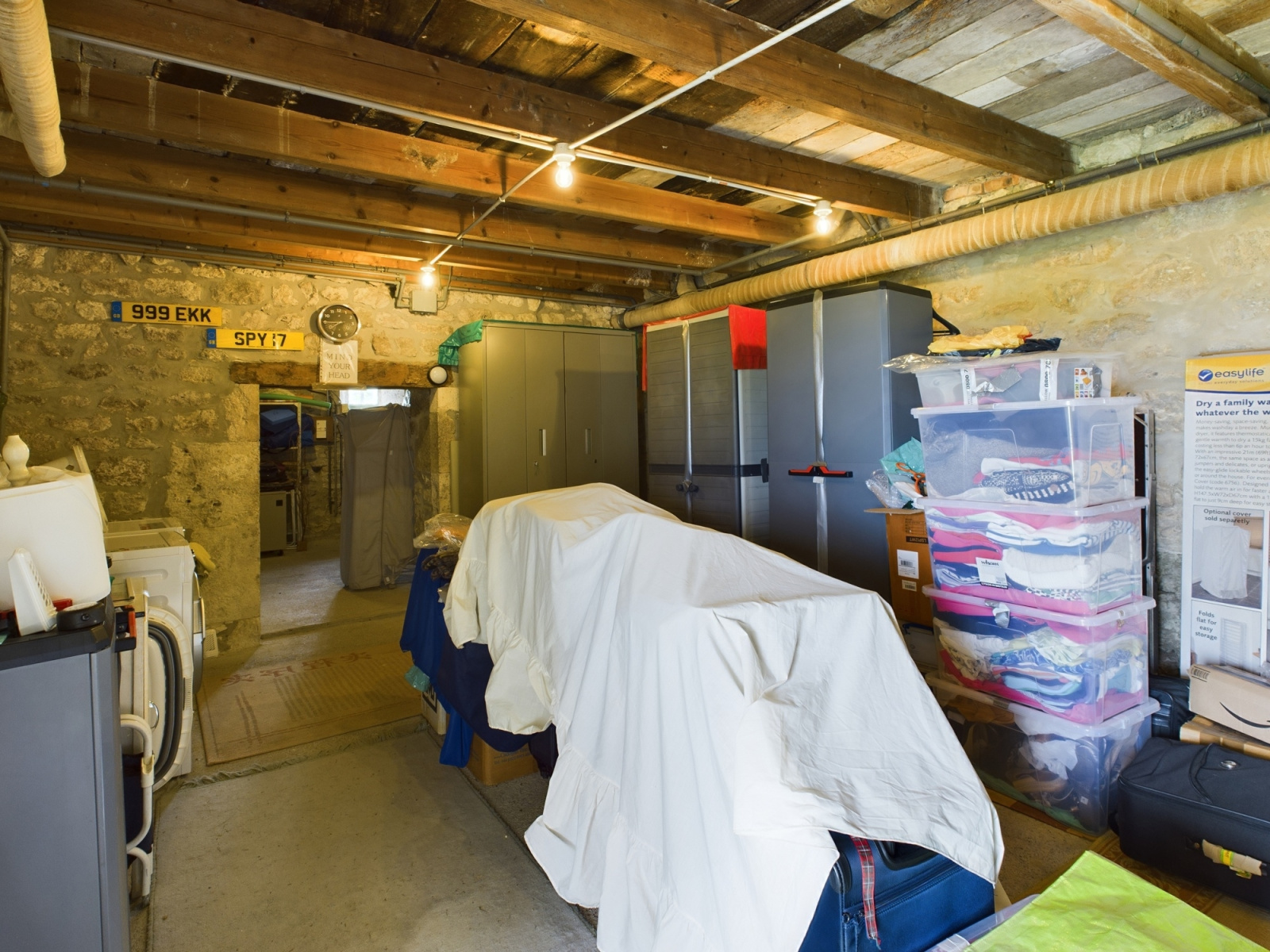 La maison principale bénéficie de fenêtres en double vitrage et d'un système de chauffage central (pompe à chaleur); elle possède des murs en pierres apparentes et des plafonds à poutres apparentes, ainsi qu'un four à pain d'origine dans la cuisine et une ancienne et rare fontaine profonde en pierre (utilisé pour laver le linge à l'époque !) Il y a une belle cheminée en pierre avec un poêle à bois efficace dans la salle de séjour. Au sous-sol, 3 pièces séparées en pierre (63m2) abritent la chaufferie, la buanderie, les rangements et une cave à vin verrouillable avec une bonne hauteur de chute et uniquement accessible de l'extérieur.