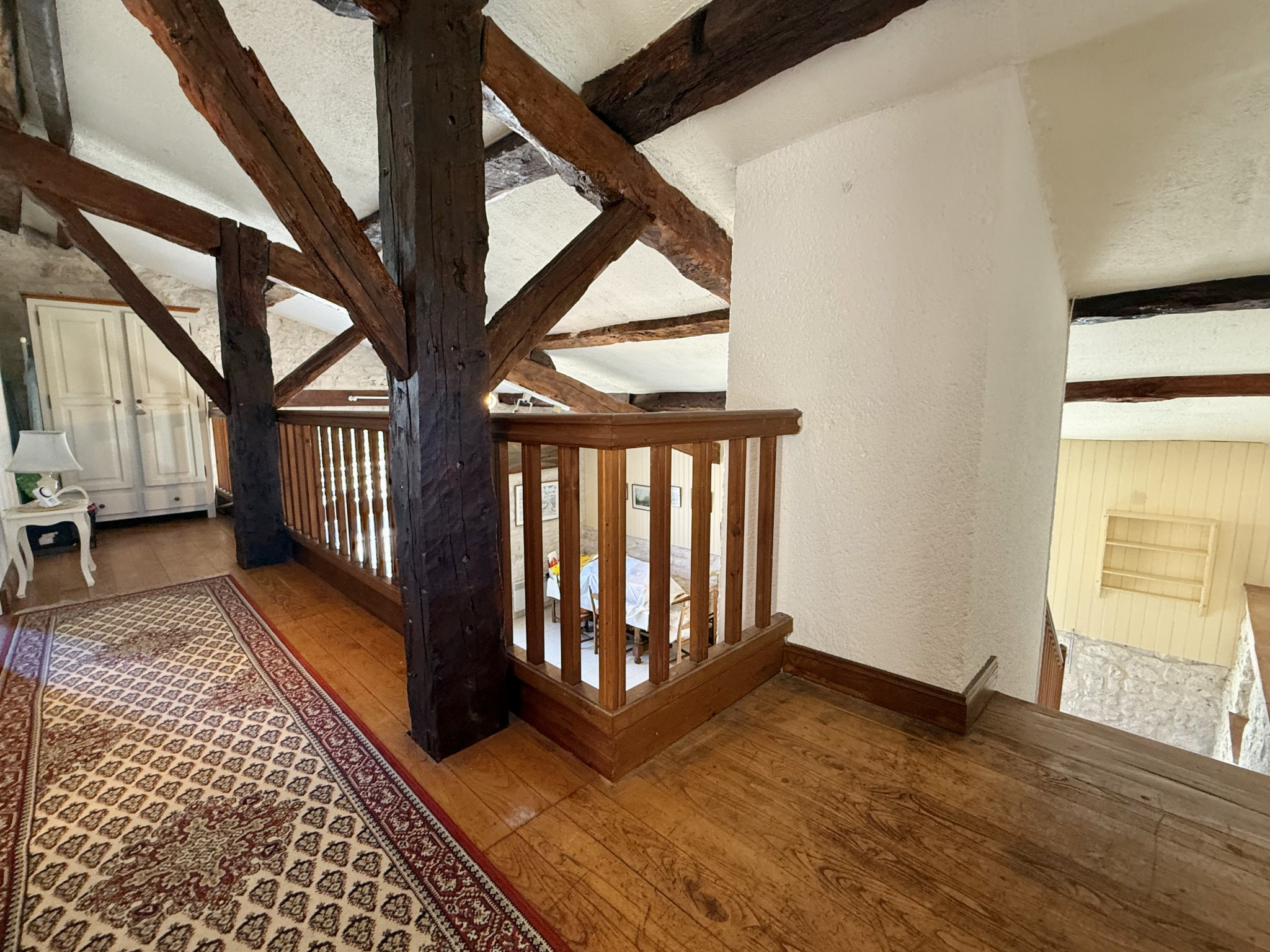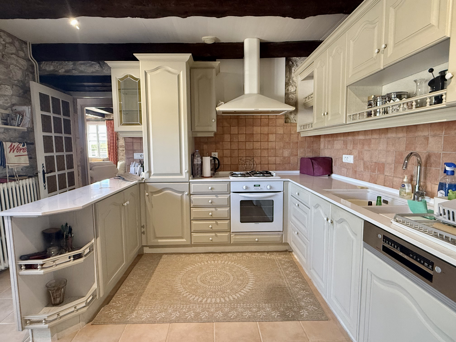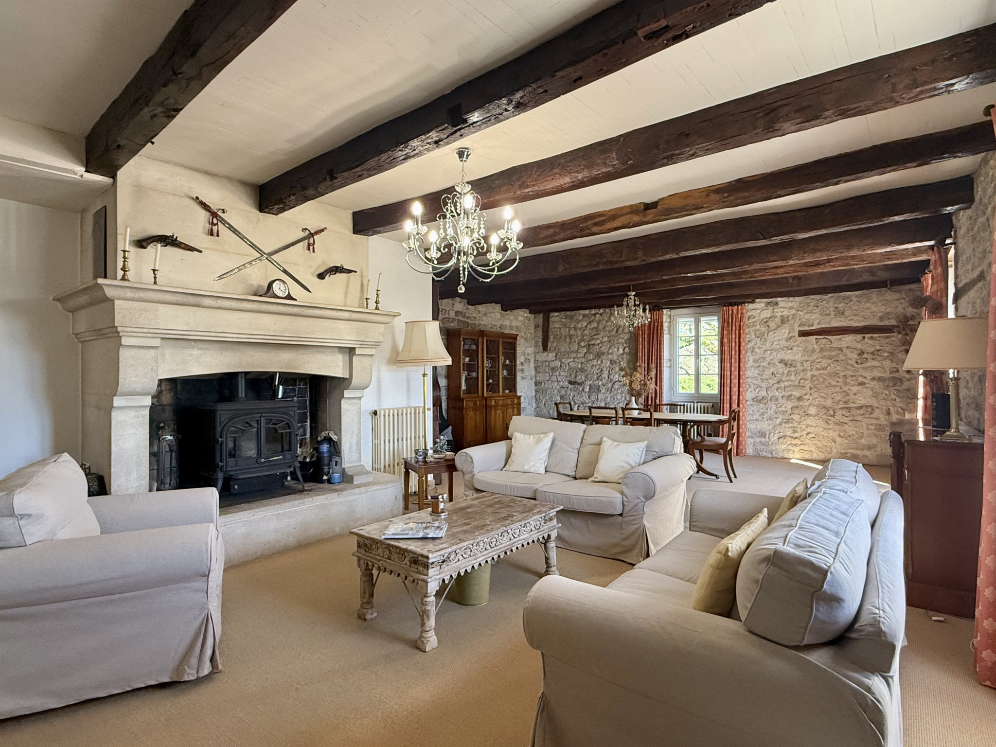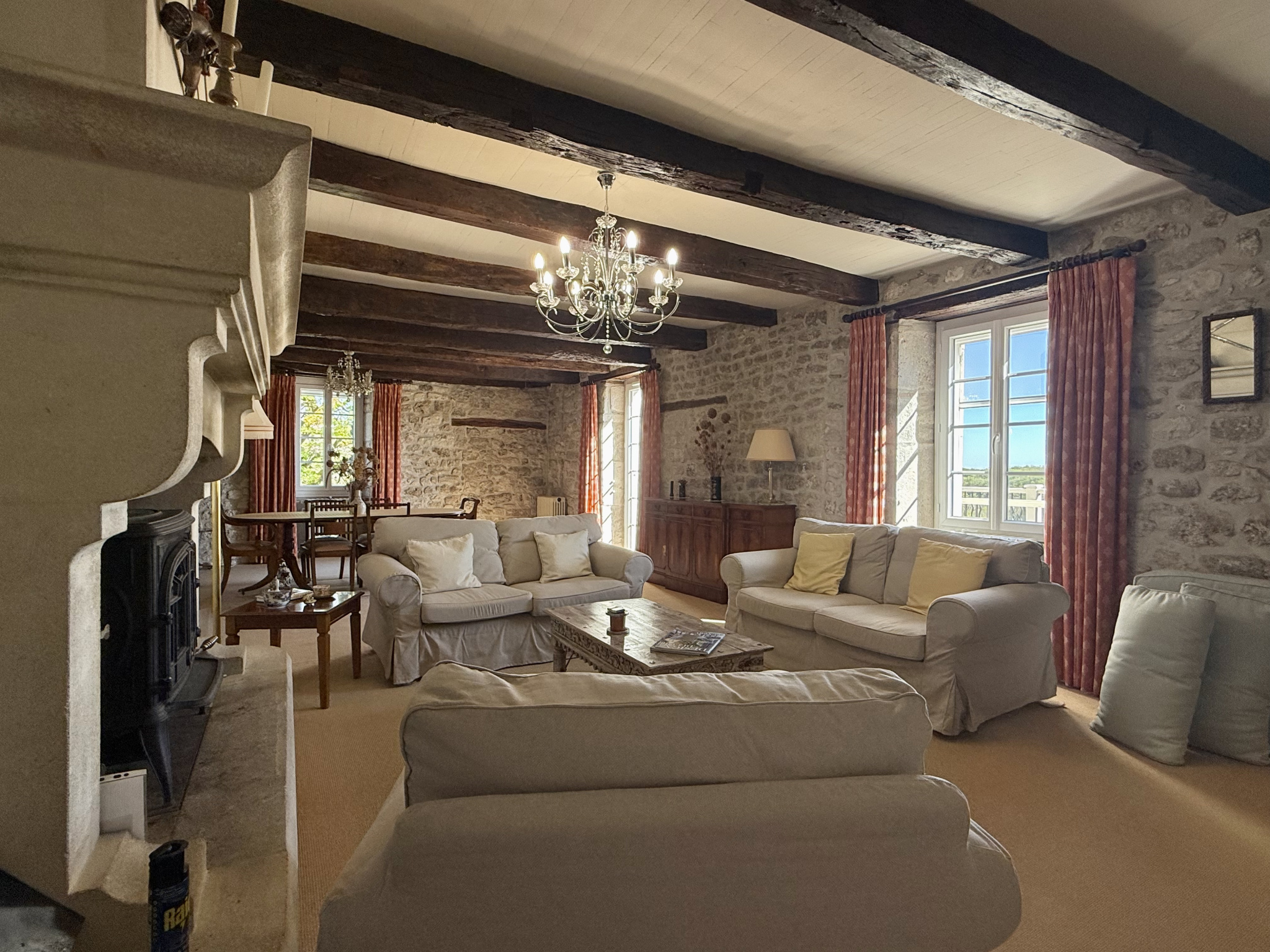 La maison principale bénéficie de fenêtres en double vitrage et d'un système de chauffage central (pompe à chaleur); elle possède des murs en pierres apparentes et des plafonds à poutres apparentes, ainsi qu'un four à pain d'origine dans la cuisine et une ancienne et rare fontaine profonde en pierre (utilisé pour laver le linge à l'époque !) Il y a une belle cheminée en pierre avec un poêle à bois efficace dans la salle de séjour. Au sous-sol, 3 pièces séparées en pierre (63m2) abritent la chaufferie, la buanderie, les rangements et une cave à vin verrouillable avec une bonne hauteur de chute et uniquement accessible de l'extérieur.