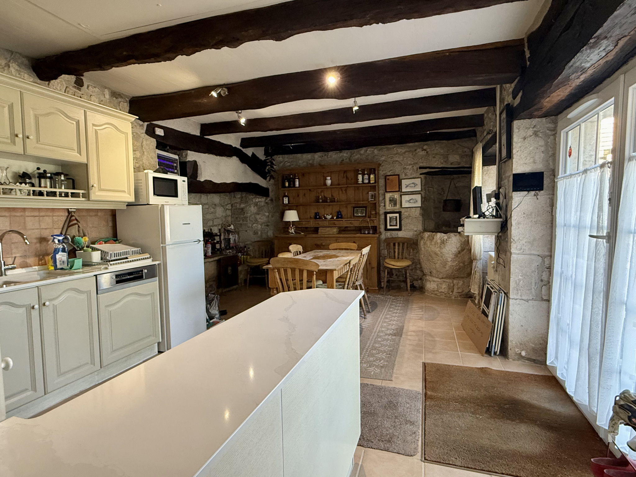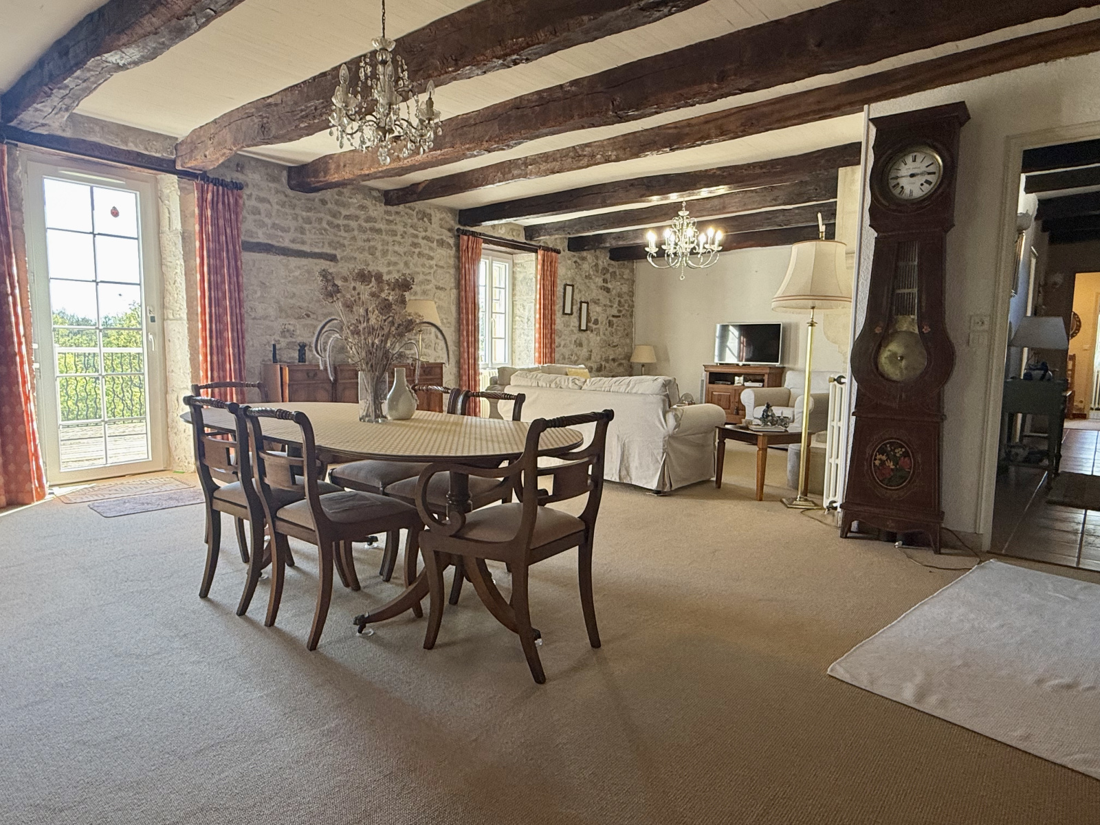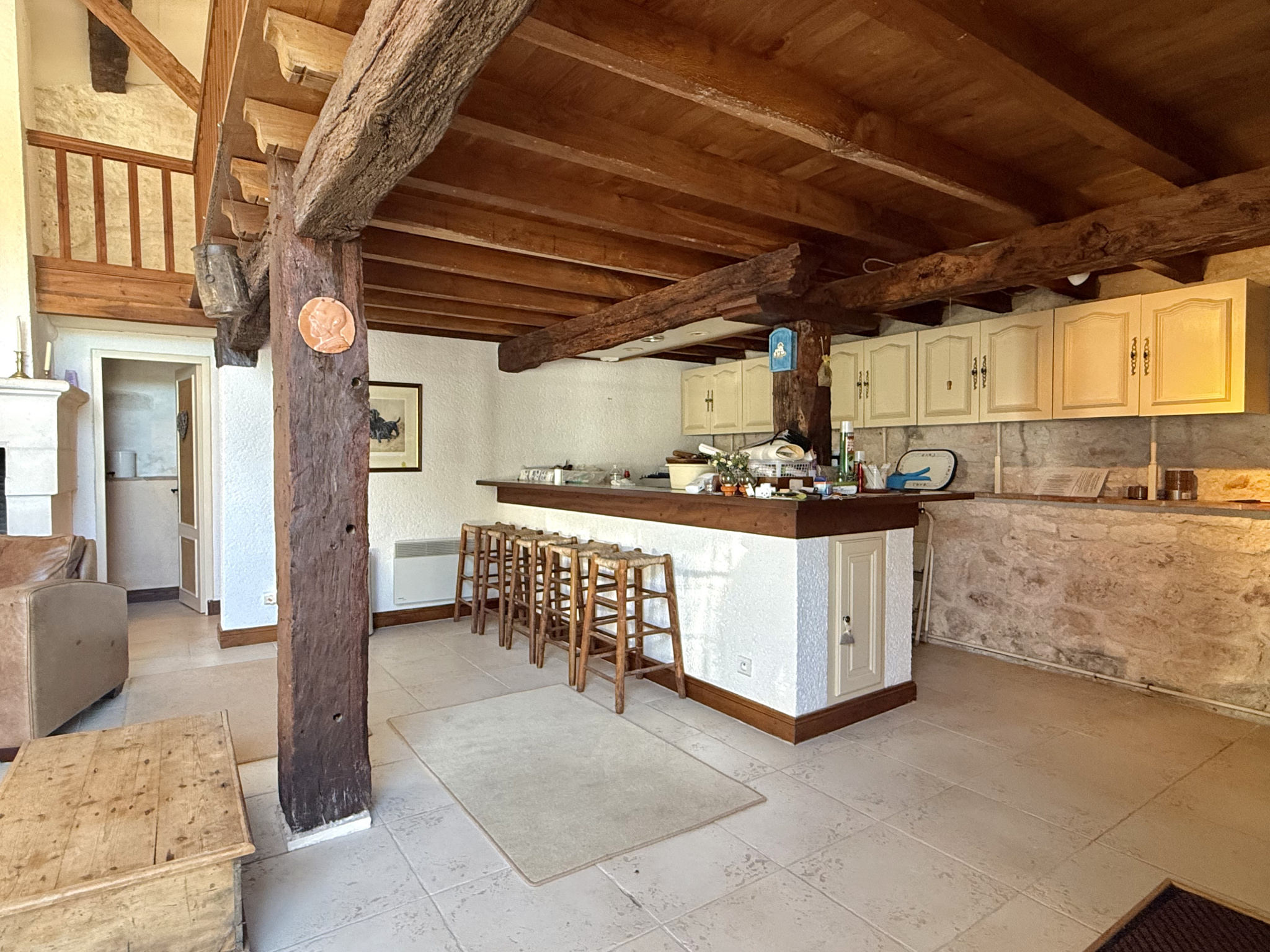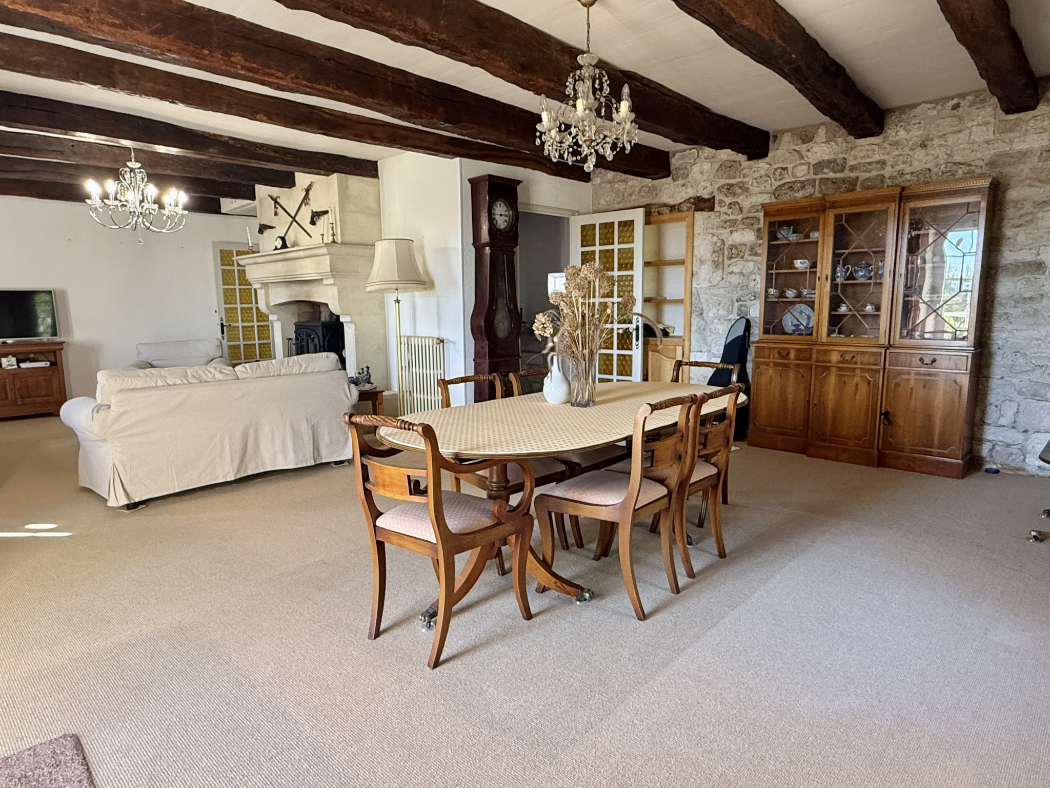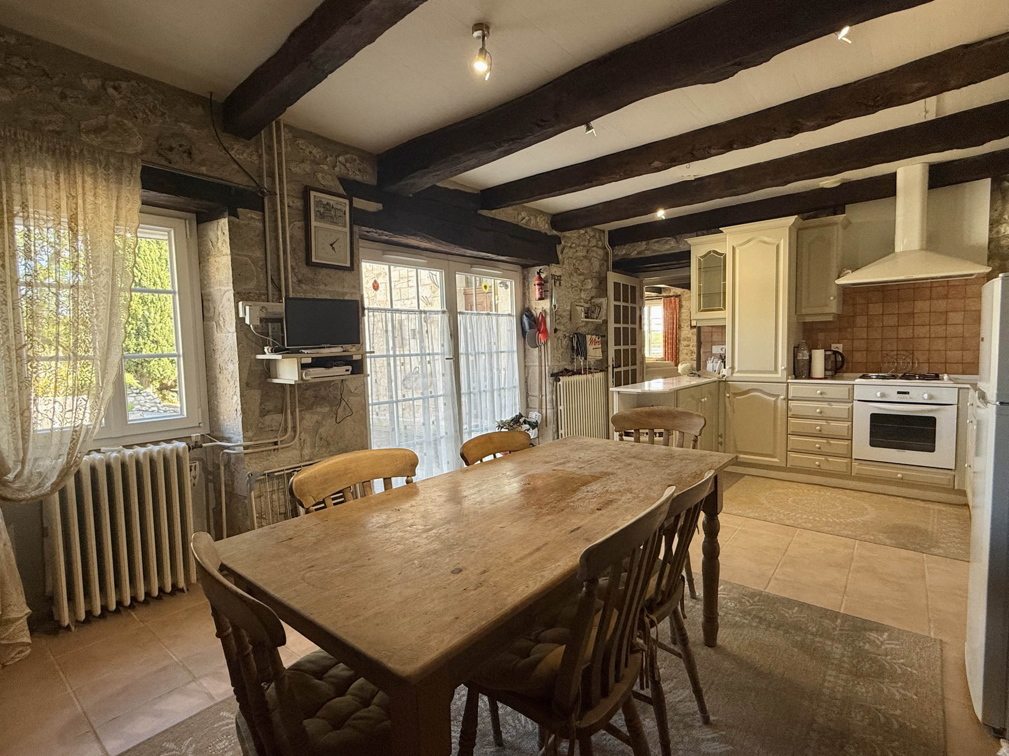 La maison principale bénéficie de fenêtres en double vitrage et d'un système de chauffage central (pompe à chaleur); elle possède des murs en pierres apparentes et des plafonds à poutres apparentes, ainsi qu'un four à pain d'origine dans la cuisine et une ancienne et rare fontaine profonde en pierre (utilisé pour laver le linge à l'époque !) Il y a une belle cheminée en pierre avec un poêle à bois efficace dans la salle de séjour. Au sous-sol, 3 pièces séparées en pierre (63m2) abritent la chaufferie, la buanderie, les rangements et une cave à vin verrouillable avec une bonne hauteur de chute et uniquement accessible de l'extérieur.