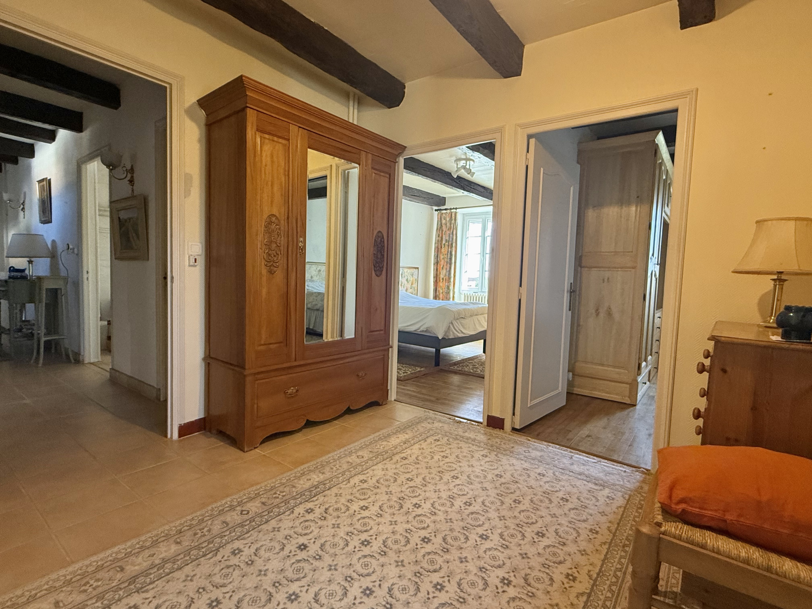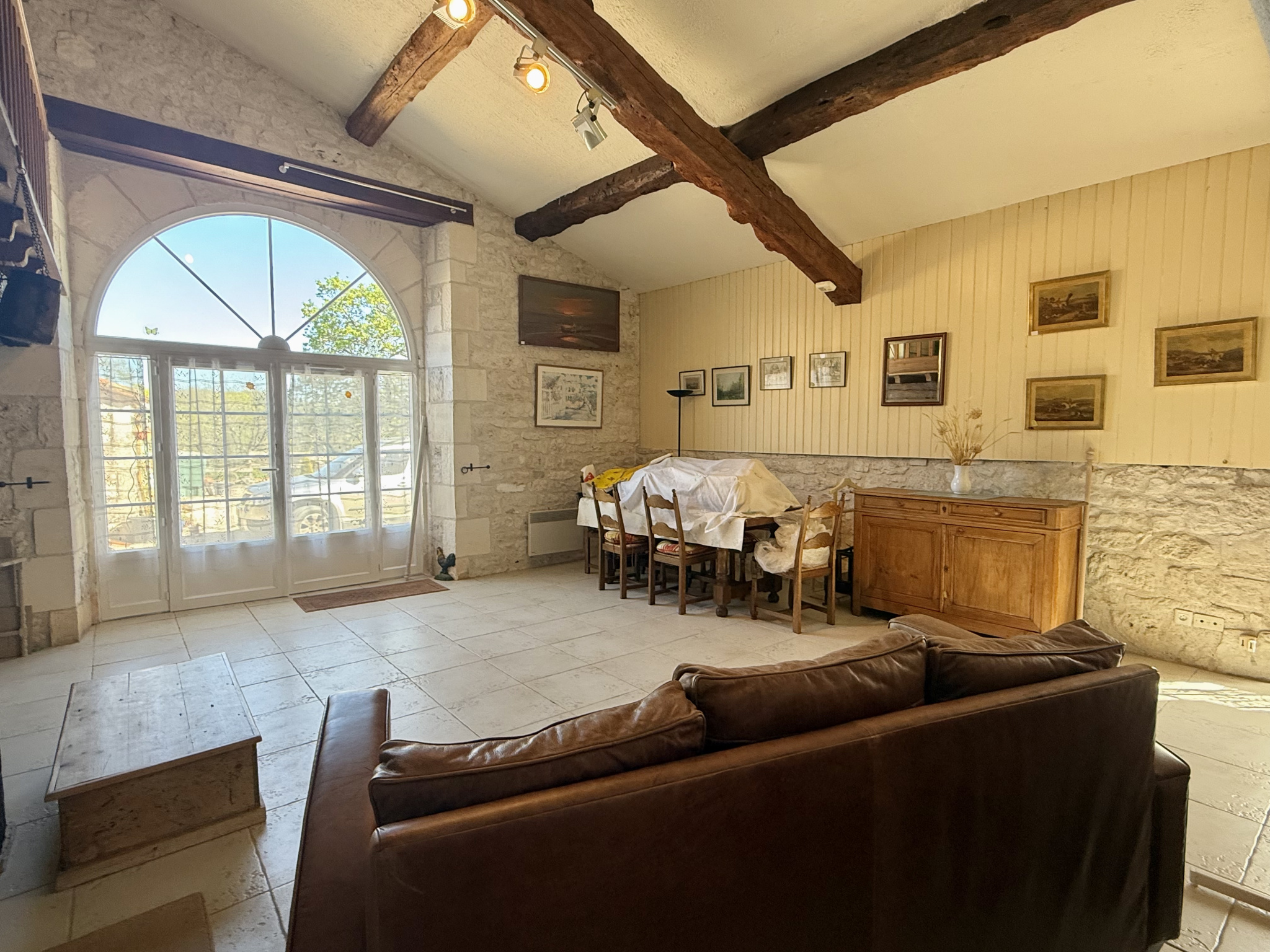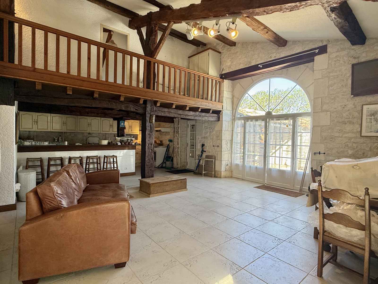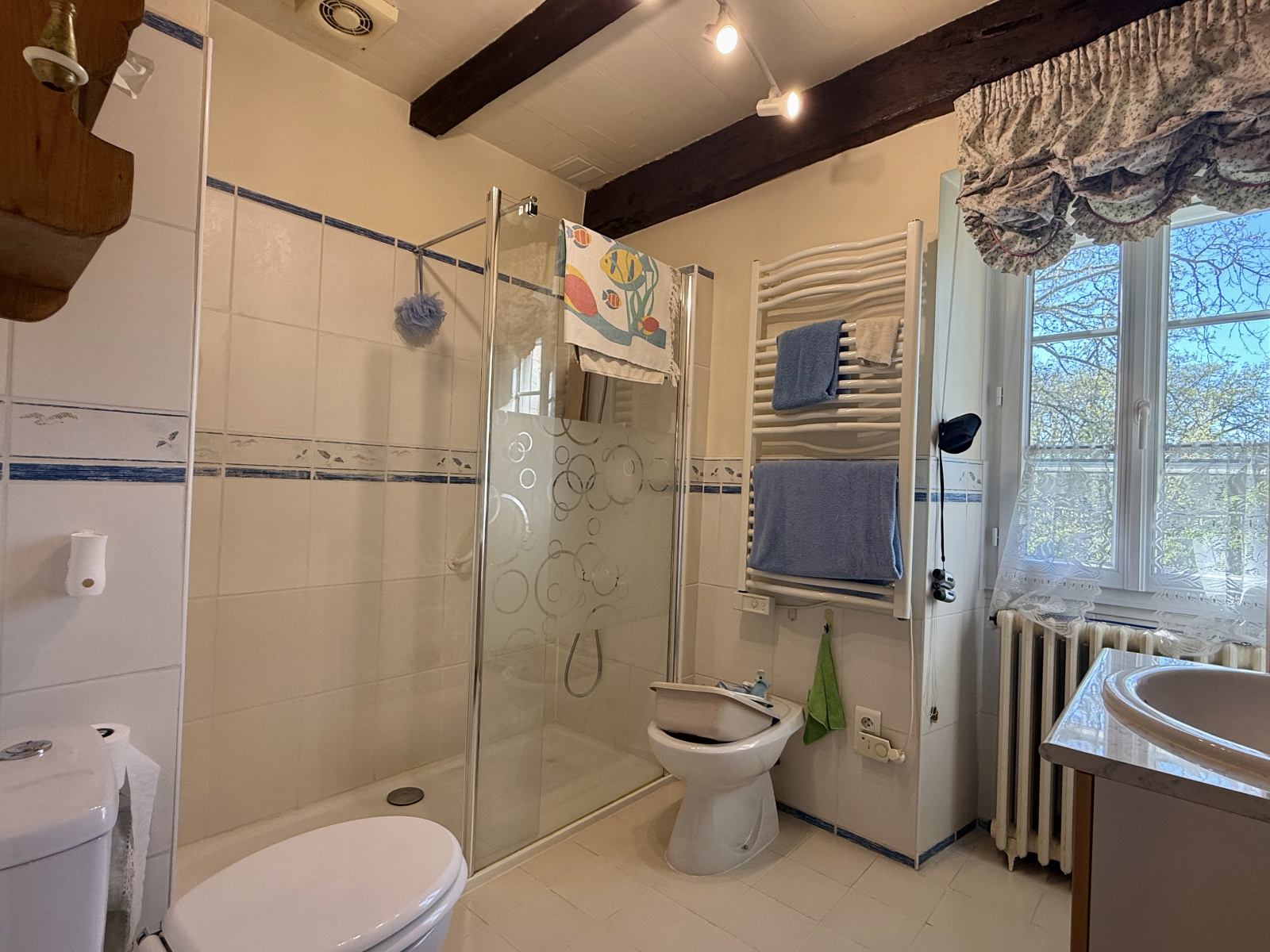 La maison principale bénéficie de fenêtres en double vitrage et d'un système de chauffage central (pompe à chaleur); elle possède des murs en pierres apparentes et des plafonds à poutres apparentes, ainsi qu'un four à pain d'origine dans la cuisine et une ancienne et rare fontaine profonde en pierre (utilisé pour laver le linge à l'époque !) Il y a une belle cheminée en pierre avec un poêle à bois efficace dans la salle de séjour. Au sous-sol, 3 pièces séparées en pierre (63m2) abritent la chaufferie, la buanderie, les rangements et une cave à vin verrouillable avec une bonne hauteur de chute et uniquement accessible de l'extérieur.