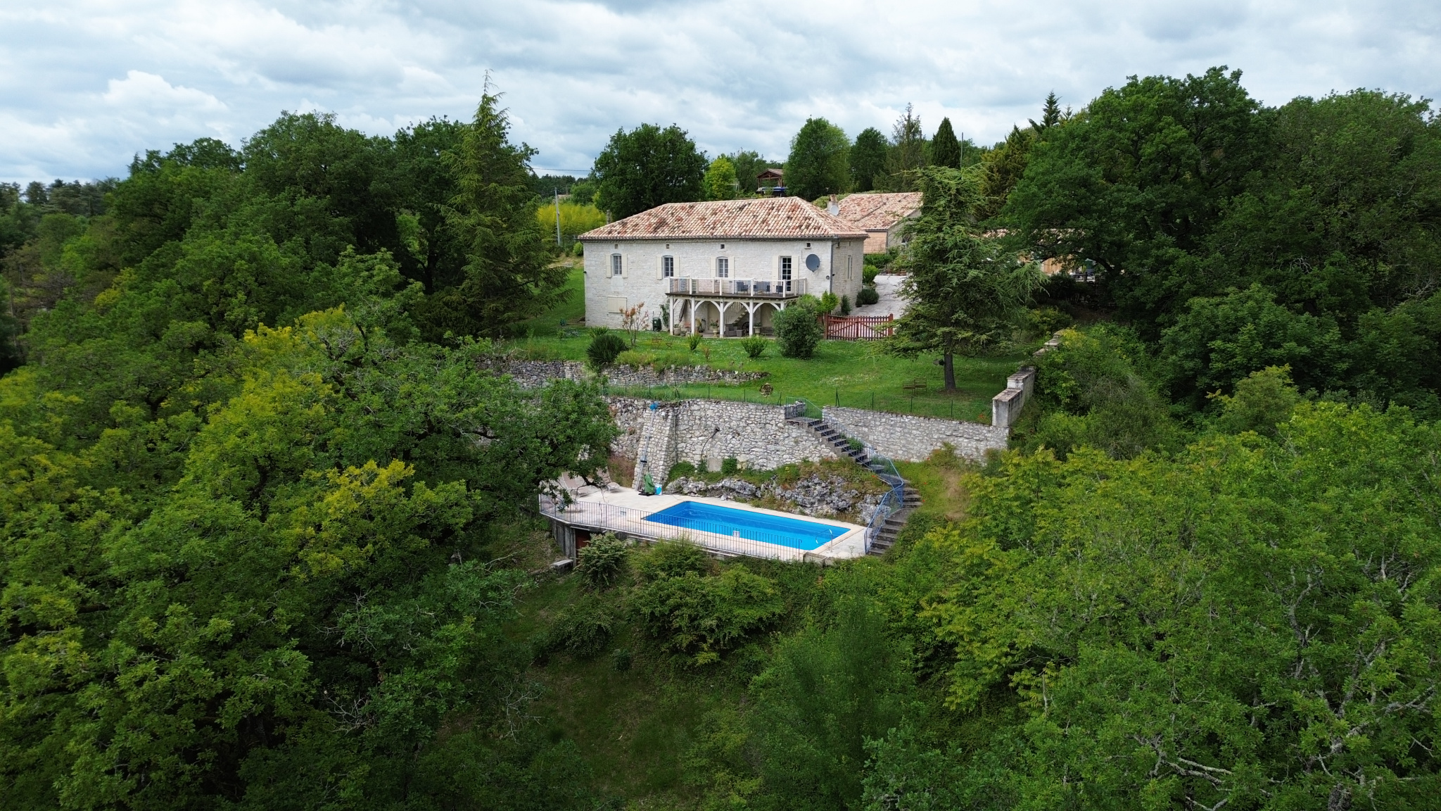 Une superbe propriété en pierre de 3 chambres avec l'espace de vie en plain-pied, une fabuleuse terrasse orientée au sud offrant de larges vues sur la campagne, une piscine, une maison d'amis de 2 chambres et 8686m2 de jardins et de bois situés dans un petit hameau près de Belveze entre Montaigu de Quercy et Lauzerte.
