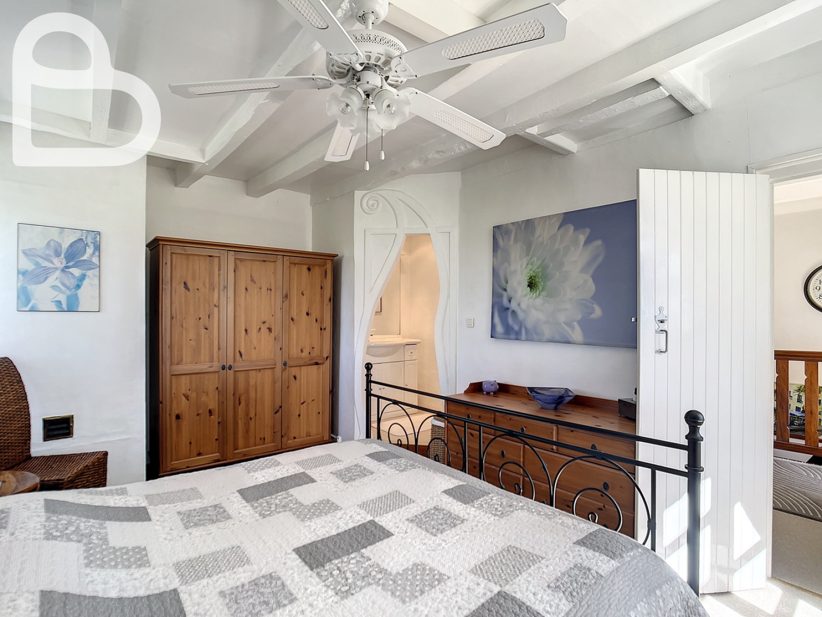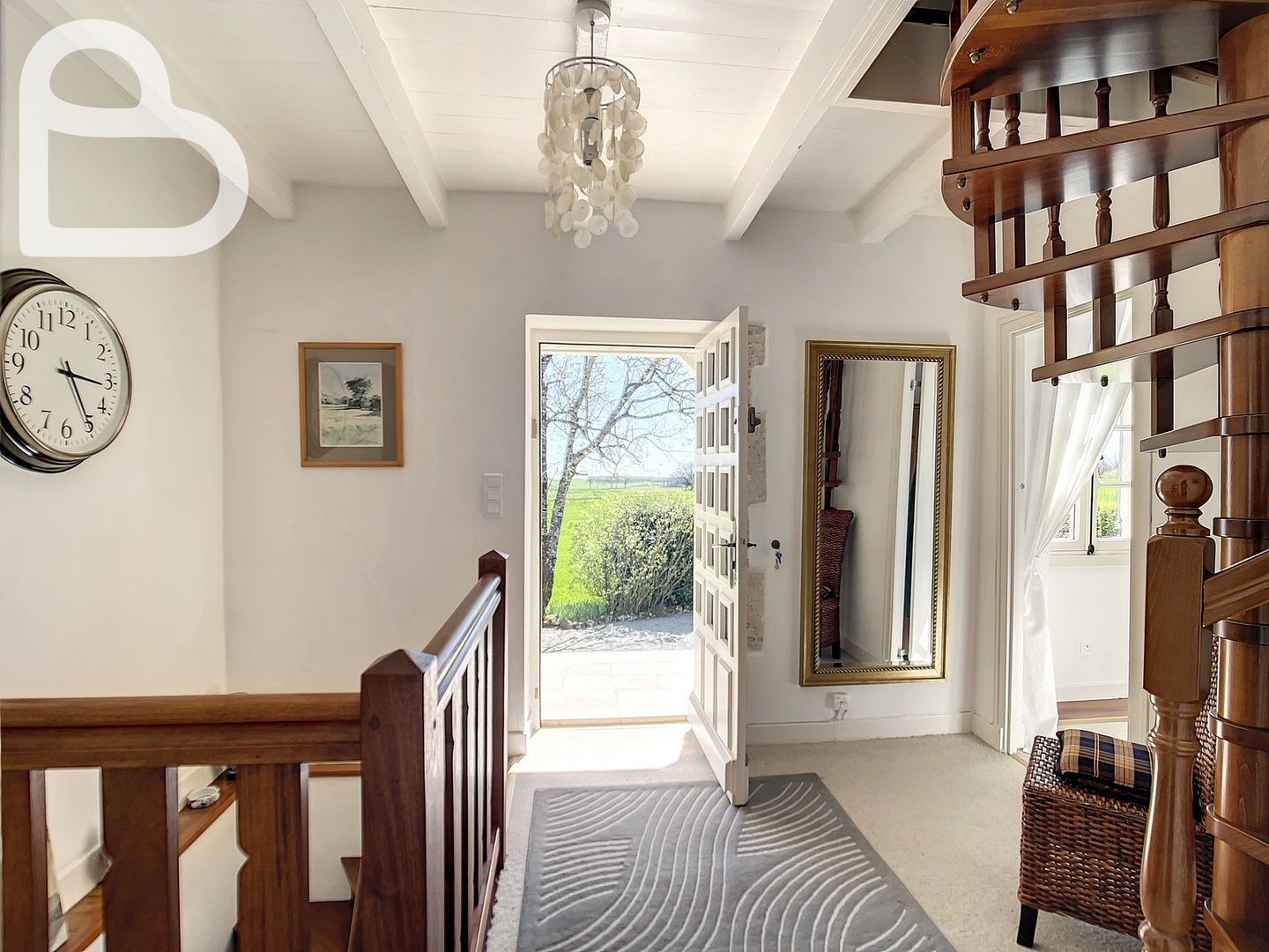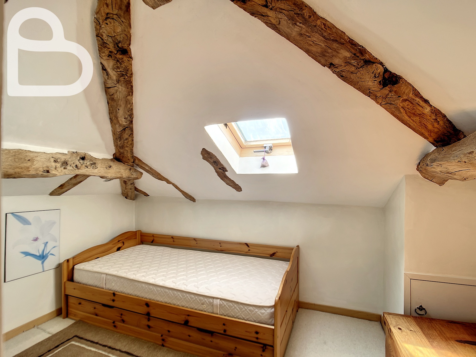 Au premier étage, une salle de bains avec WC et deux chambres à coucher, dont une avec lavabo et WC. Un bel escalier en spirale mène au deuxième étage où deux chambres supplémentaires et un rangement ont été aménagés sous les toits.Â