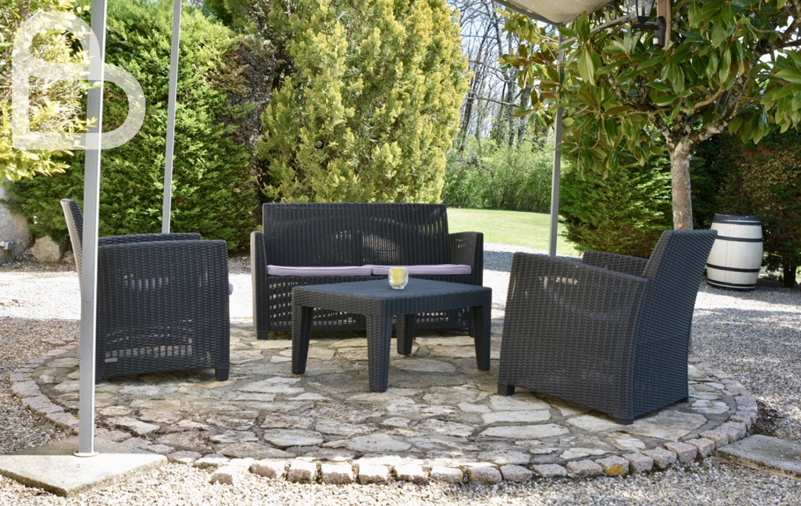 Le jardin, abondamment agrémenté de fleurs, d'arbustes et d'arbres, est une oasis de tranquillité. Il y a un portail d'entrée des deux côtés de la maison, qui sépare la partie avant avec son parking, du reste du jardin. Plusieurs terrasses permettent de profiter du soleil ou de l'ombre tout au long de la journée. Ou bien vous préférez vous relaxer autour de la piscine.