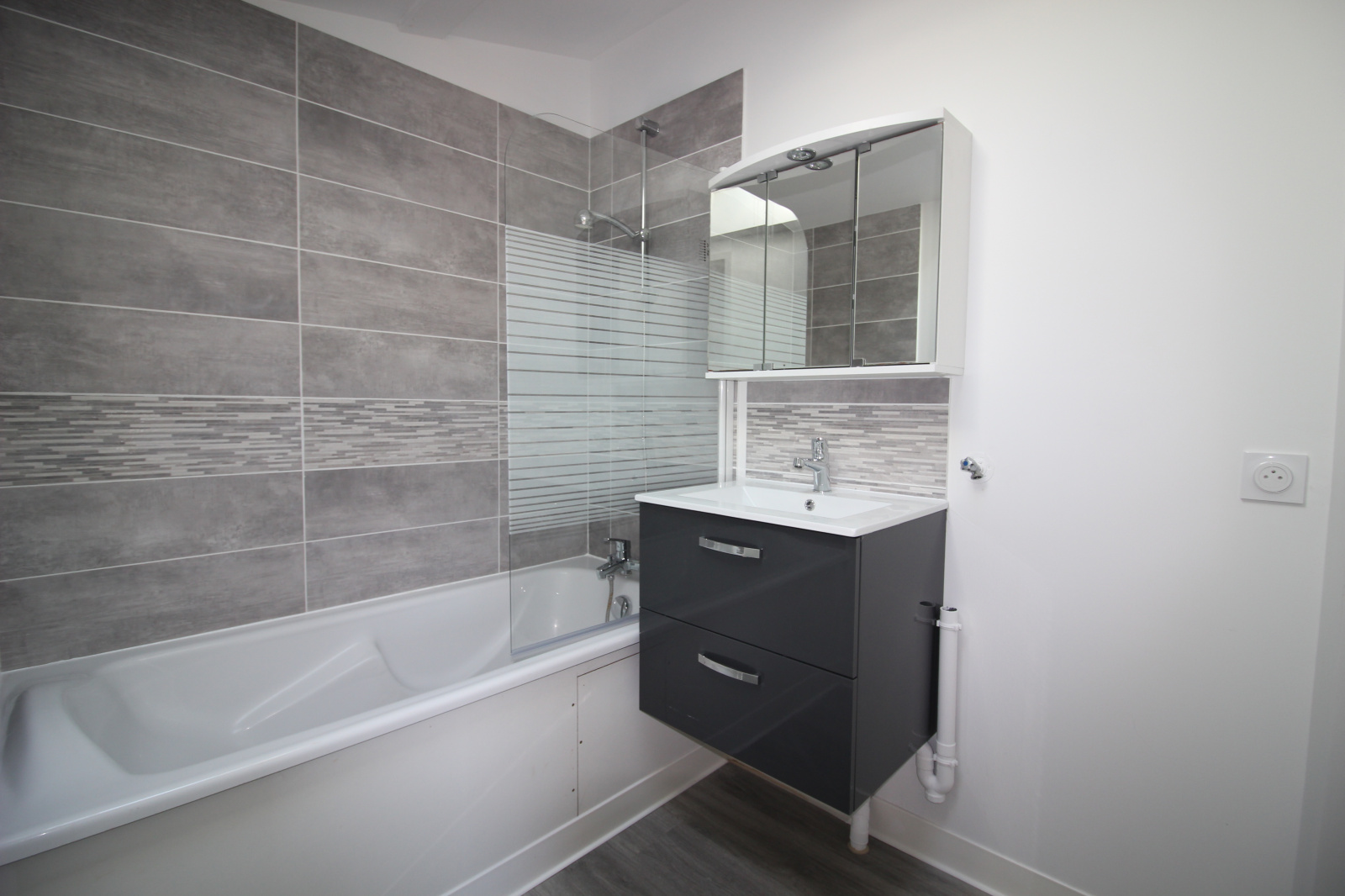 - RDC : Un appartement T2 de 47.39m² de surface loi Carrez avec terrasse , loué actuellement 560€ hors charges + 30 de provision. Chauffage par convecteurs électriques.