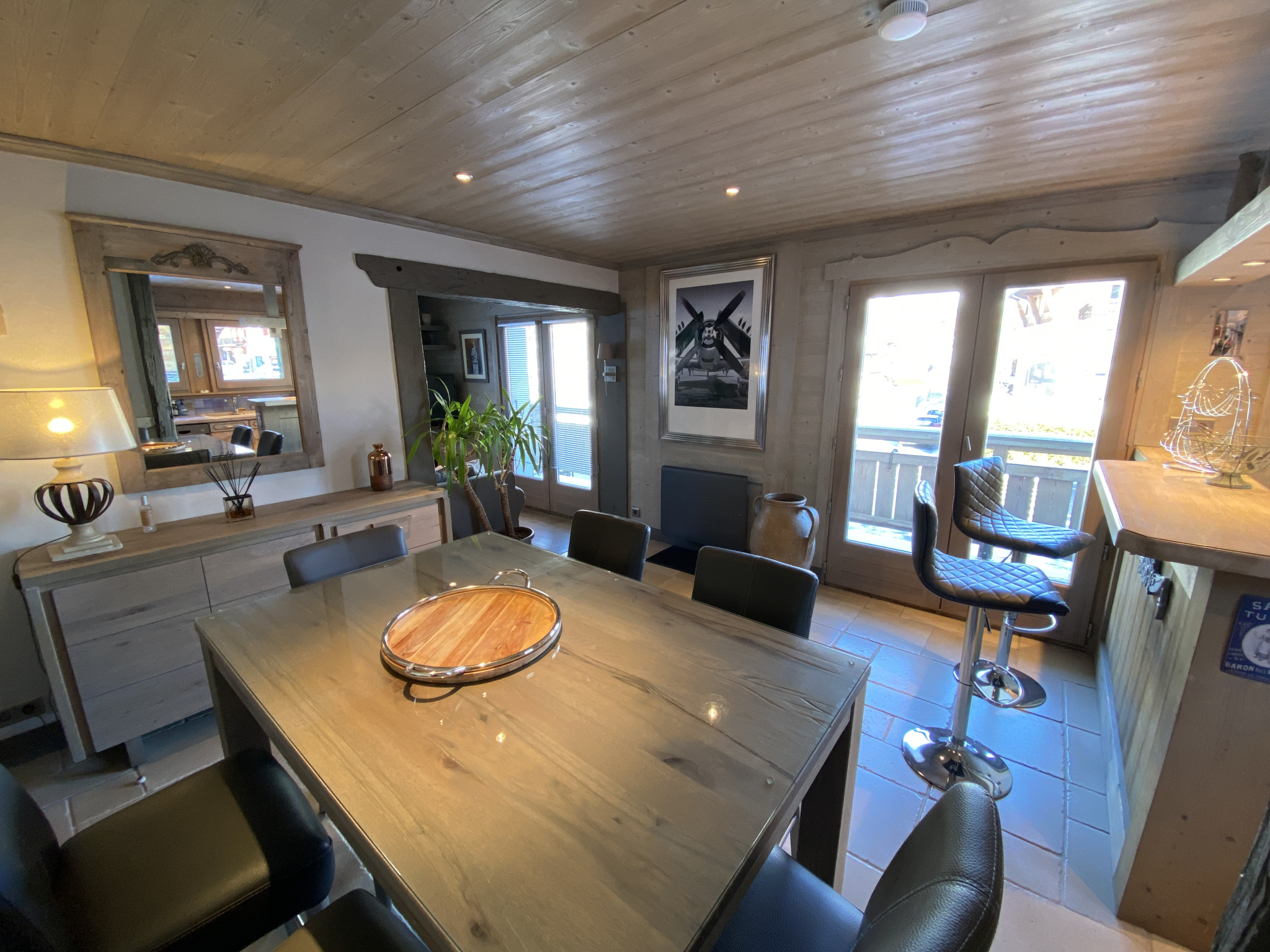 Ce bien d'environ 78 m2 de Surface au Sol (54.74 m2 en Surface Carrez) très chaleureux, joliment rénové et traversant dans un Chalet familial des années 50, de seulement 2 Appartements, est configuré comme suit : une entrée et couloir desservant une chambre enfants avec 2 lits superposés (avec accès à une grande terrasse au calme et ensoleillée), une belle chambre parentale, une salle de bains avec toilettes, un grand et lumineux séjour composé d'un coin repas avec cuisine américaine, un salon cosy. Un Balcon.