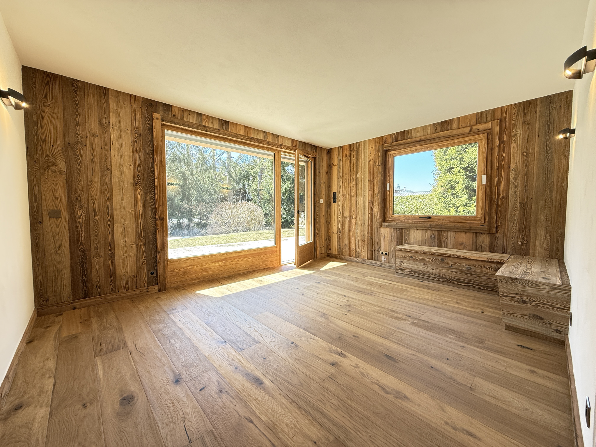 Très joliment et récemment rénové cette année, bénéficiant de nobles matériaux, il est composé de la façon suivante : une entrée desservant des toilettes séparées, une première chambre parentale, une cuisine, une deuxième chambre enfants, un séjour et salon donnant sur une très belle terrasse boisée et volumineue en L, orientée au Sud de face et à l'Ouest en retour.