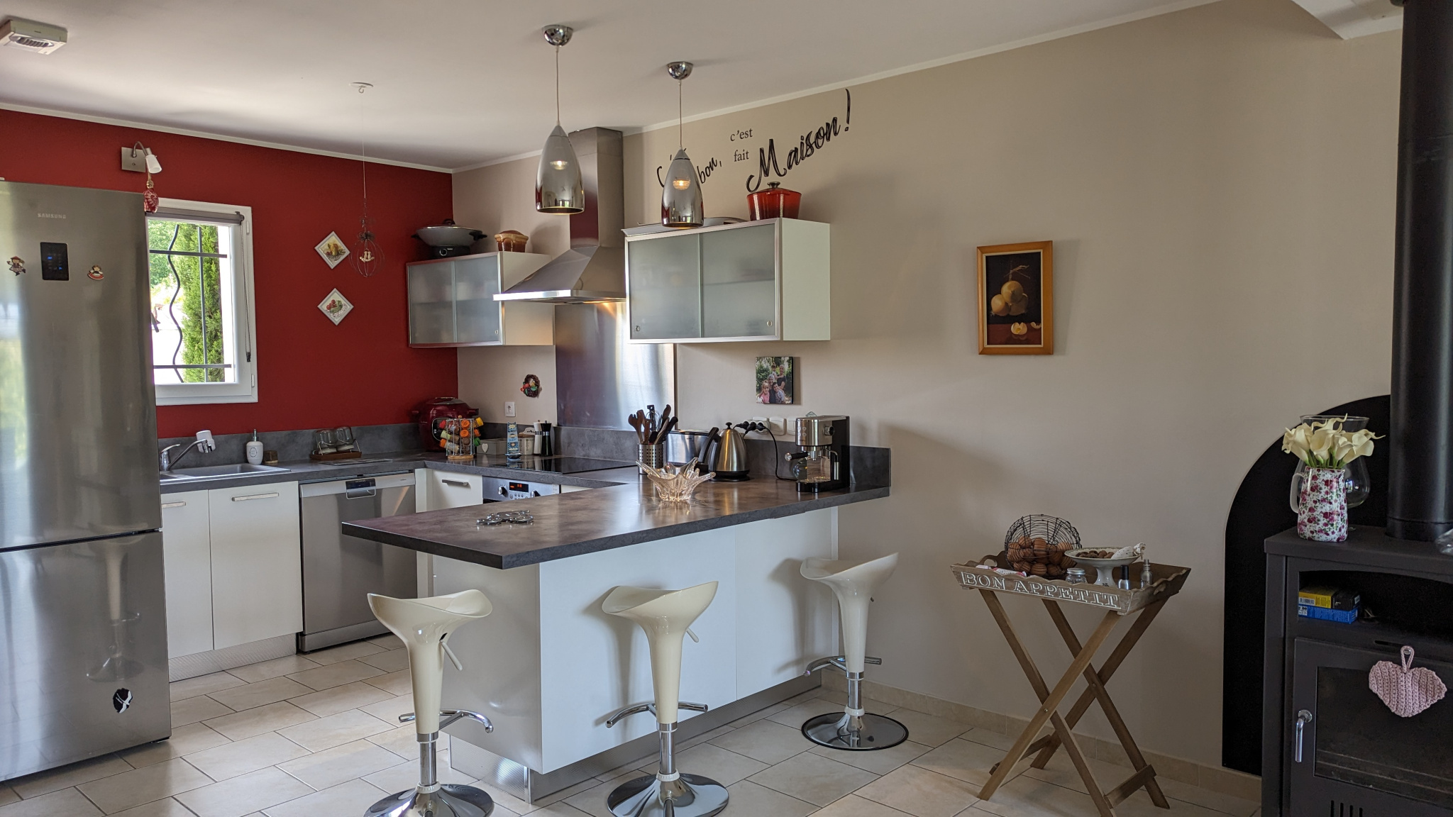 Meublée et équipée en partie (four , plaque de cuisson, hotte, évier double vasque).