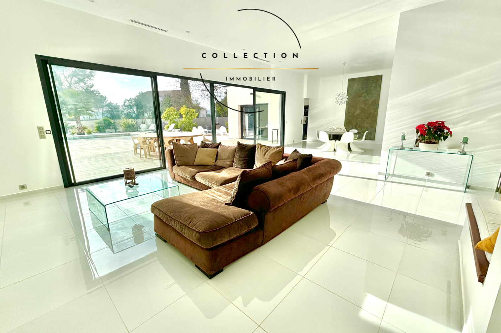 Collection Immobilier vous invite à découvrir en CO-EXCLUSIVITE, cette superbe villa contemporaine construite en 2021 offrant 210 m² habitables avec une vie entièrement de plain pied, nichée au coeur d'une pinède dans un village très recherché à proximité immédiate de MONTPELLIER.