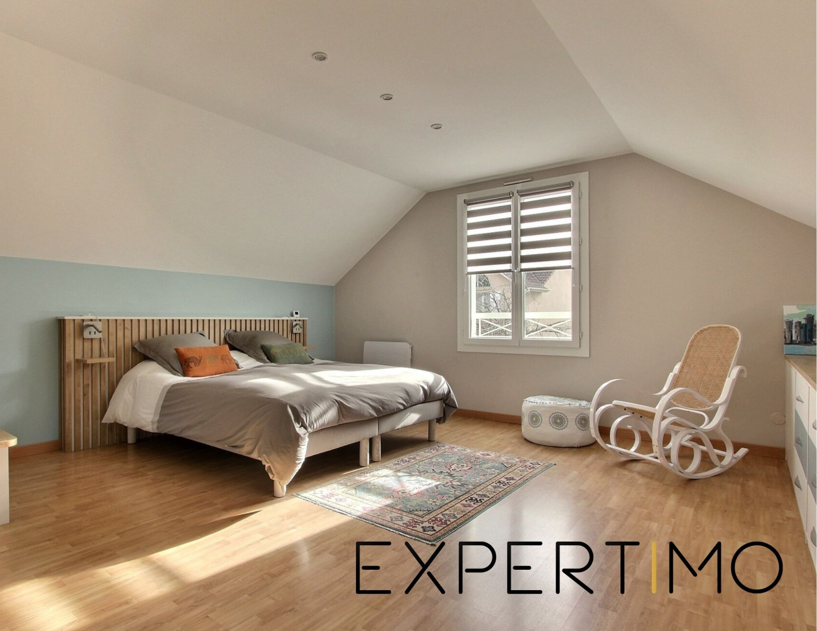 À l’étage, le palier dessert quatre belles chambres, toutes équipées de placards, dont une superbe suite parentale de plus de 22 m² avec double dressing et salle de bains privative avec fenêtre (baignoire, douche et WC).