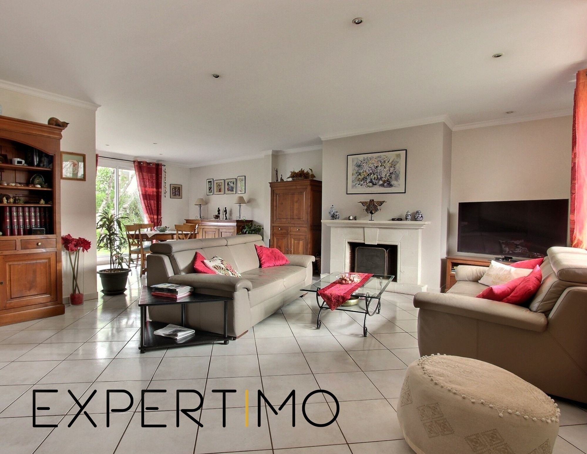 D’une surface de 162 m² habitable (environ 220 m² de surface totale), la maison se compose au rez-de-chaussée d’un vaste séjour traversant de plus de 42 m², doté d’une cheminée, bénéficiant d’une double exposition et ouvrant directement sur le jardin.