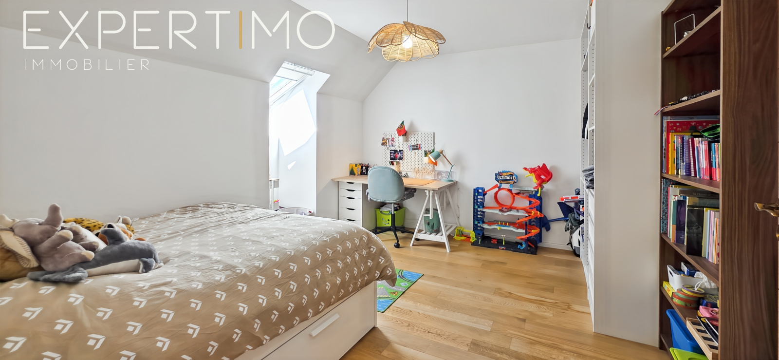 À l’étage, une belle pièce palière de 17 m² offre de nombreuses possibilités d’aménagement : bureau, salle de jeux ou cinquième chambre selon vos besoins. Trois chambres supplémentaires ainsi qu’une salle d’eau avec douche à l’italienne complètent cet espace.