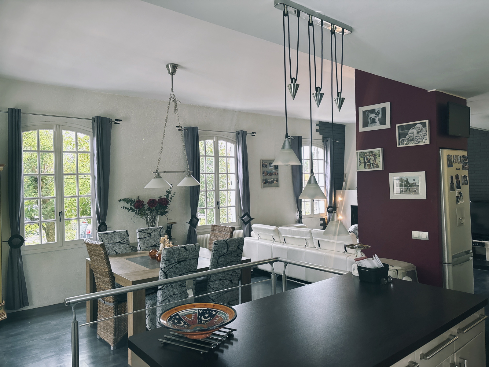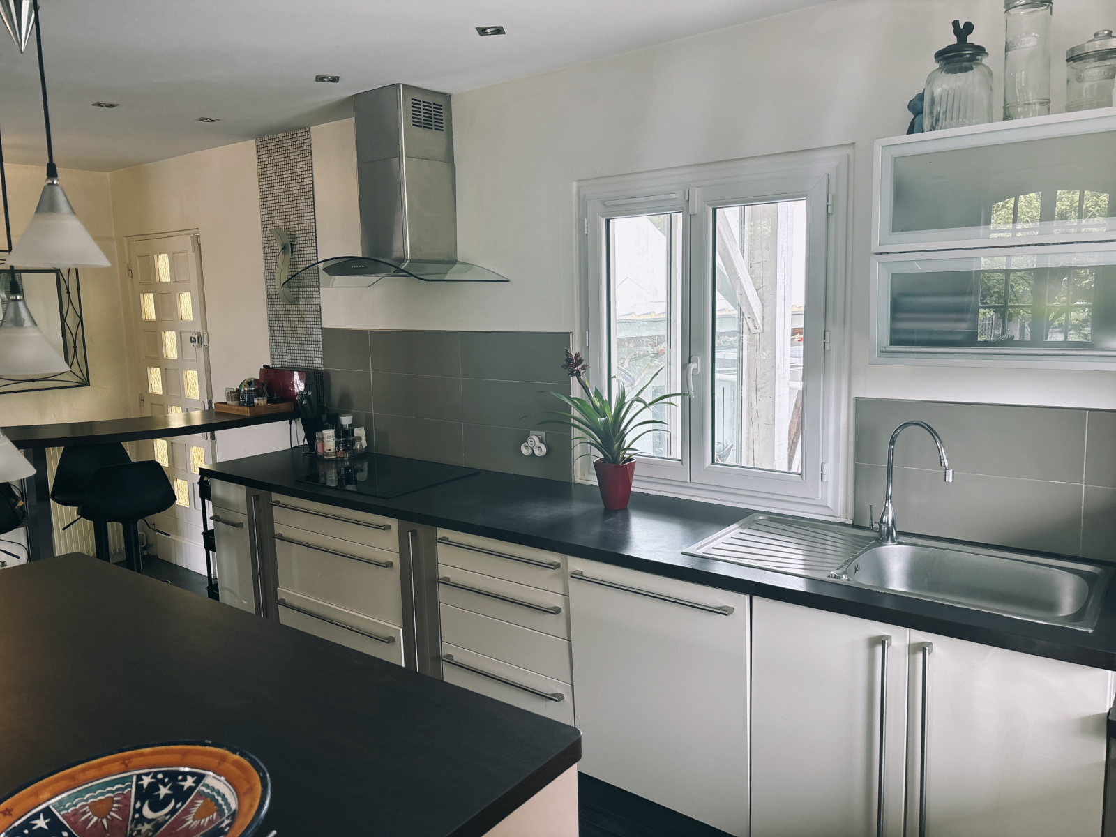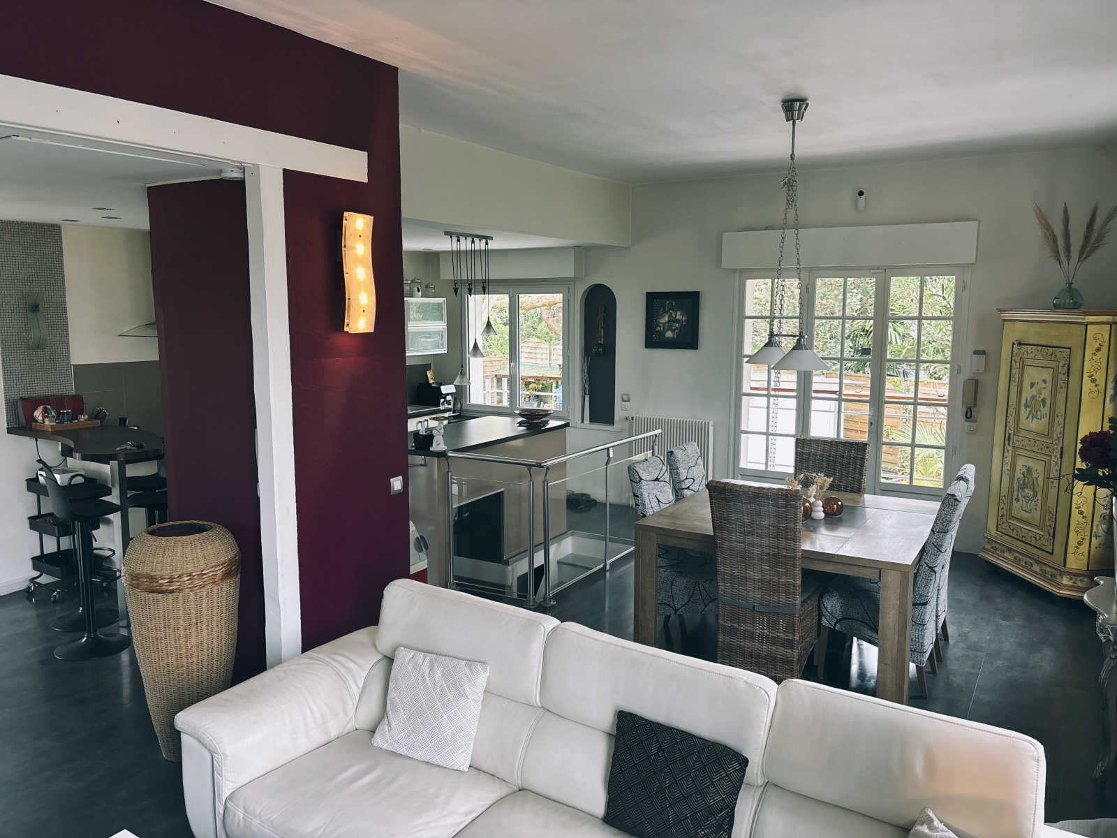 Dans un écrin de verdure au calme du centre ville de Mérignac et de toutes ses commodités à pied, indépendance pour chacun de votre famille garantie. La découverte du charme de cette maison atypique avec studio indépendant loué meublé gain annuel 5640€ sera un coup de coeur assuré. Parcelle d'env. 445m2 accueillant dépendance d'env 16m2 et belle végétation. La maison se compose d'une très belle pièce de vie d'env. 53m2 avec hauteur sous plafond d'env 3m très lumineuse avec cheminée EST/SUD/OUEST, cellier, dressing, 1 chambre avec mezzanine et salle d'eau wc. 2 chambres coin bureau à l'entre sol, salle de bain avec douche et baignoire, wc, buanderie. De vrais espaces appréciable en famille... HONORAIRES INCLUS CHARGE ACQUÉREUR : 4,5% TTC (PRIX 570 000€ HORS HONORAIRES)
