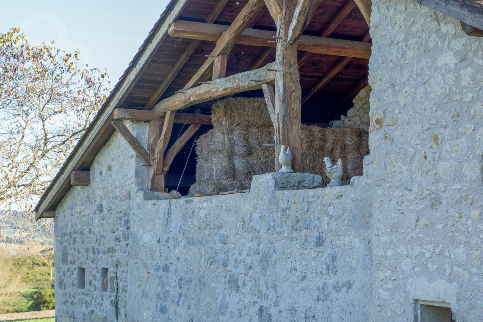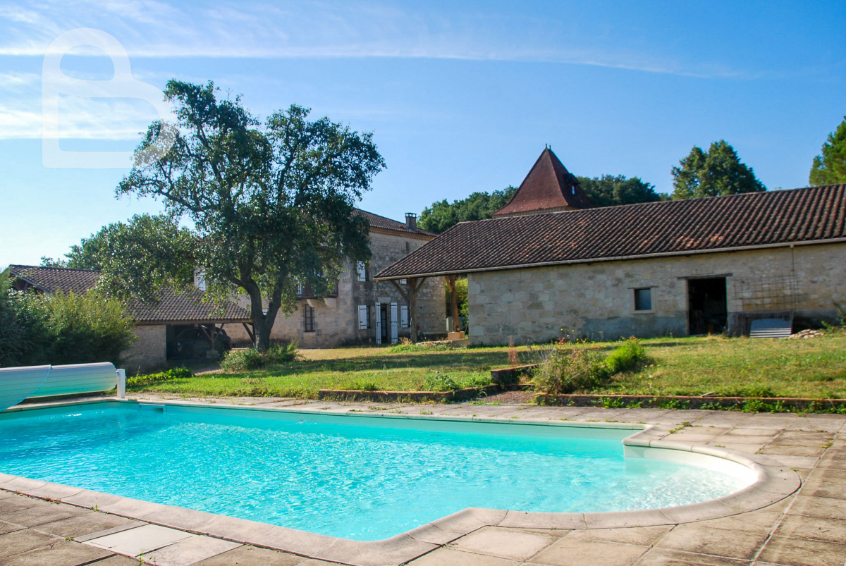 Dans le département du Lot-et-Garonne, nous trouvons, entouré de champs et d'arbres fruitiers, ce domaine extrêmement calme de 5,7 ha. La propriété, dont une partie date du XVIe siècle, se compose d'une grande maison principale, d'un pigeonnier indépendant dans lequel se trouve un gîte, de deux granges et d'une piscine. Les bâtiments ont été entièrement restaurés il y a une vingtaine d'années, tout en conservant de nombreux éléments authentiques.