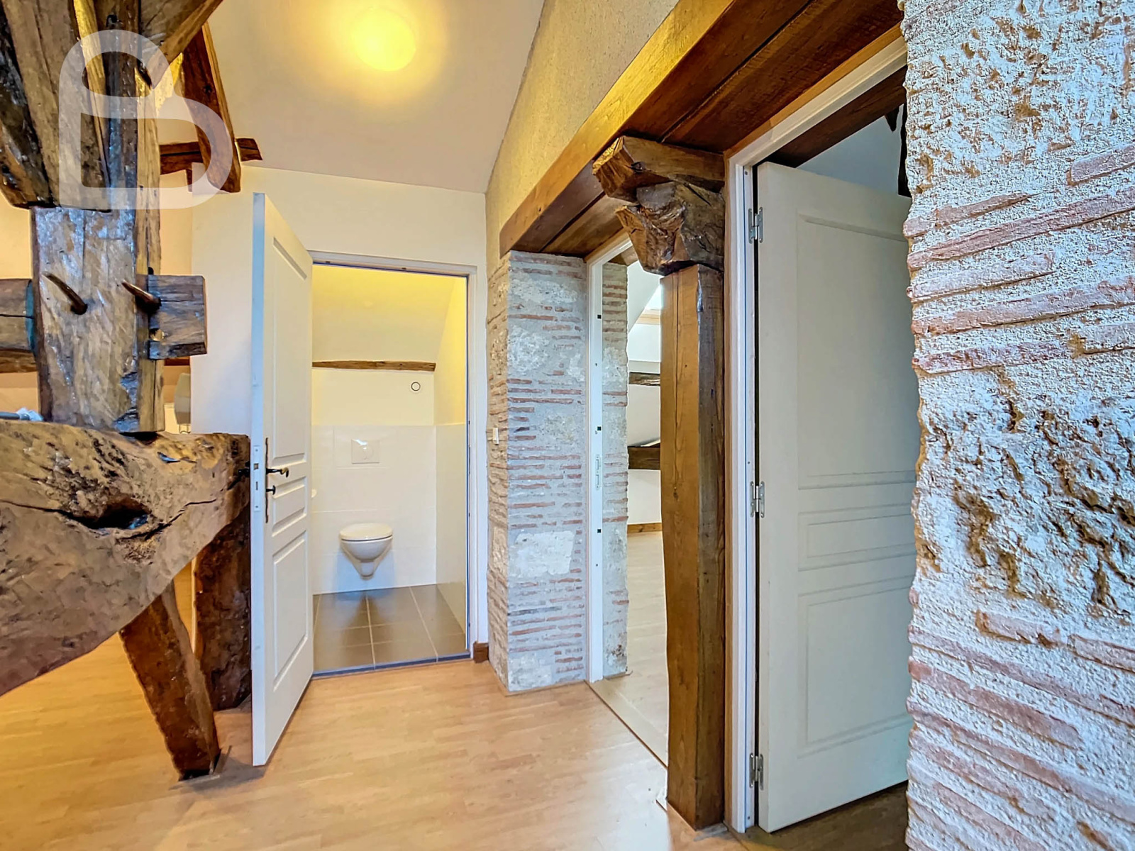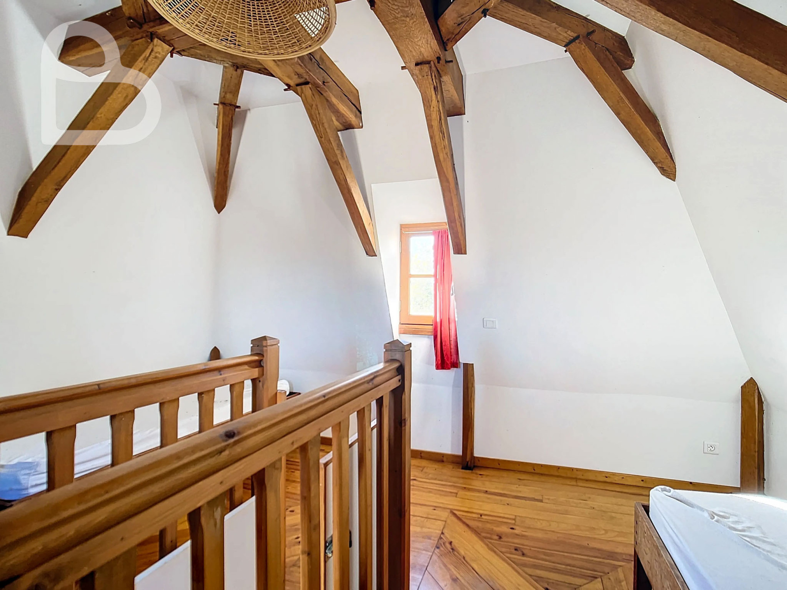On trouve au deuxième étage, sous le toit, deux autres chambres (25 m2 et 23 m2), un débarras, des toilettes séparées et une salle de bains.
