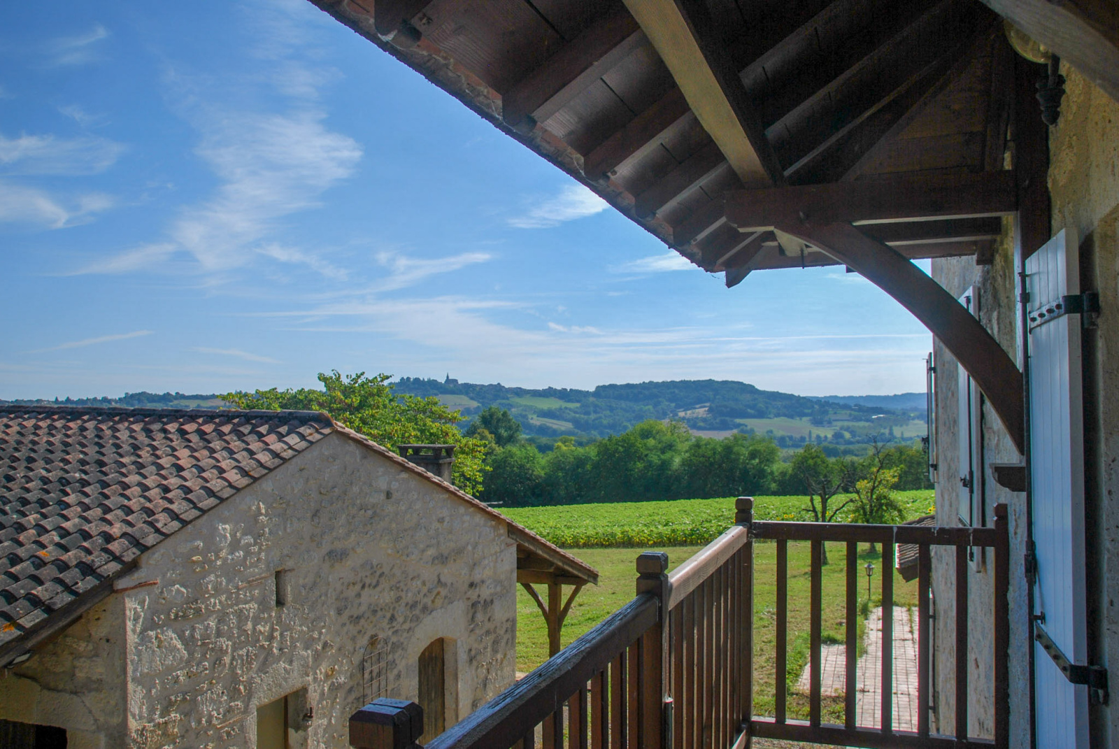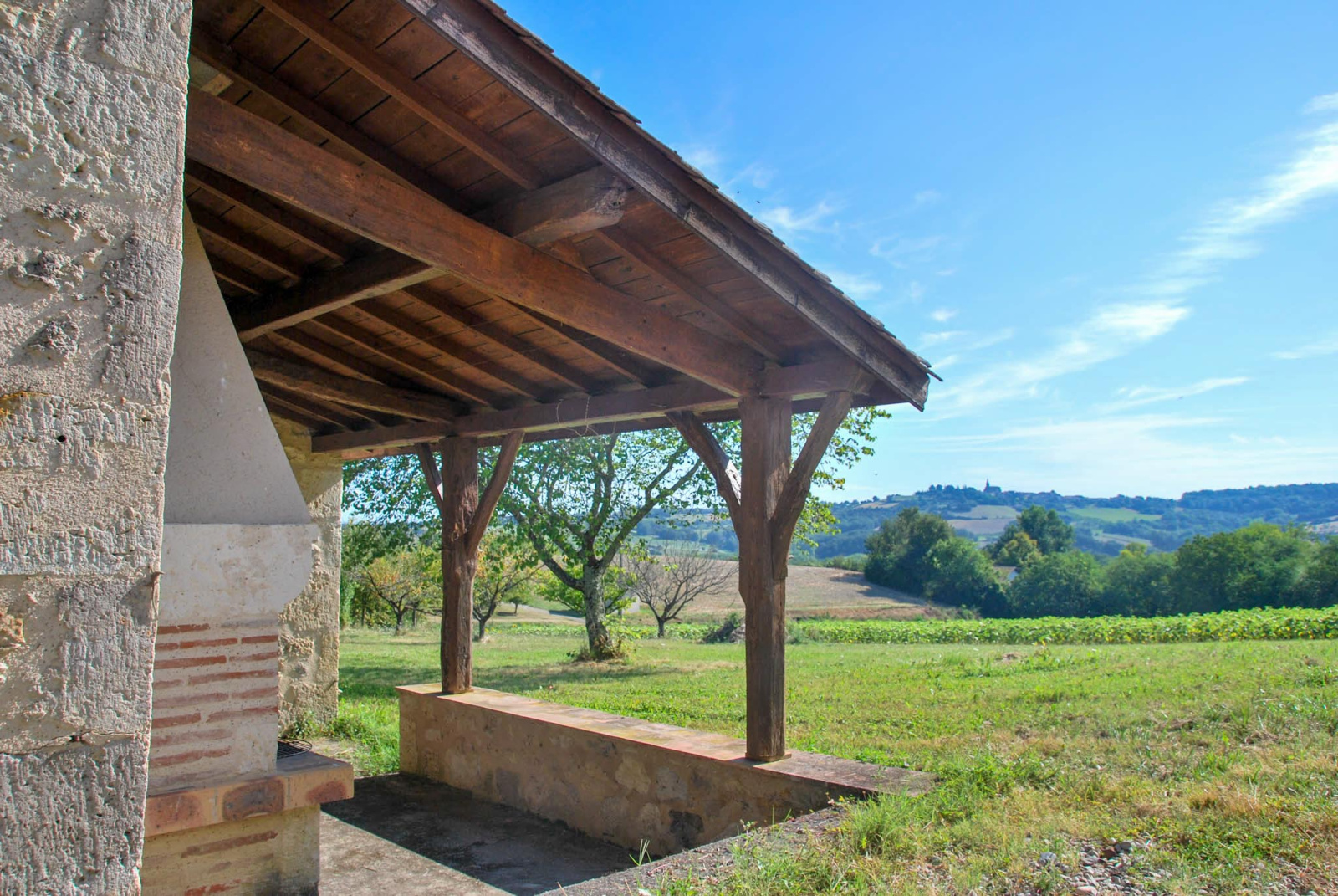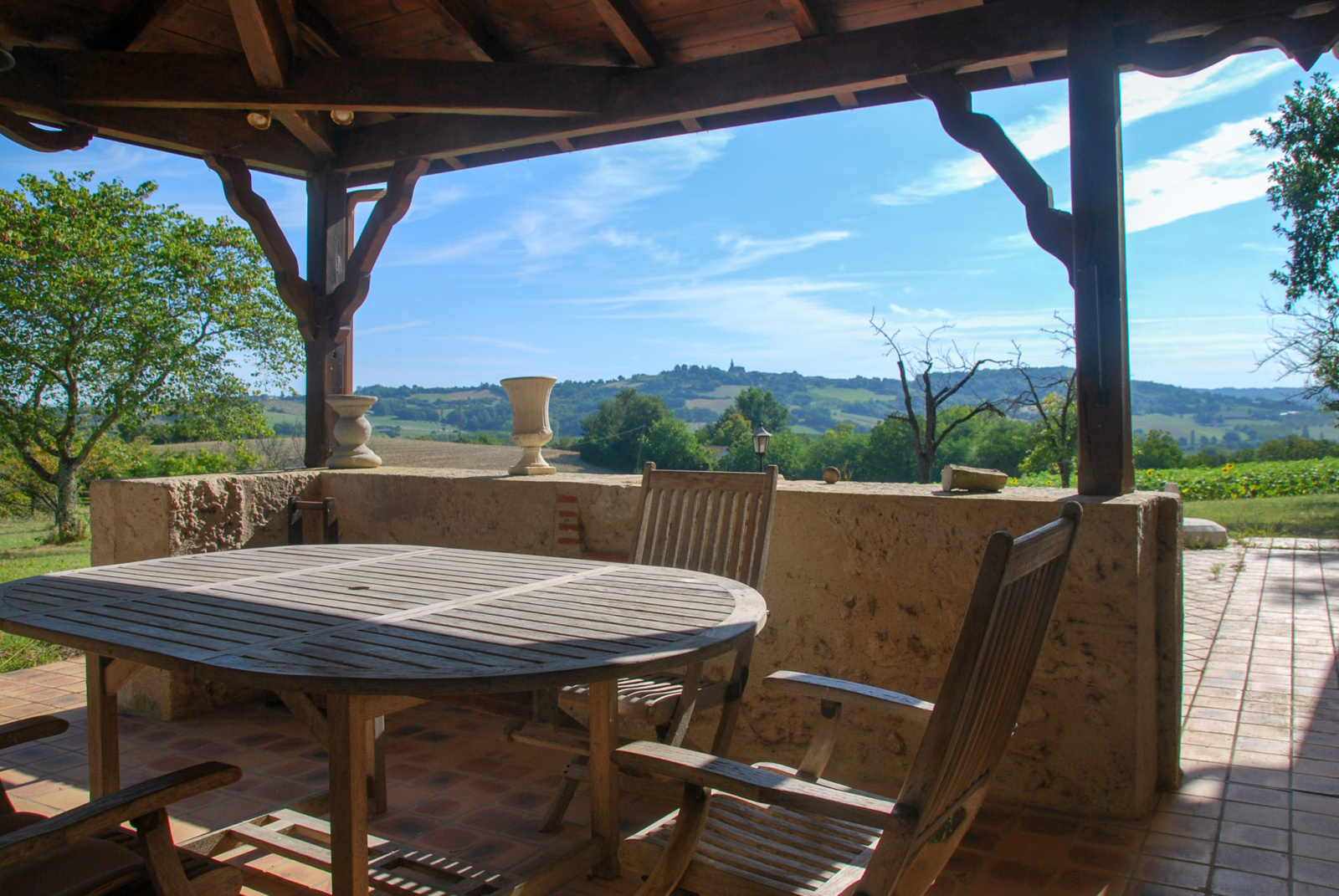 Les terrasses offrent de belles vues sur Montpezat d'Agenais et les collines verdoyantes environnantes.