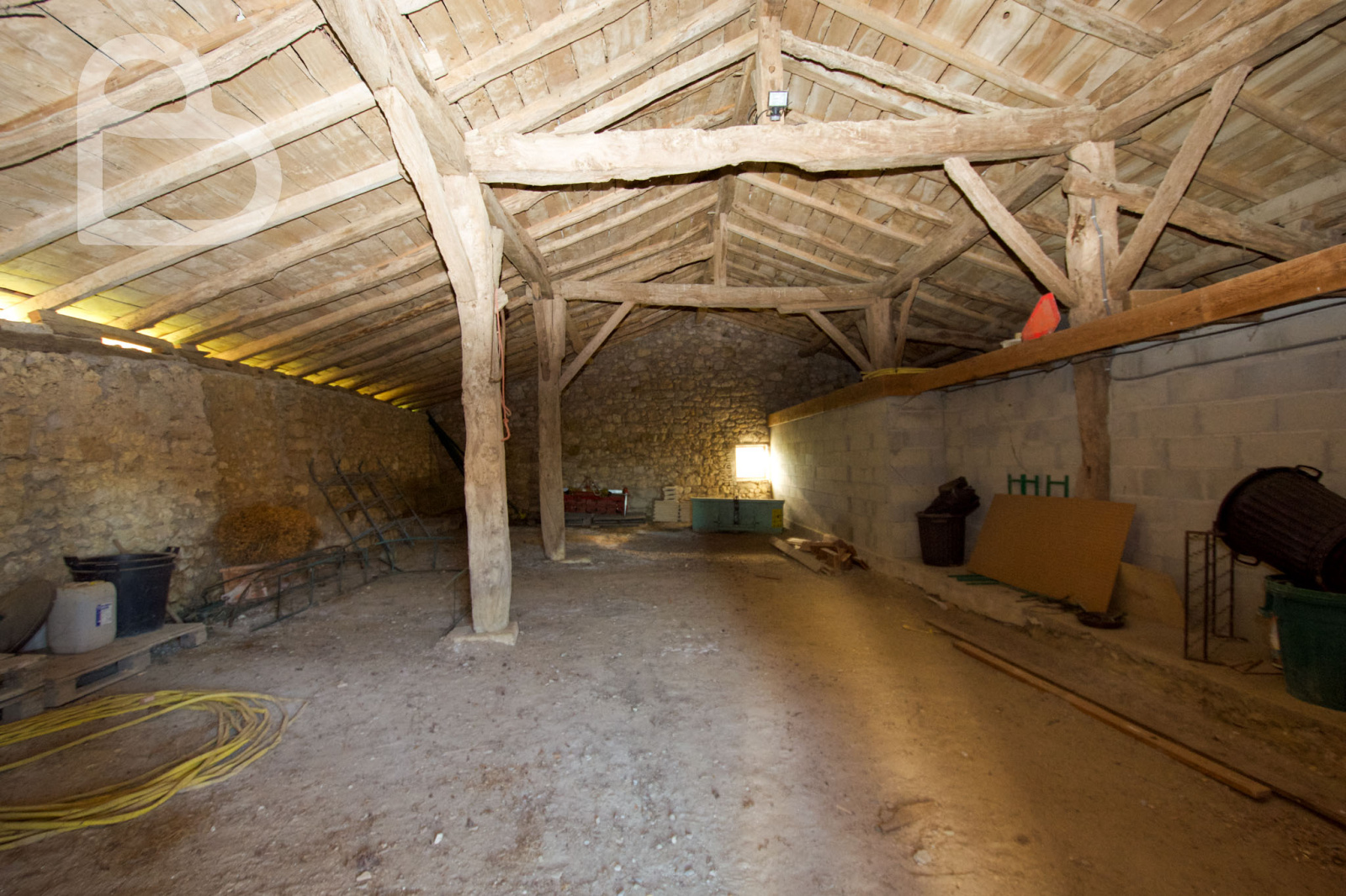 La plus grande grange a une surface au sol de 152 m² et un grenier d'environ 48 m². Elle abrite également deux garages, ainsi qu'un sauna et le local technique de la piscine. Elle dispose également d'un auvent à l'avant.
